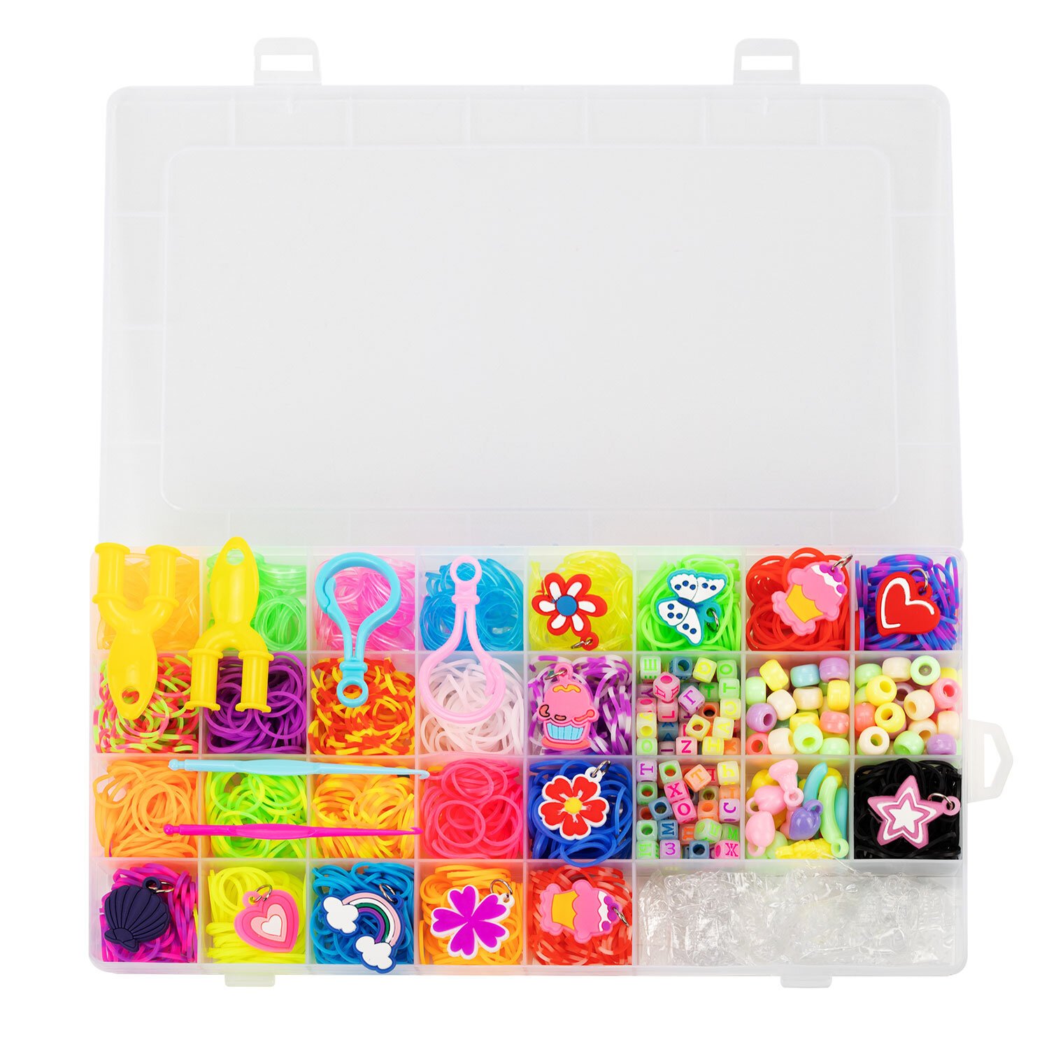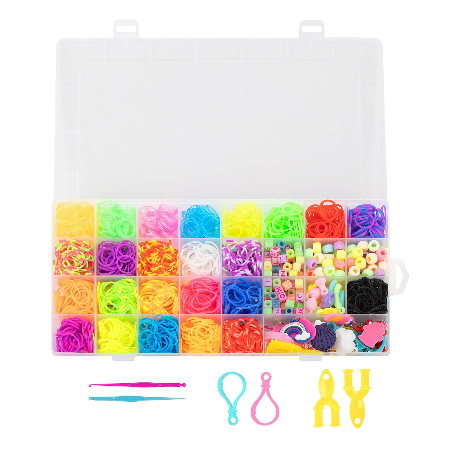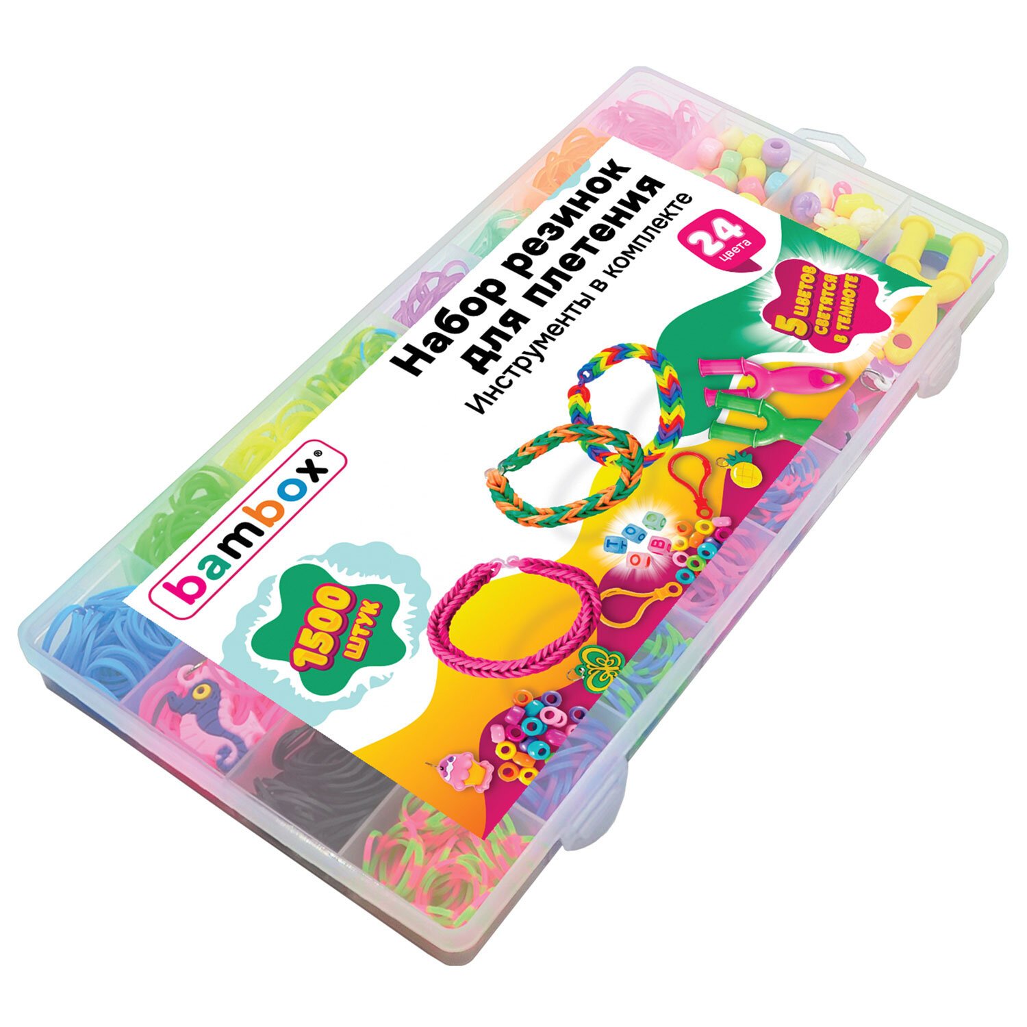 Набор резинок для плетения украшений 1500 шт, 24 цвета, бокс, бусины, BamBox, 665977