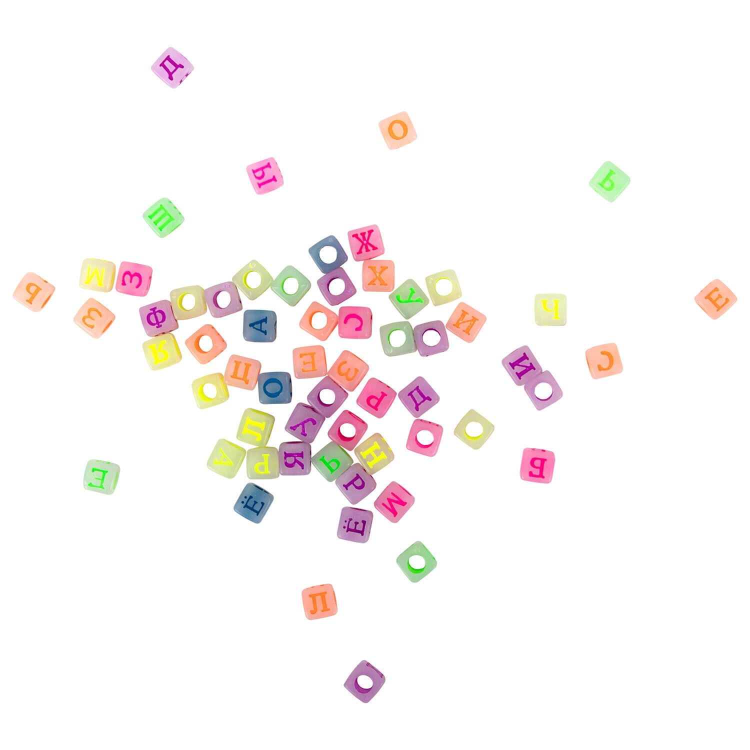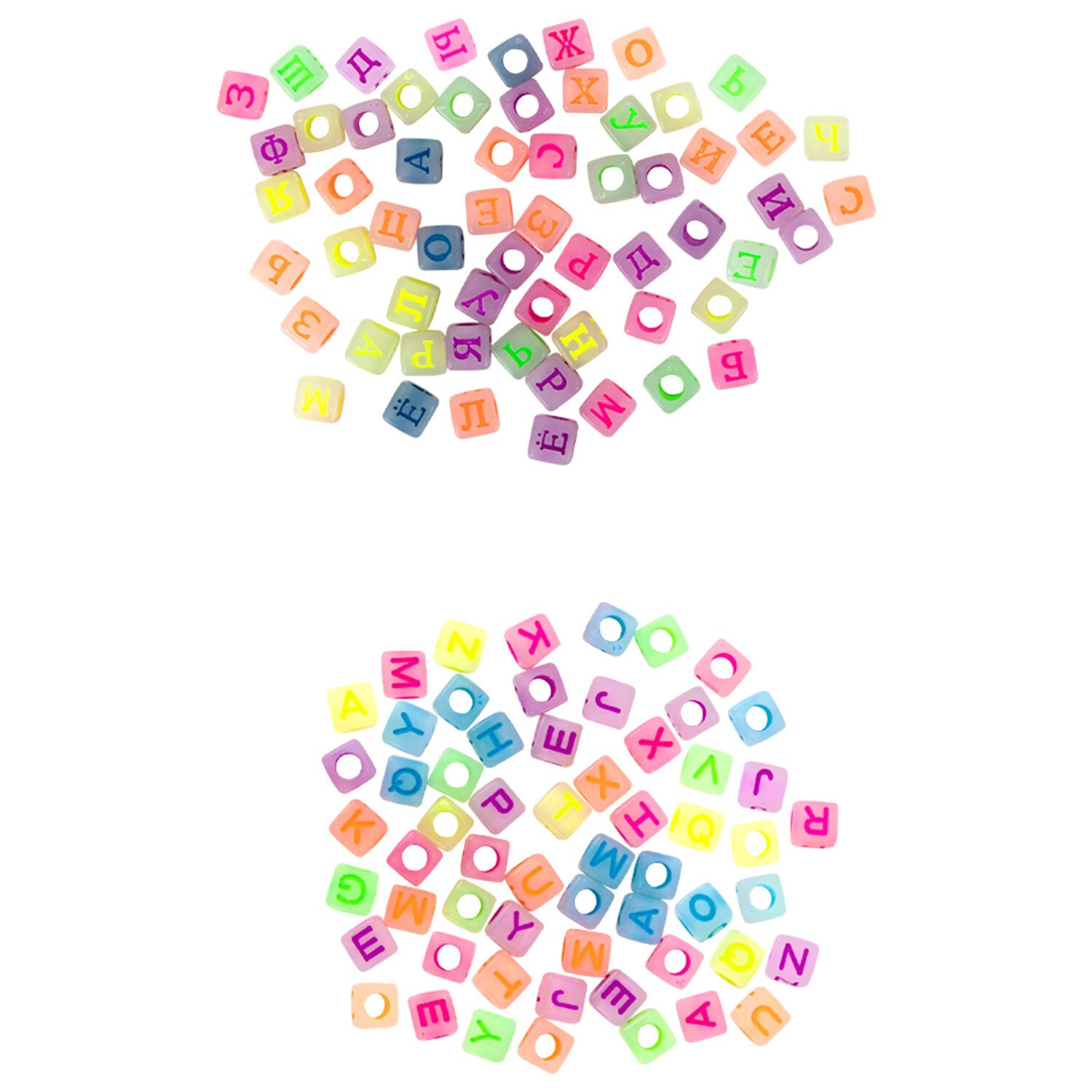 - светящиеся в темноте бусины с русским и английским алфавитом общим количеством 120 штук;