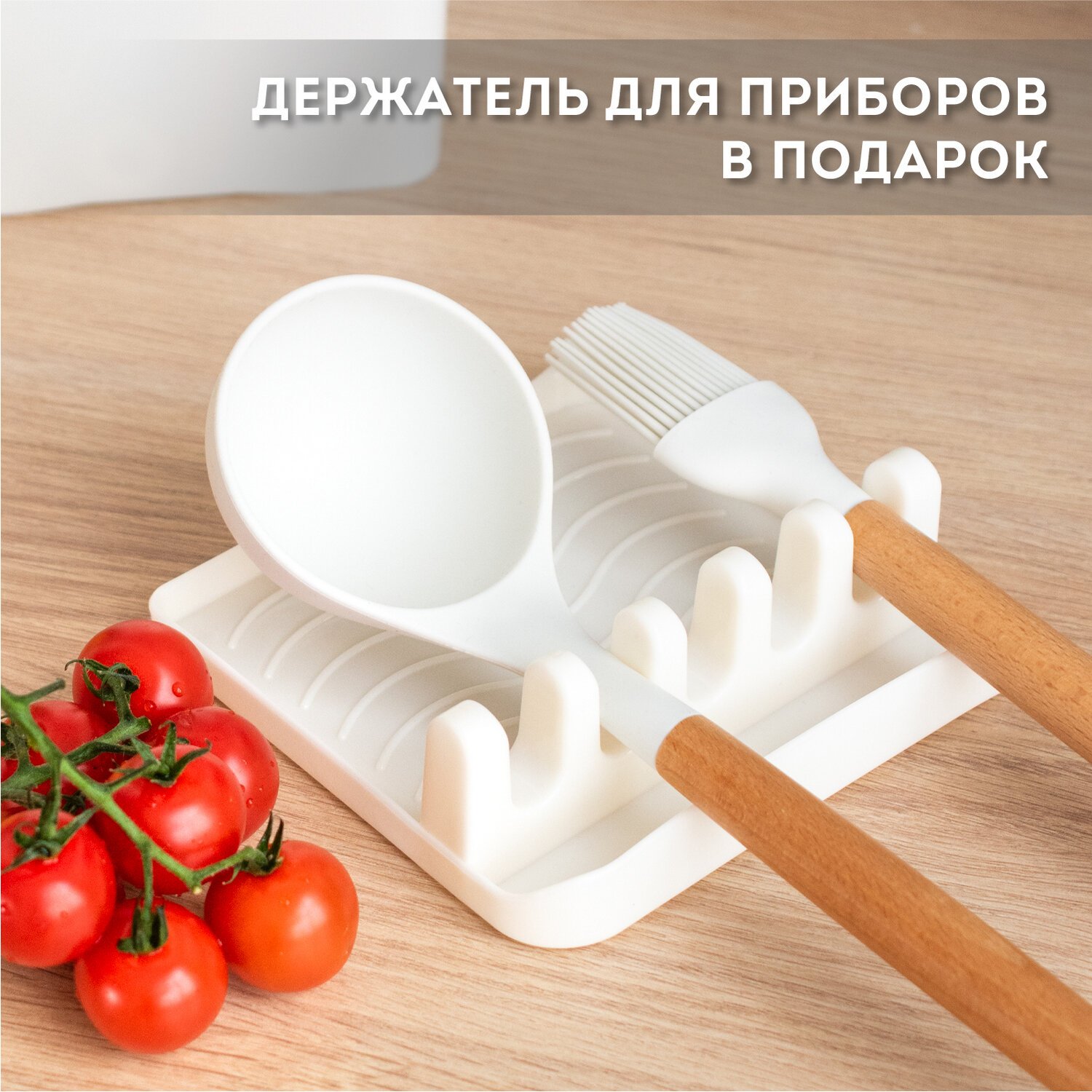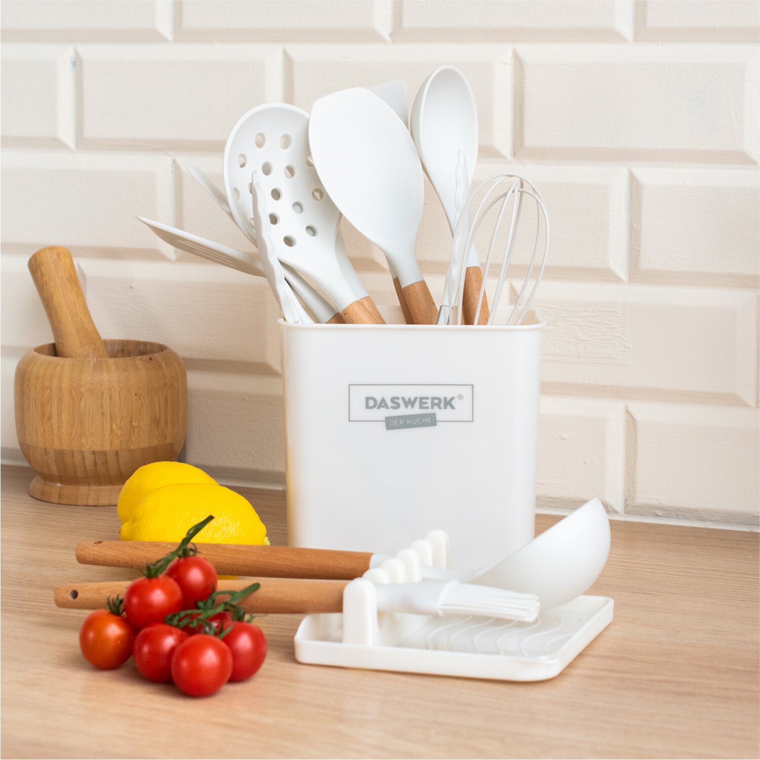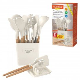 Стильный и функциональный набор силиконовых кухонных принадлежностей DASWERK с подставкой и держателем. Станет незаменимым помощником для всех, кто умеет и любит готовить.