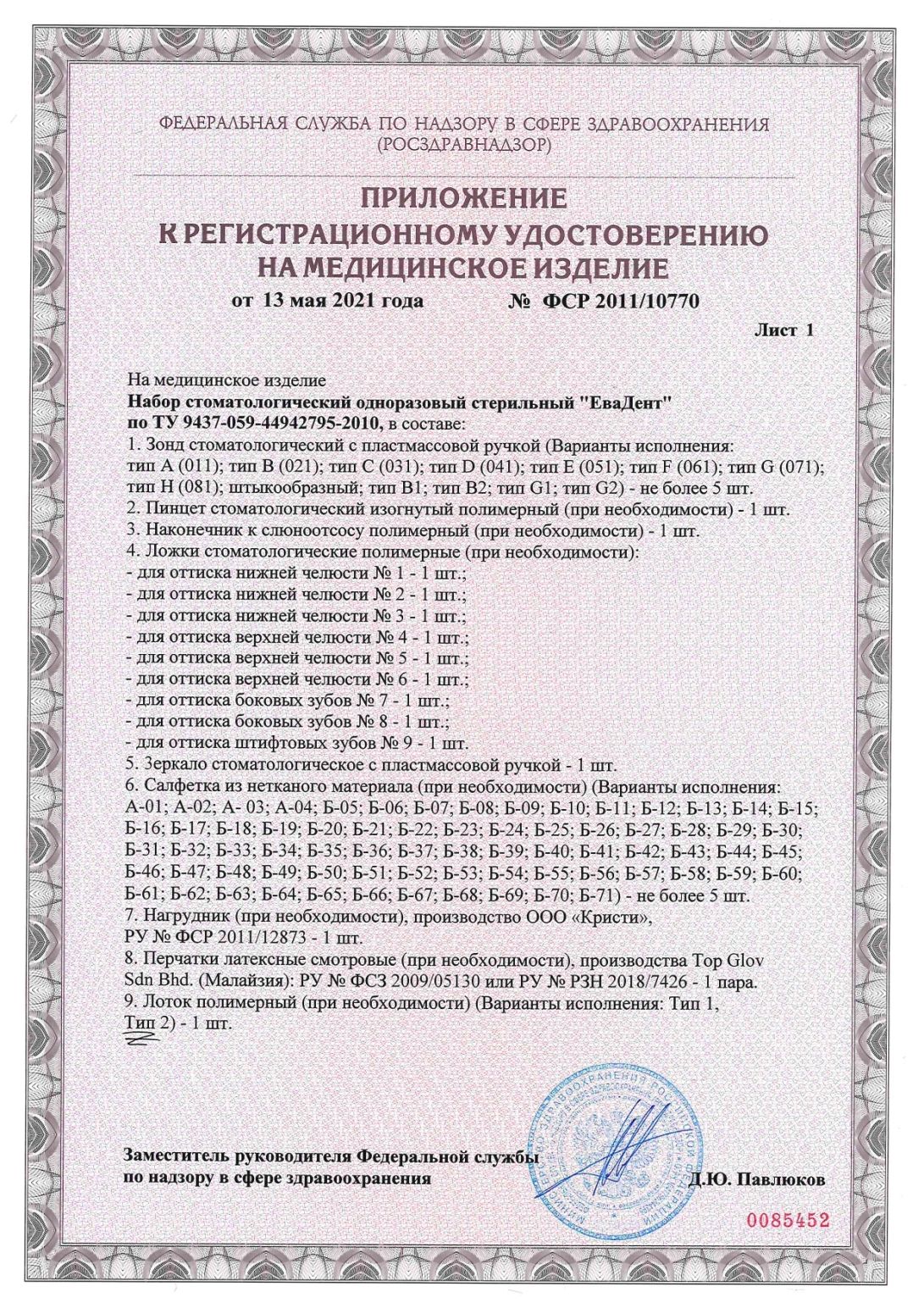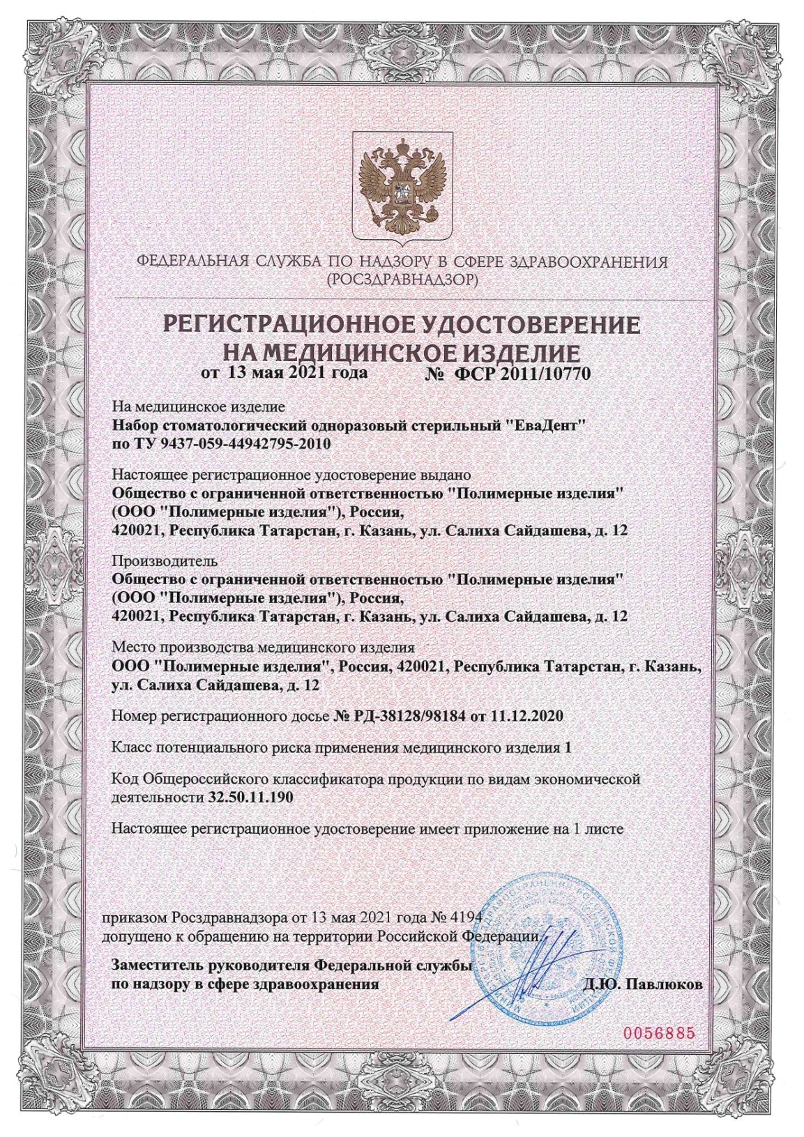 Набор стоматологический стерильный ЕваДент предназначен для первичного осмотра пациента.