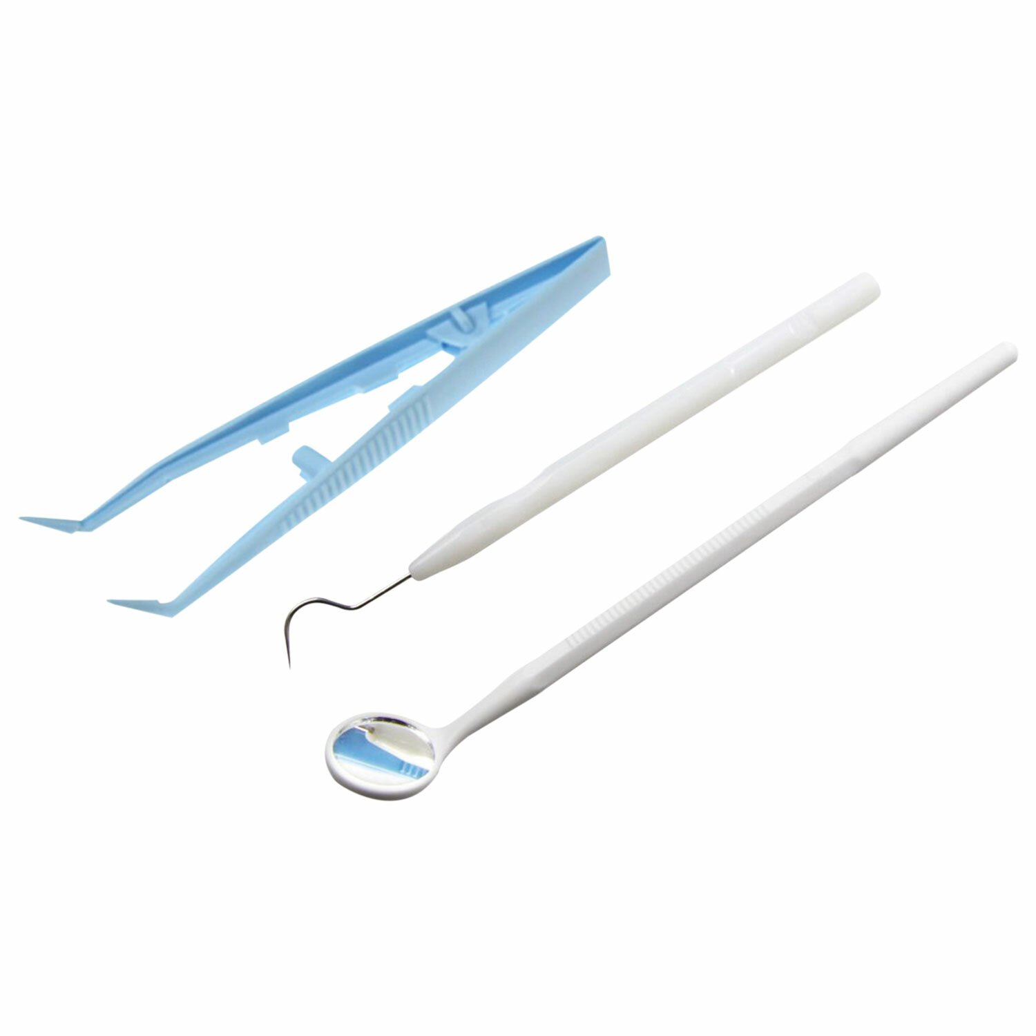 Состав набора: зеркало стоматологическое, зонд стоматологический, пинцет стоматологический.