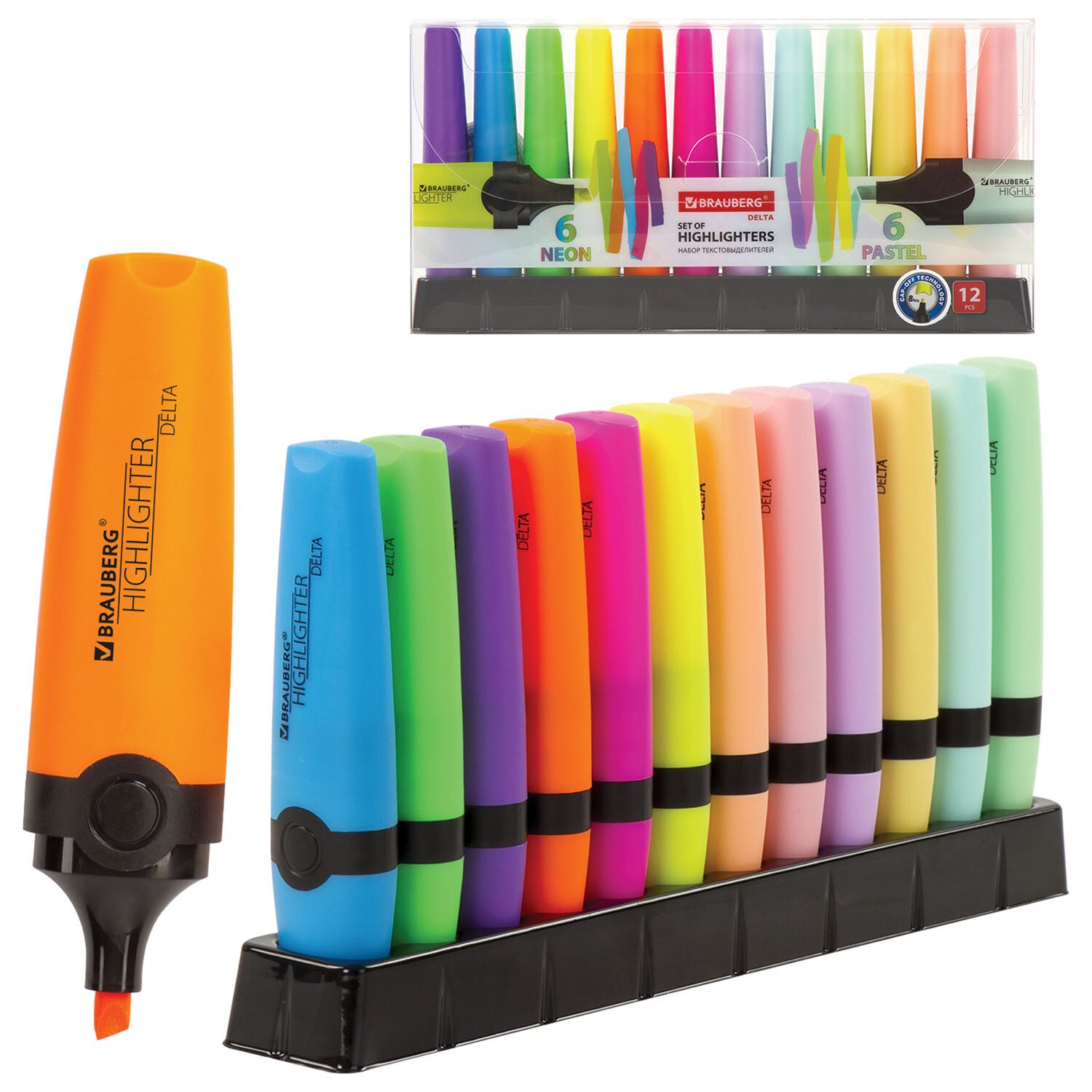 Набор текстовыделителей 12 ЦВЕТОВ на подставке, BRAUBERG "DELTA", линия 1-5 мм, 151737