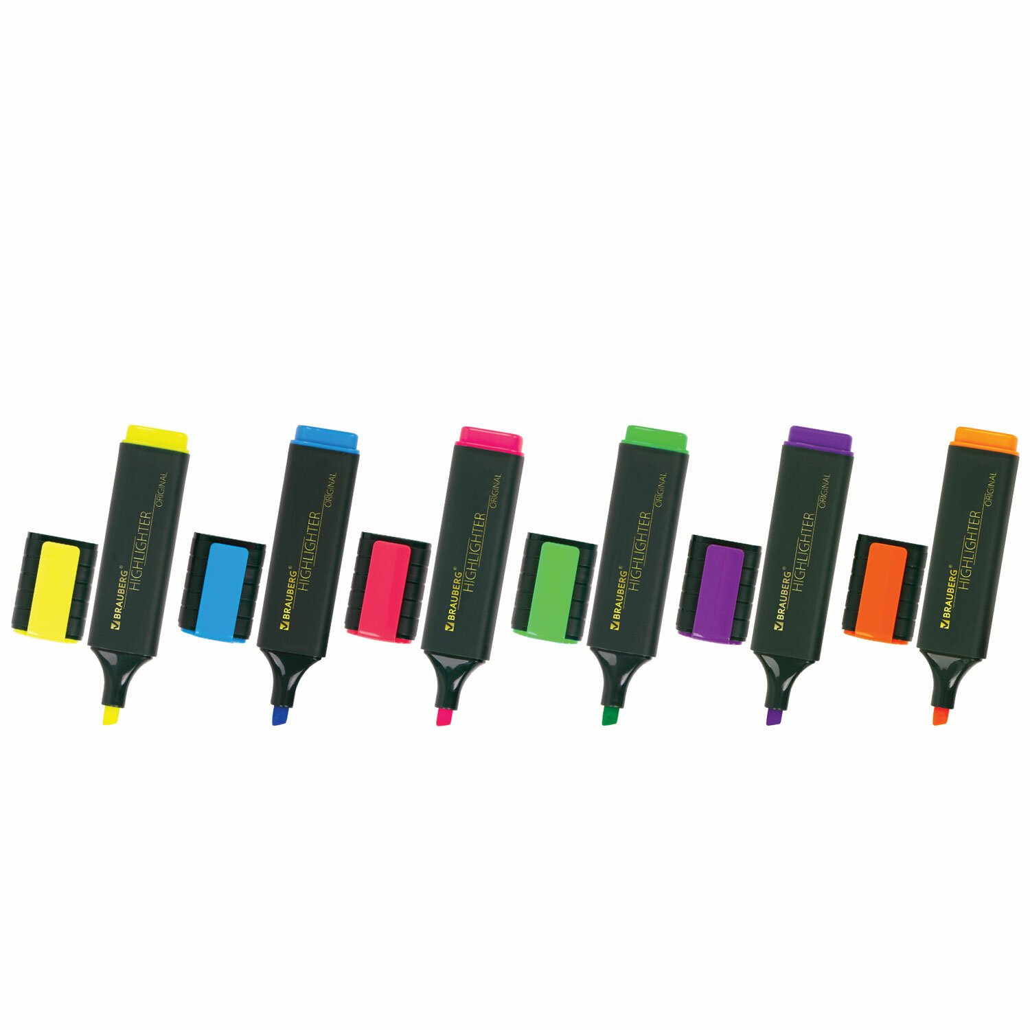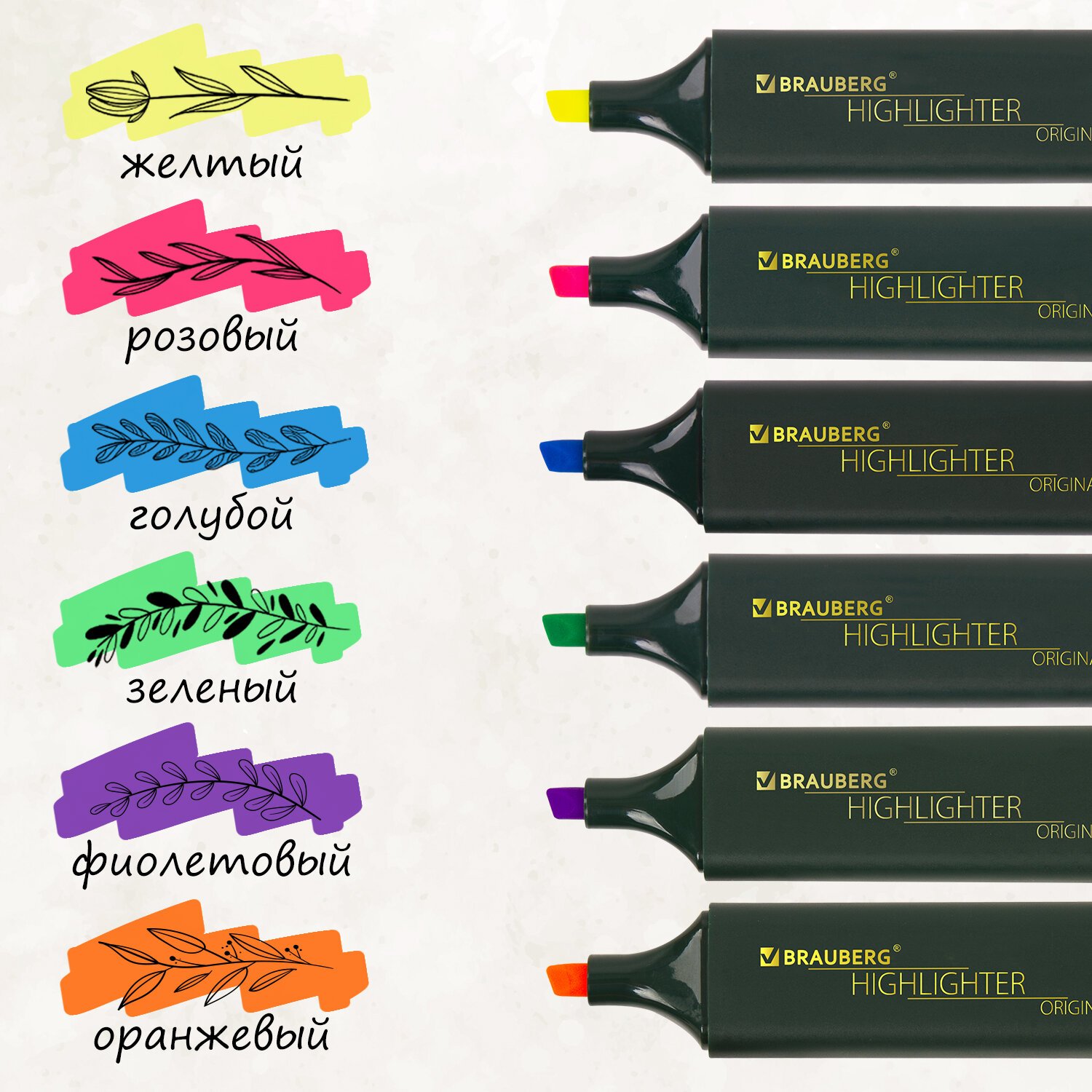 Набор текстовыделителей 6 ЦВЕТОВ, BRAUBERG "ORIGINAL", линия письма 1-5 мм, 151690