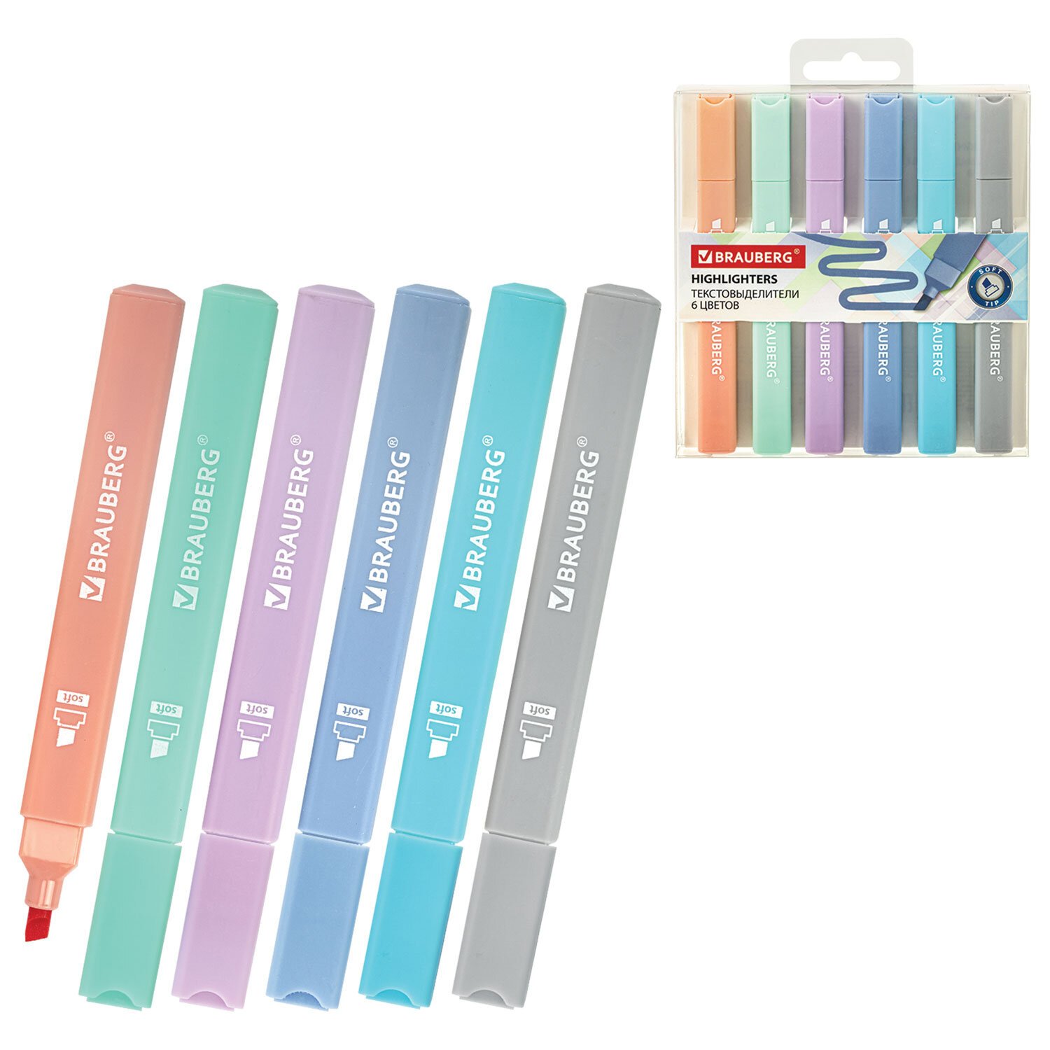 Набор текстовыделителей BRAUBERG 6 шт., АССОРТИ, "EXTRA PASTEL", прорезиненный корпус, линия 1-5 мм, 151757