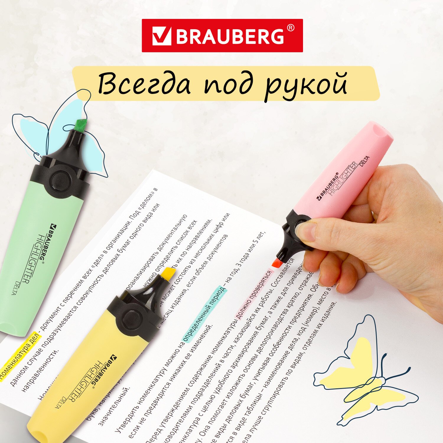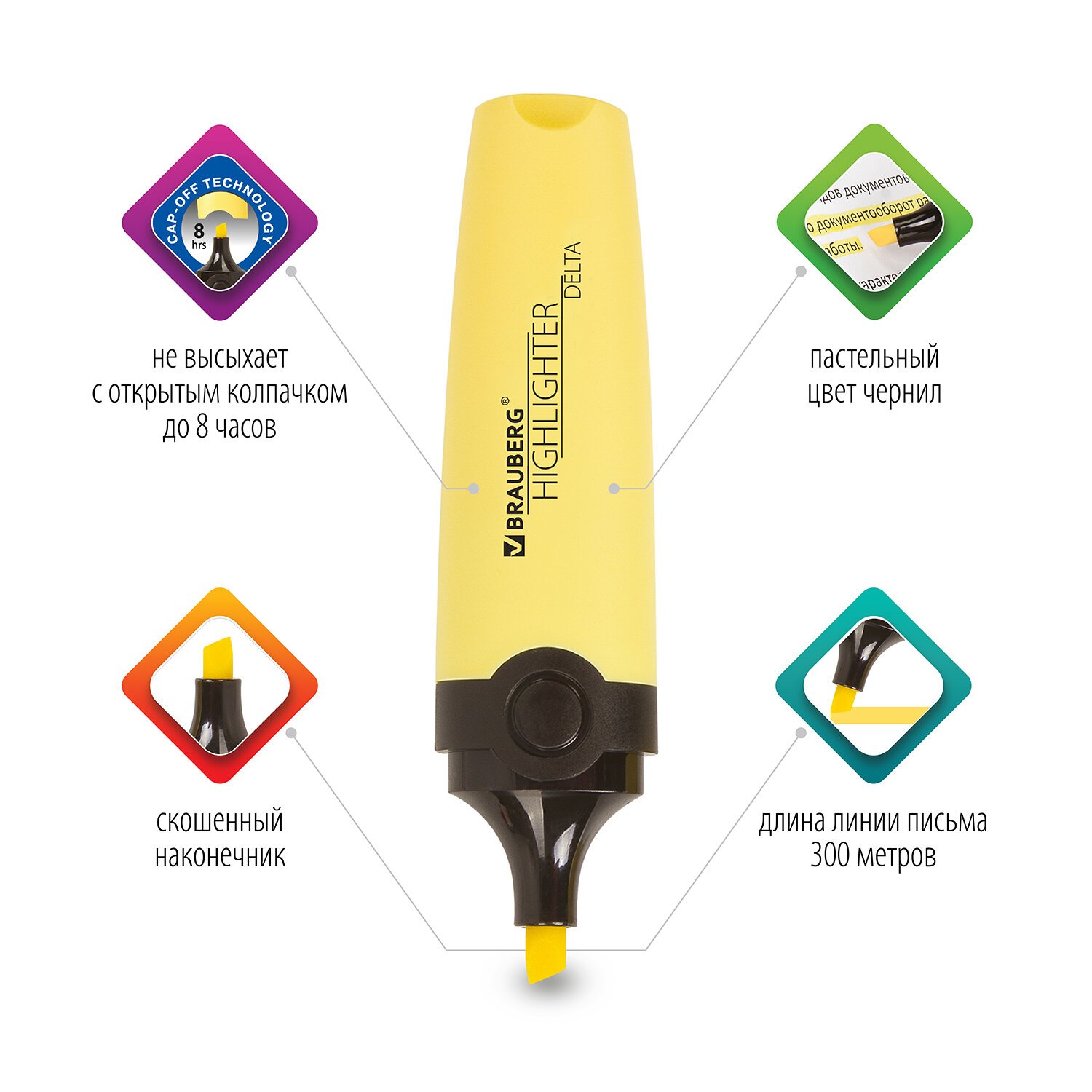 Текстовыделители BRAUBERG "DELTA PASTEL" предназначены для выделения текста на бумаге любого типа, включая факс-бумагу.