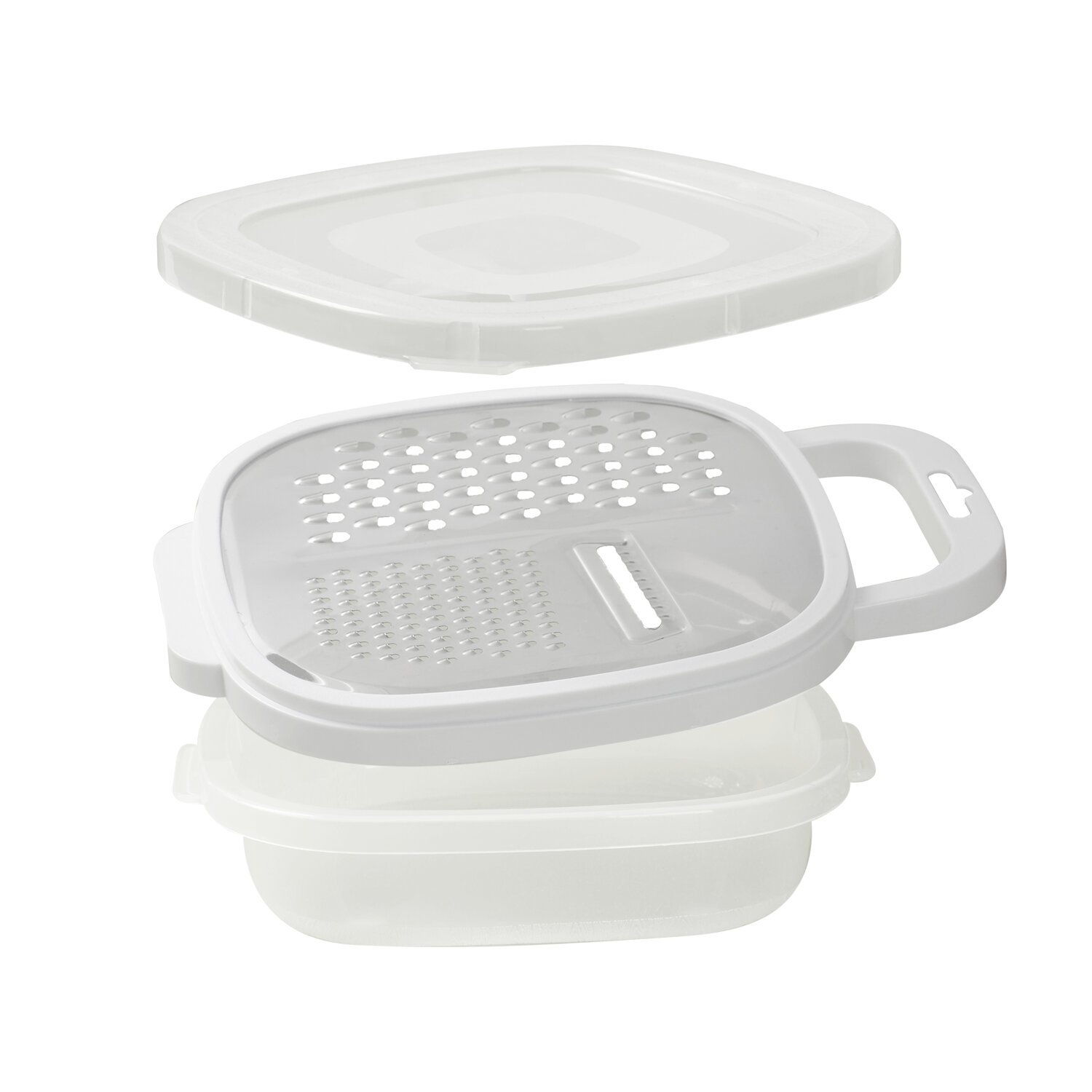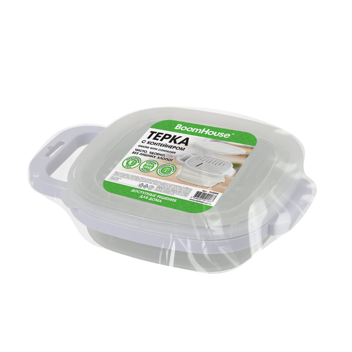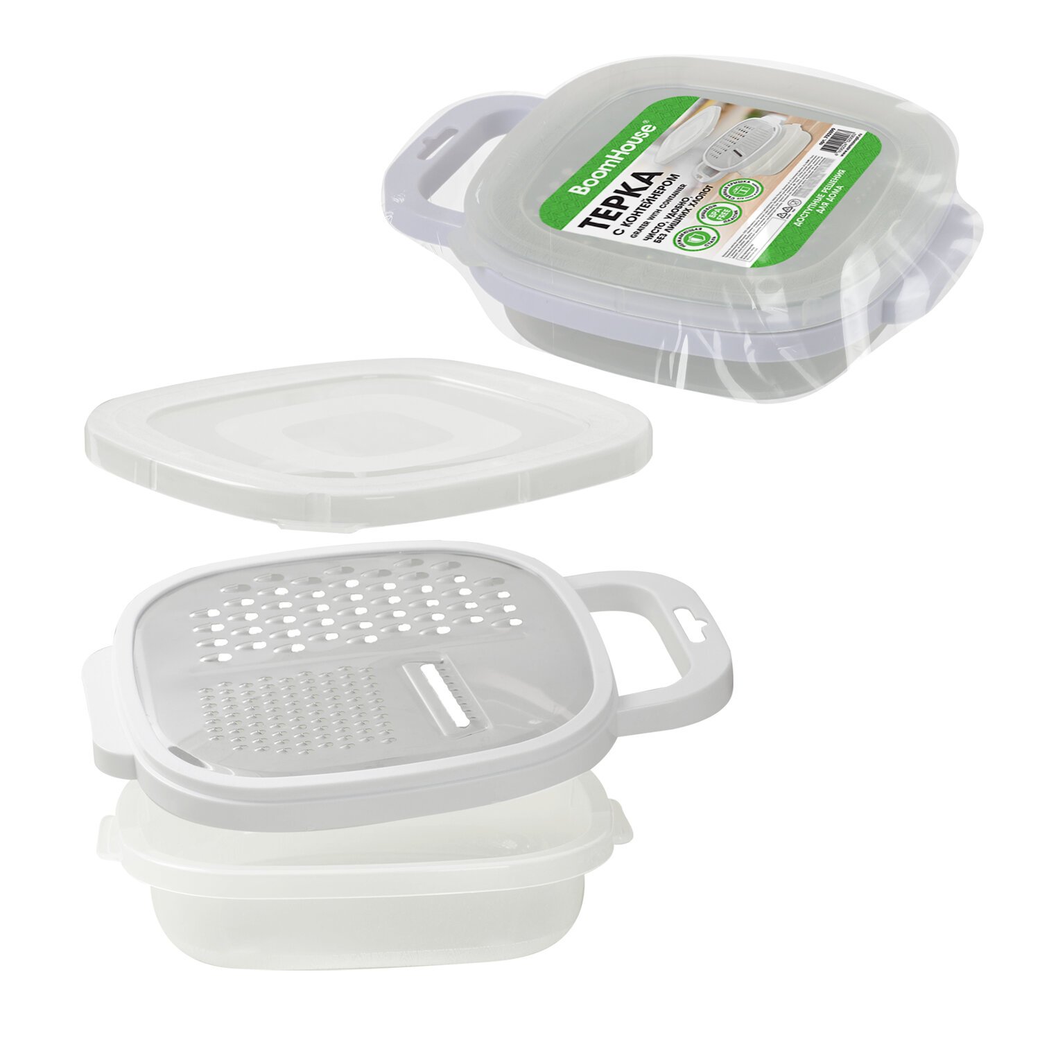 Набор терка горизонтальная + пластиковый контейнер, нержавеющая сталь, белый, BOOMHOUSE, 702099