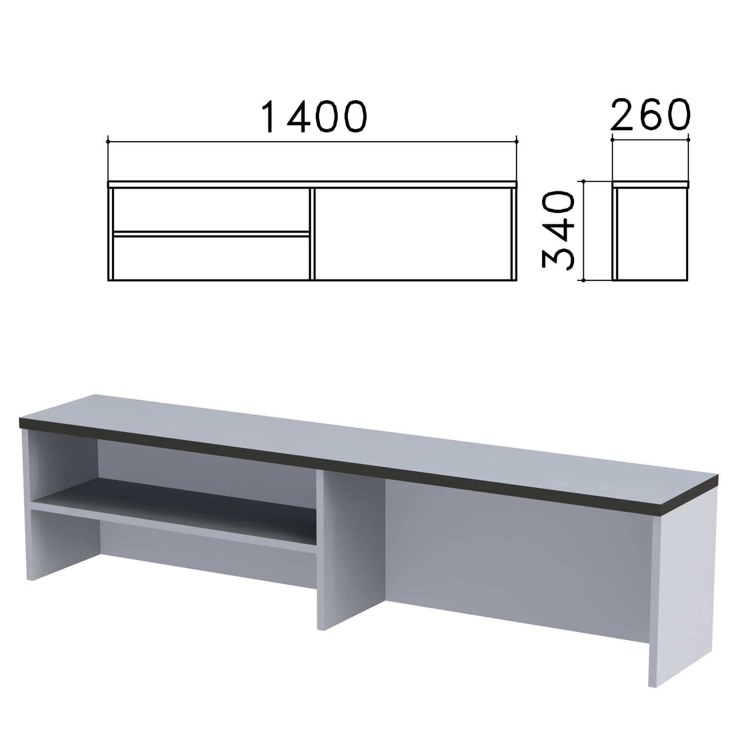 Надстройка для стола письменного "Монолит", 1400х260х340 мм, 1 полка, цвет серый, НМ38.11