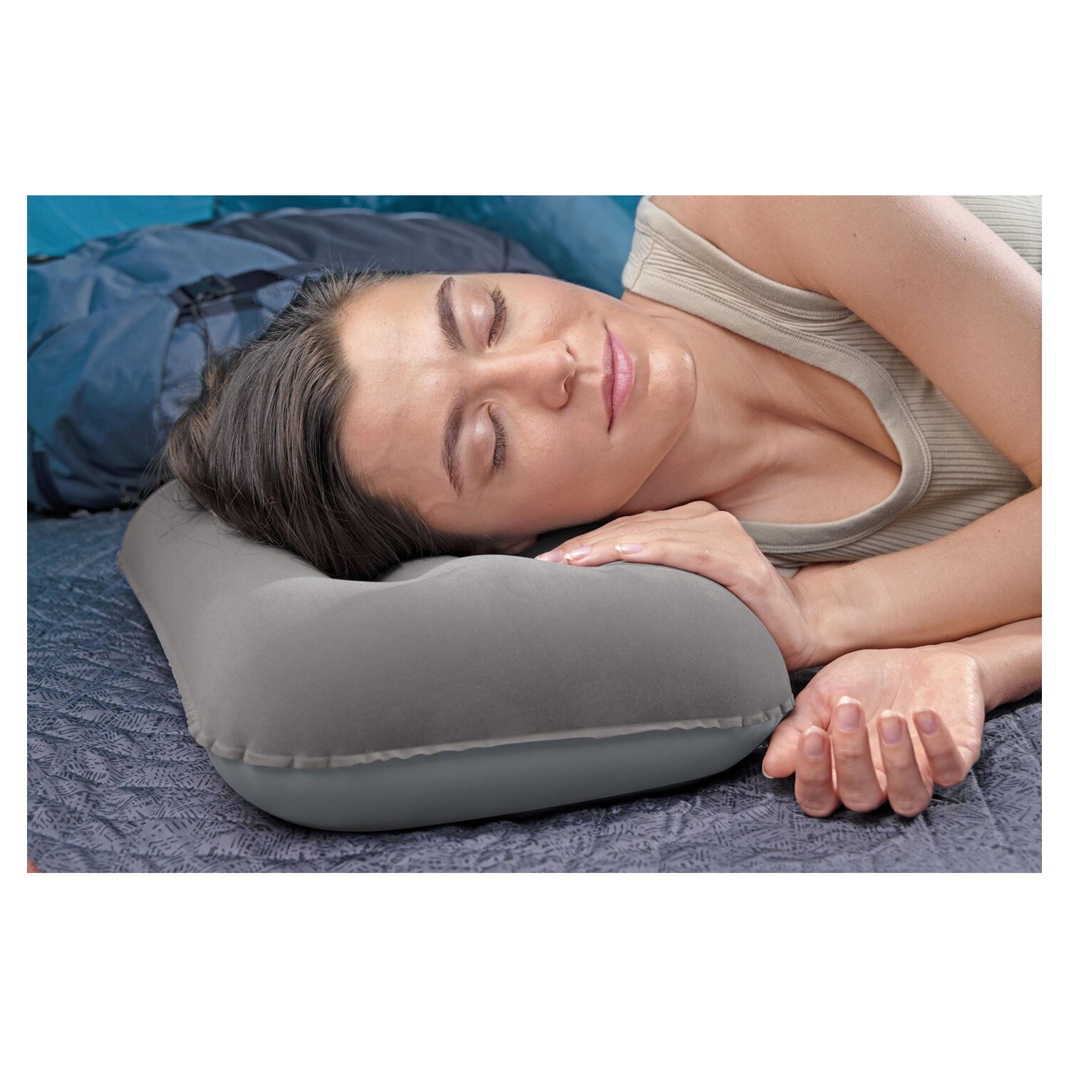 Клапан для надувания подушки удобно расположен, не мешает сну и защищен от случайного открывания.