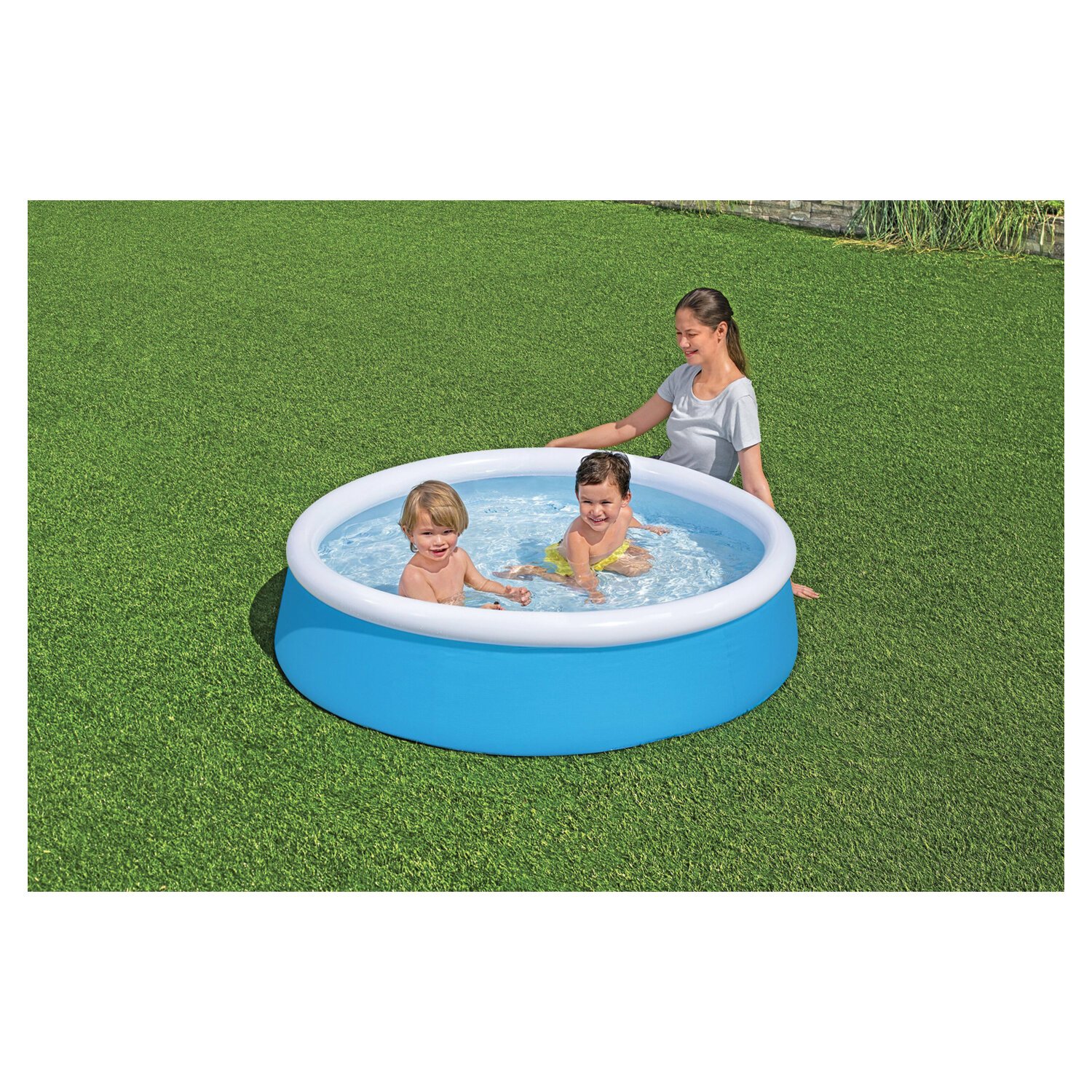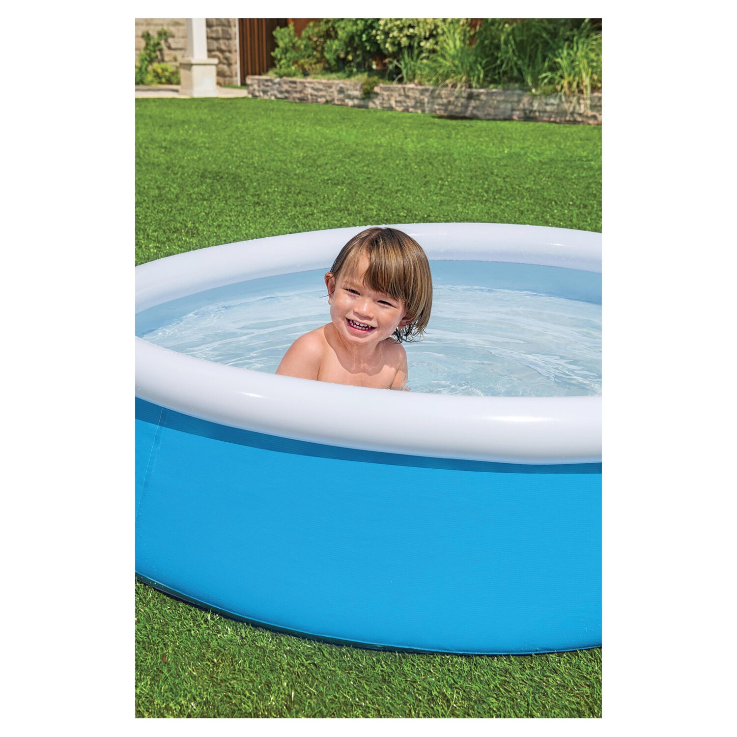 Надувной бассейн отличается простотой и легкостью. Высокие и широкие мягкие бортики по периметру бассейна обеспечивают максимально комфортное купание. Поддержка бортов осуществляется при помощи надувного кольца, которое поднимается по мере наполнения бассейна и расправляет его стенки.