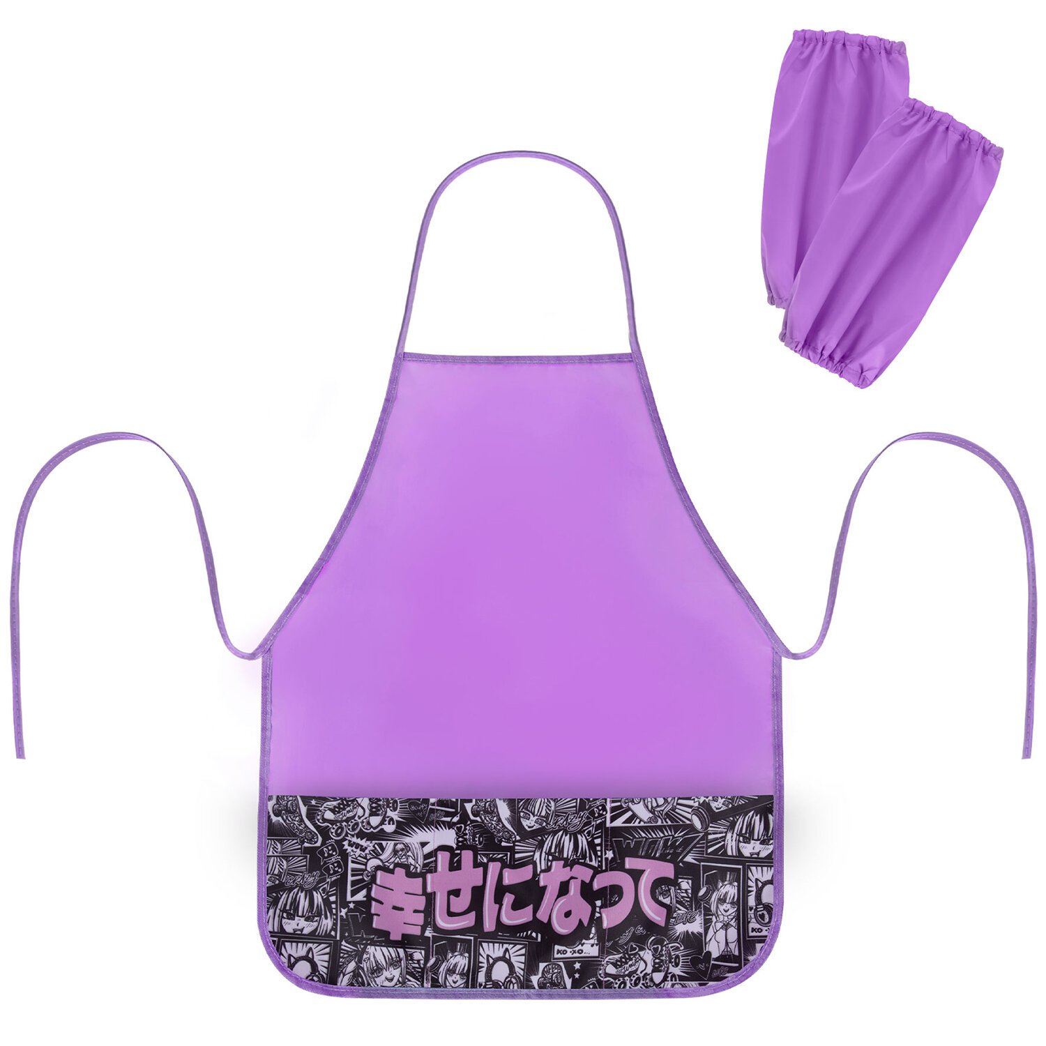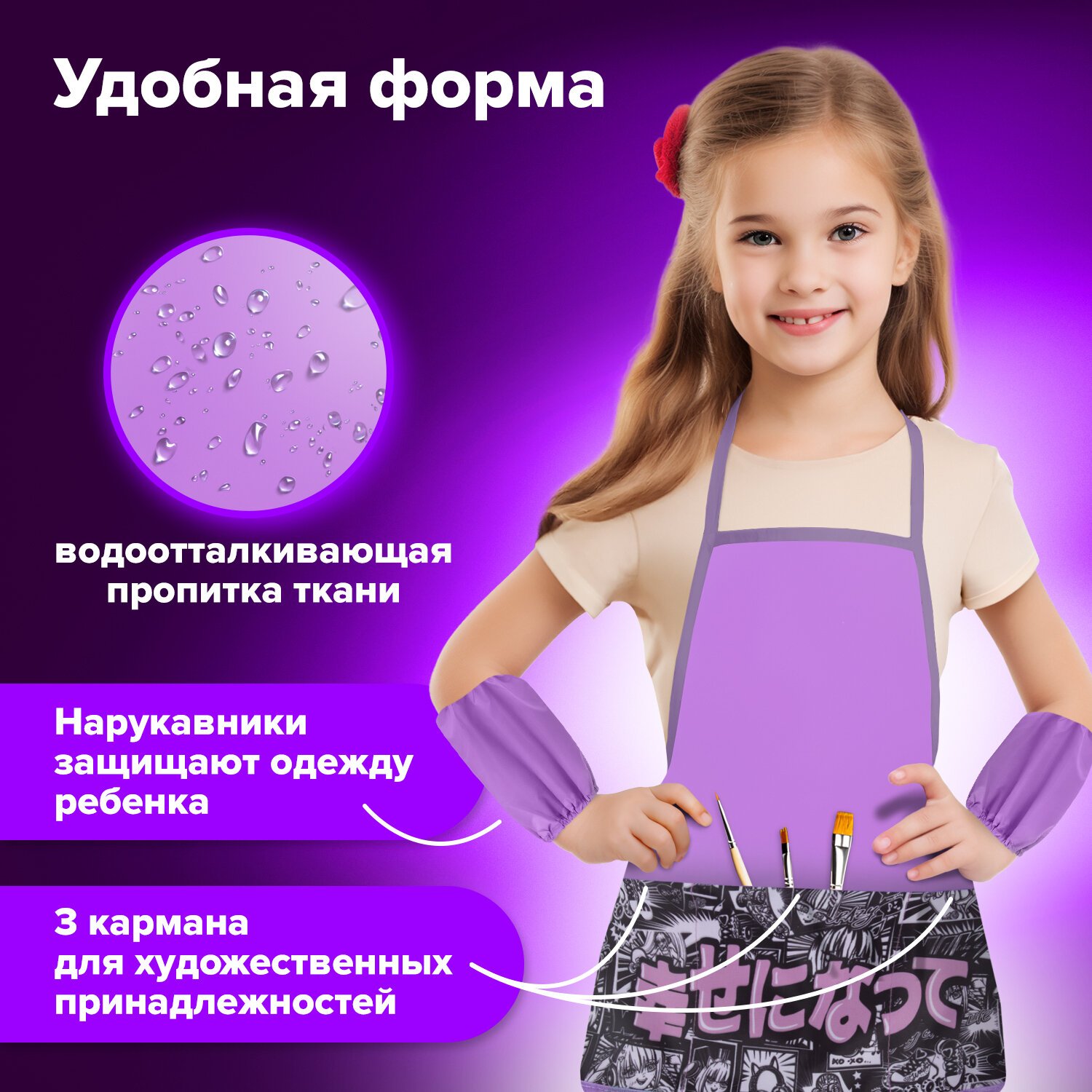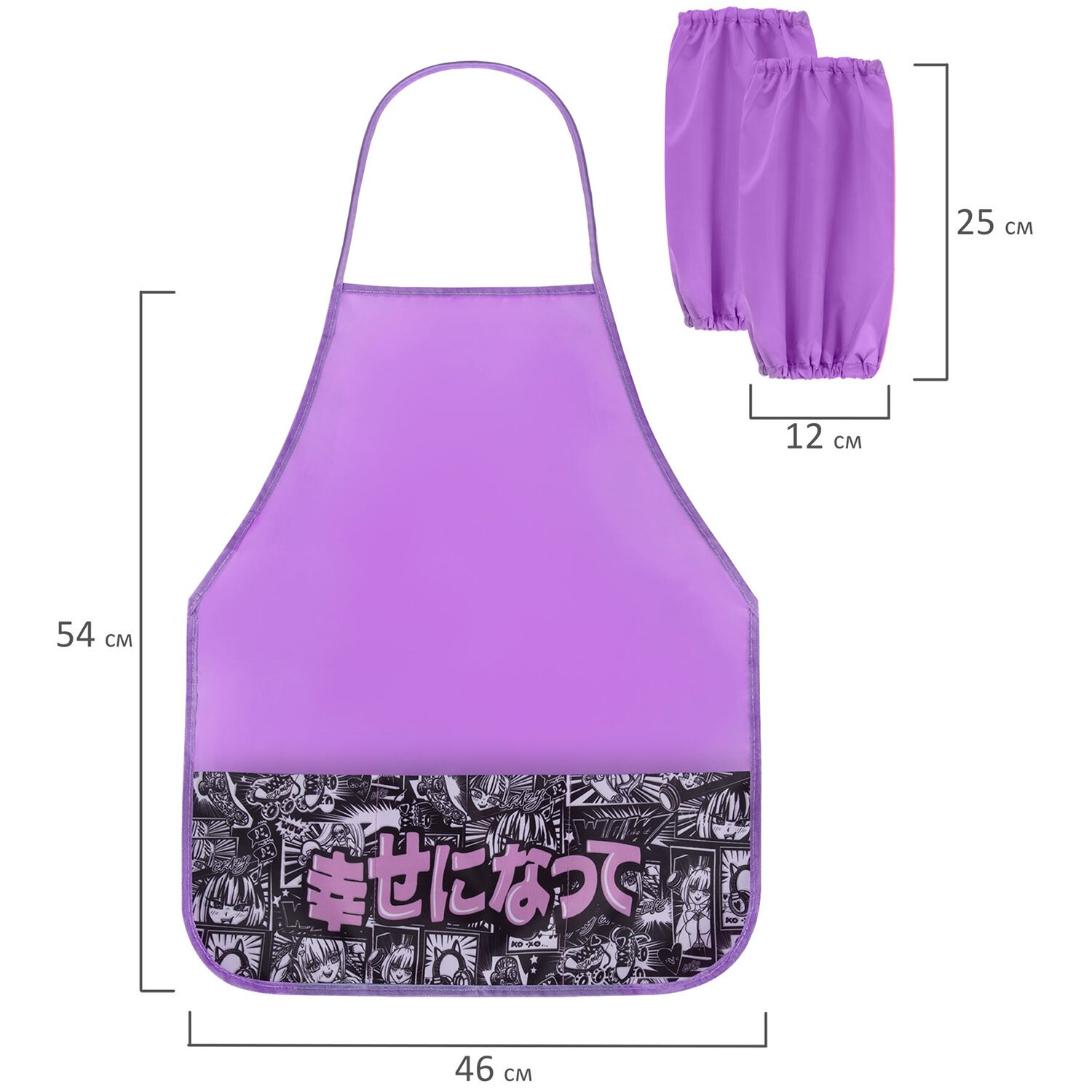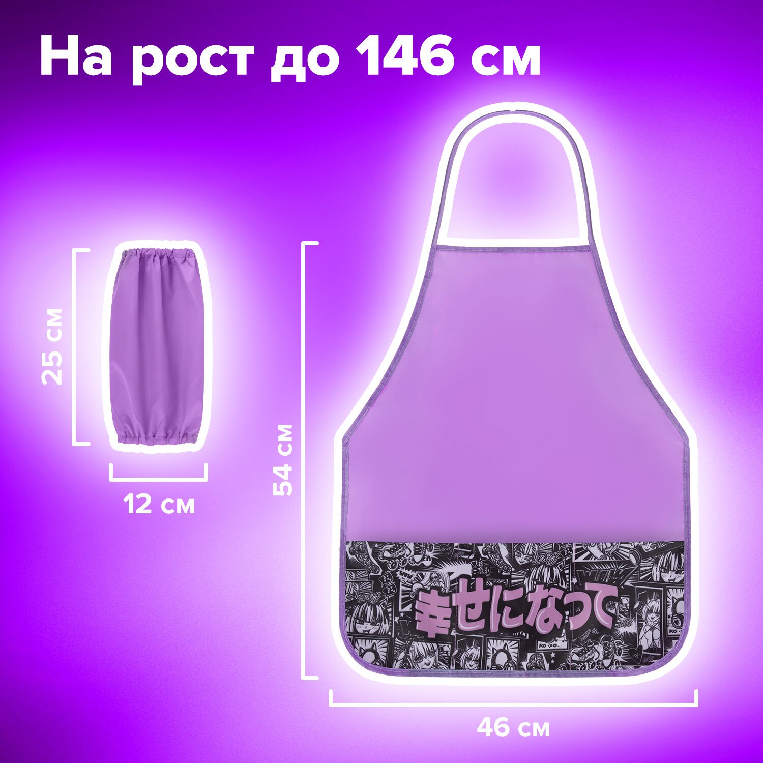 Фартук с нарукавниками для уроков труда ПИФАГОР, 3 кармана, увеличенный размер, 45x60 см, фиолетовый, 273748