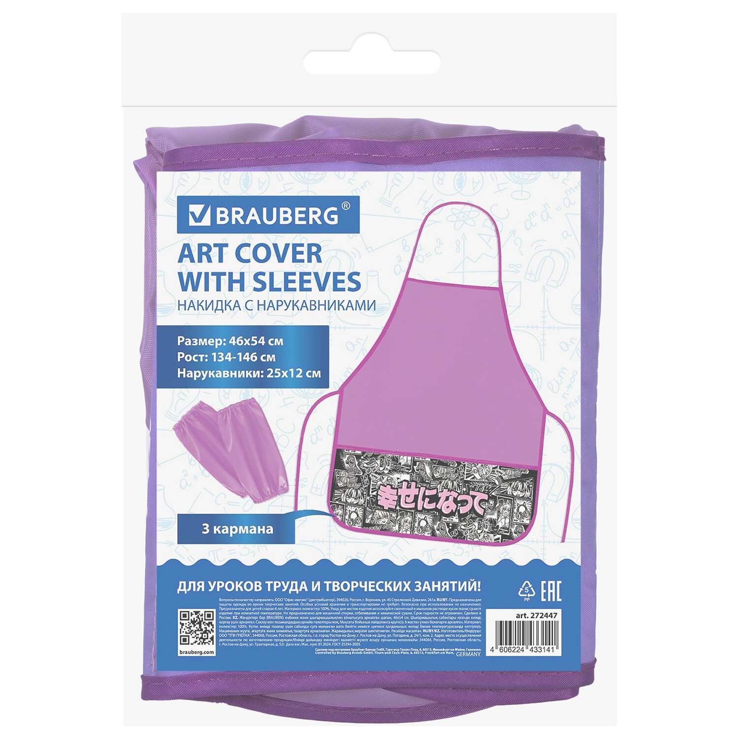 Накидка фартук с нарукавниками для труда BRAUBERG, 3 кармана, 46x54 см, "Anime movie", 272447