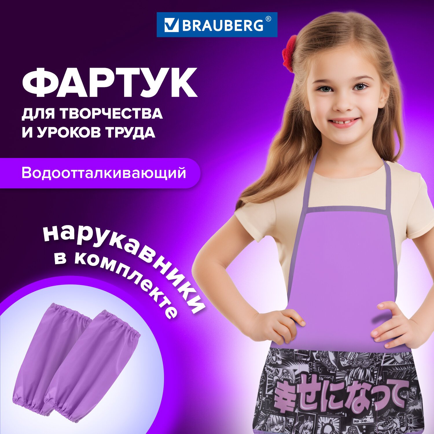 Накидка-фартук с нарукавниками BRAUBERG подходит для защиты одежды на уроках труда и занятиях творчеством. Накидка-фартук изготовлена из водоотталкивающего материала, предназначена для многоразового использования.