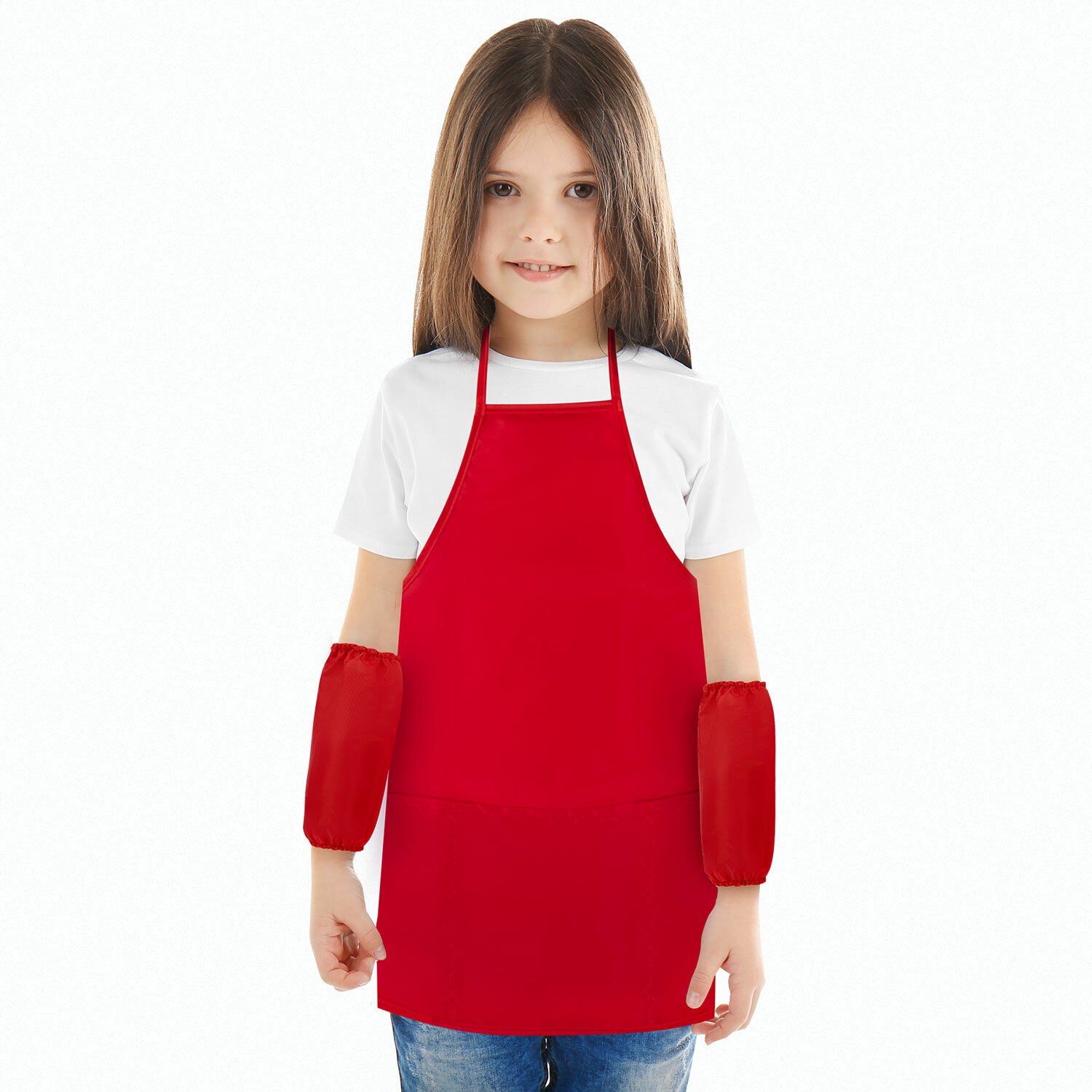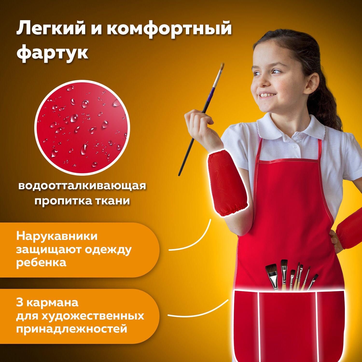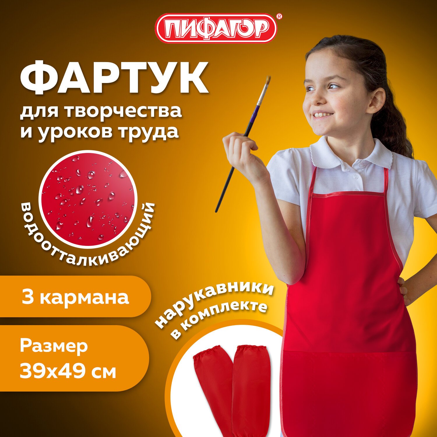 Накидка фартук с нарукавниками для труда ПИФАГОР, 3 кармана, уменьшенный размер, 39х49 см, красный, 270919