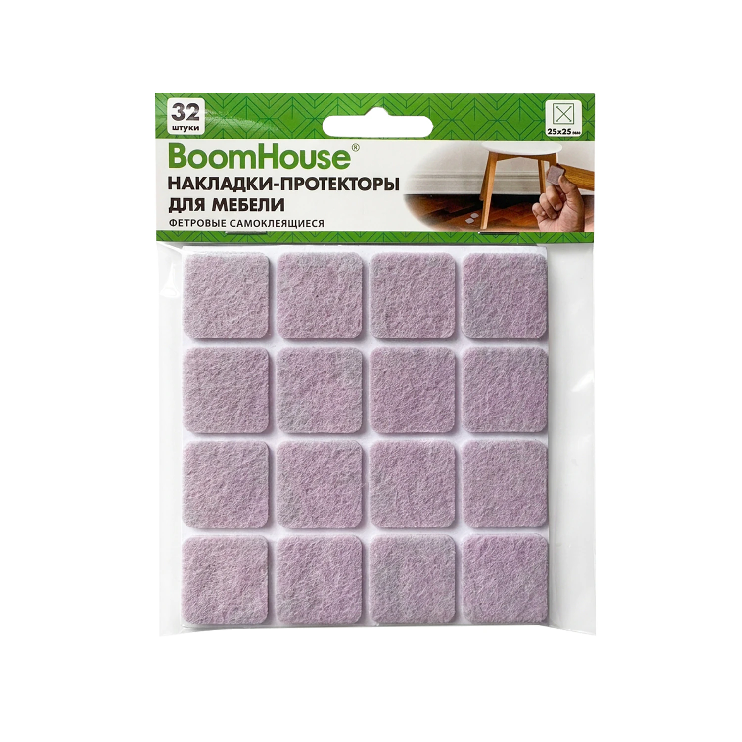 Накладки-протекторы для мебели ФЕТР самоклеящиеся, 25х25мм, бежевые, КОМПЛЕКТ 32 шт, BoomHouse, 701822