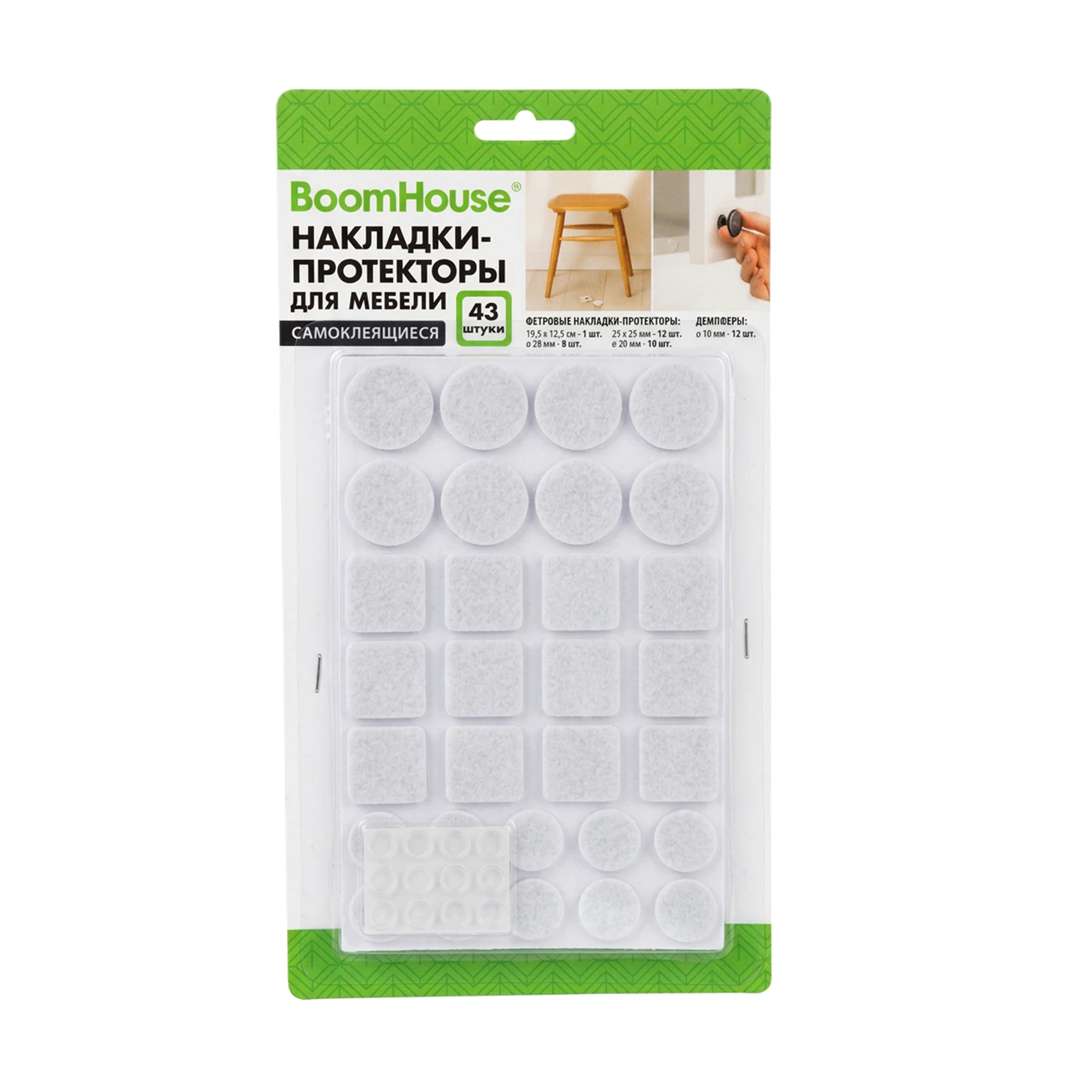 Накладки-протекторы для мебели самоклеящиеся НАБОР 43 предмета, белые, BoomHouse, 701828