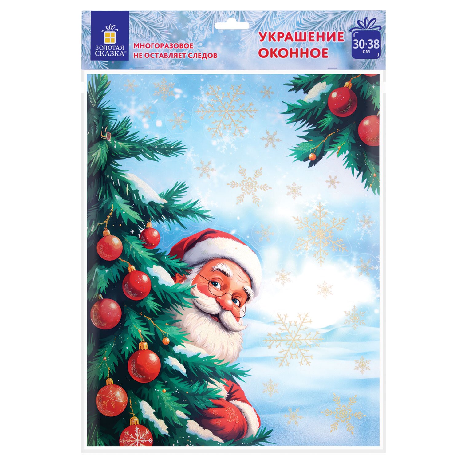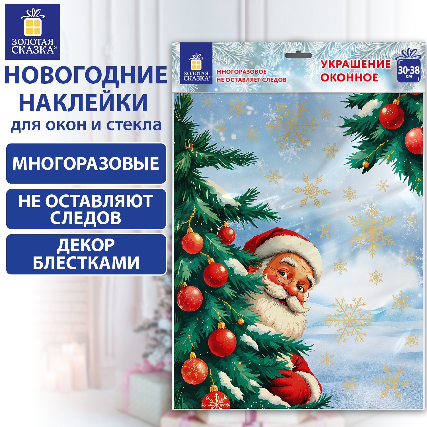 Наклейка для окон двусторонняя, 30х38см "Дед Мороз", глиттер, золотой, ЗОЛОТАЯ СКАЗКА, 592575