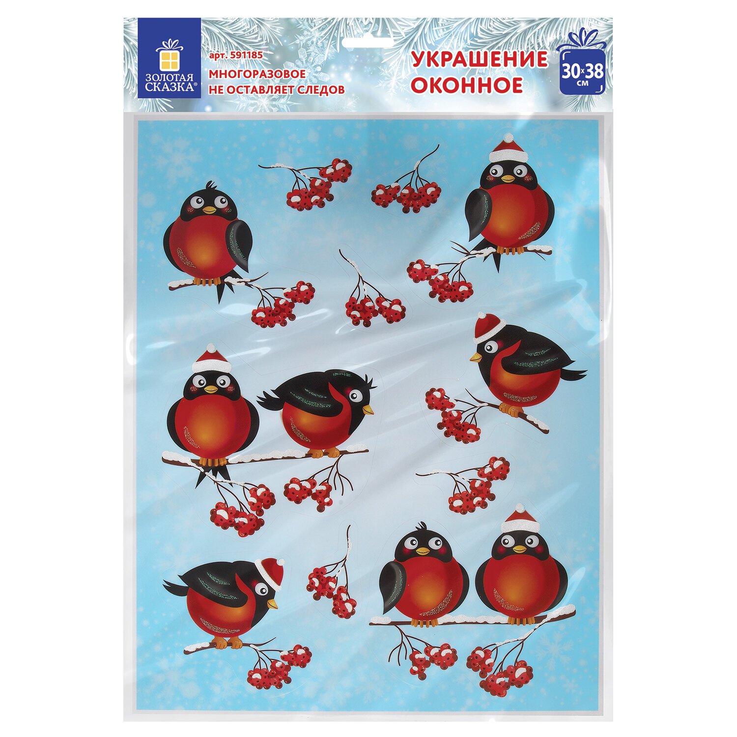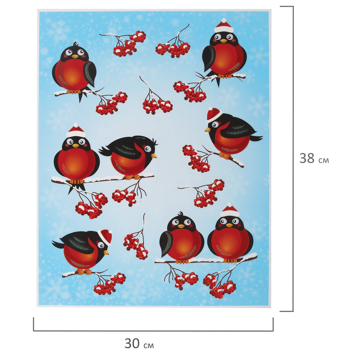Наклейка для окон двусторонняя МНОГОРАЗОВАЯ 30х38 см "Снегири", ЗОЛОТАЯ СКАЗКА, 591185