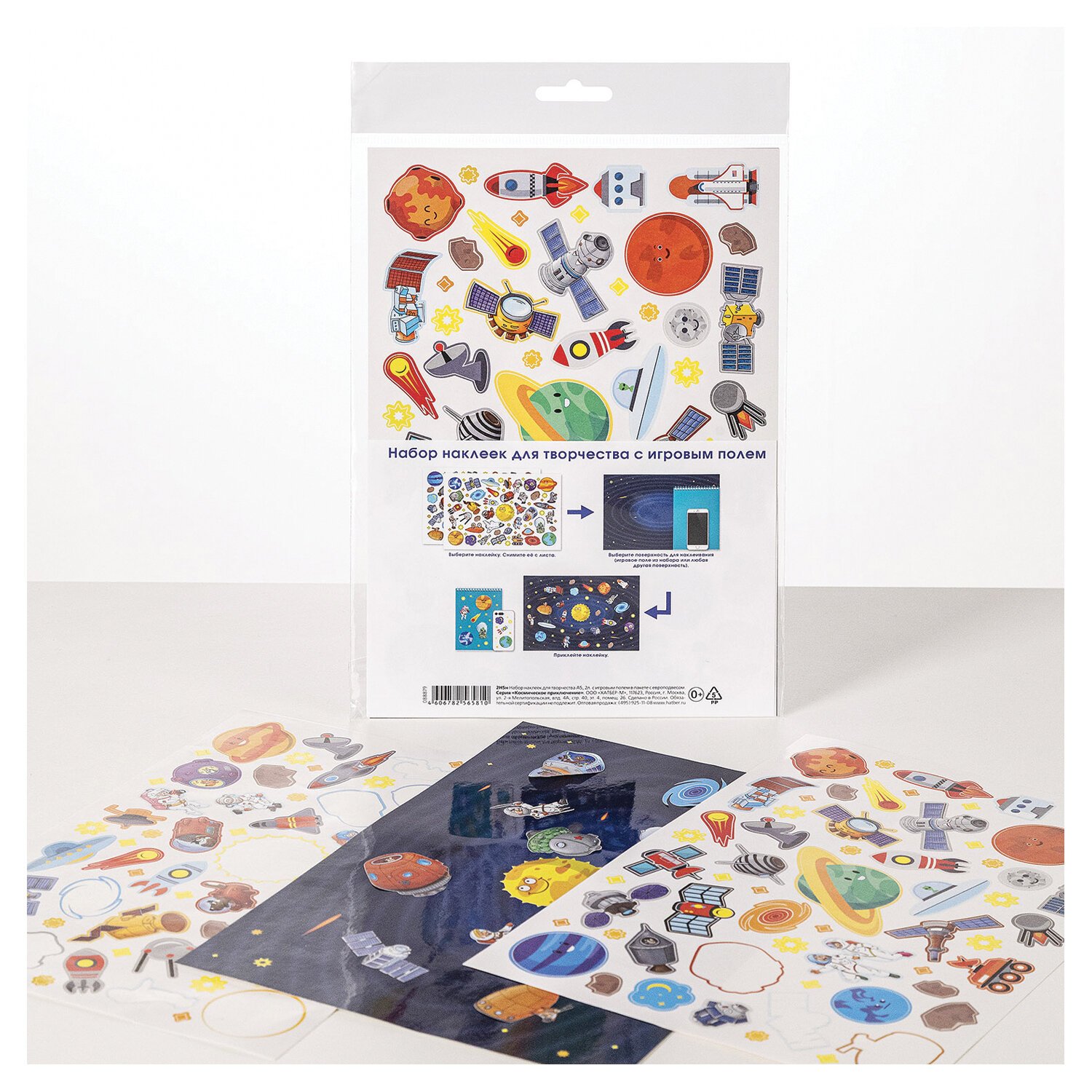 Наклейки бумажные с игровым полем НАБОР, 2л, 184накл, Космическое приключение, HTB, 2Н5н,ш/к 65810