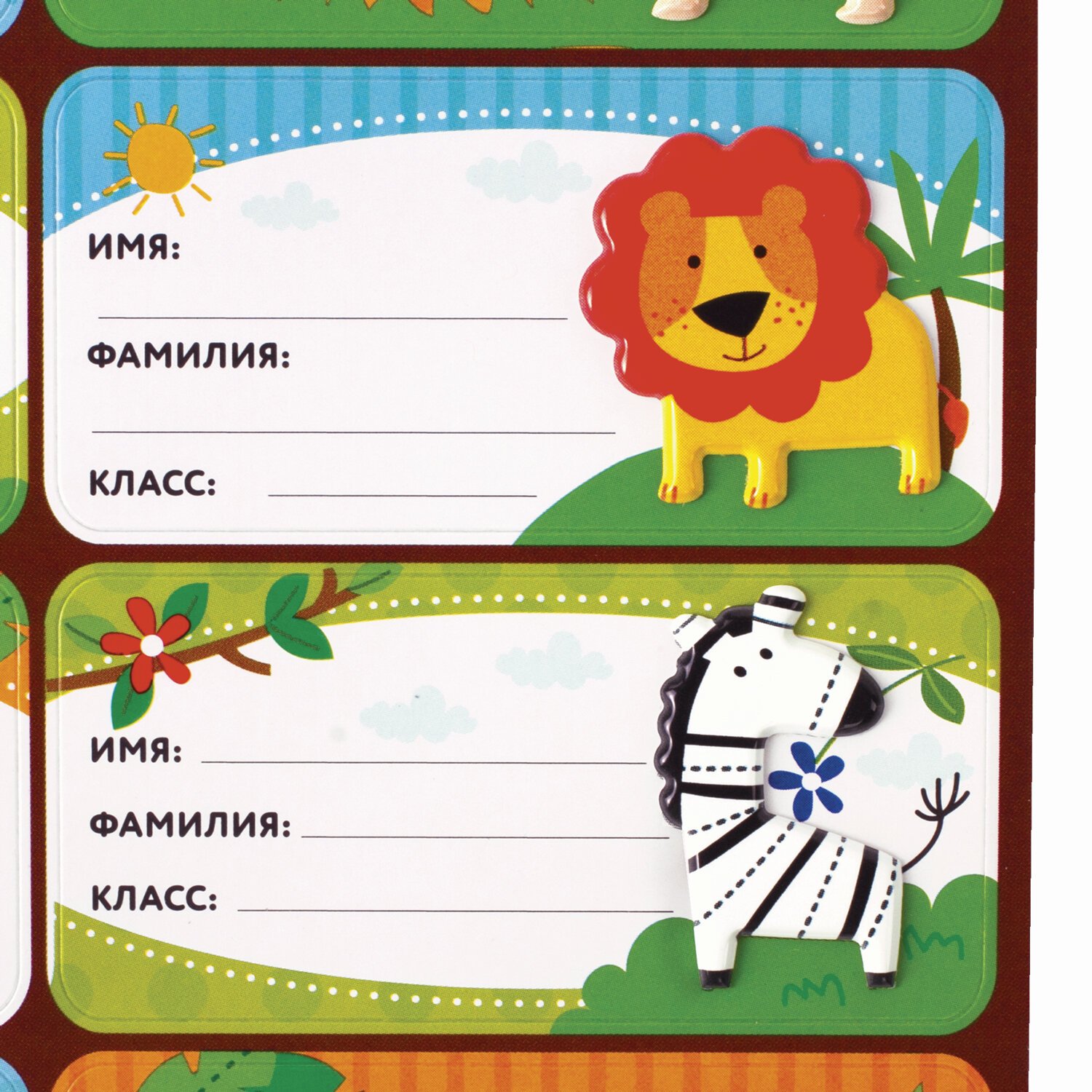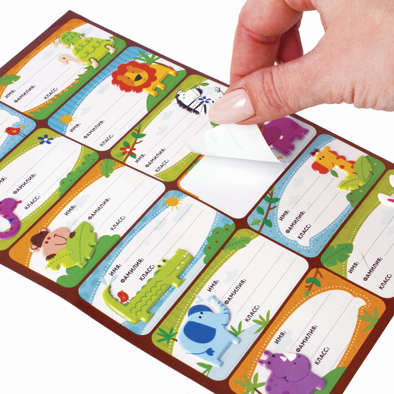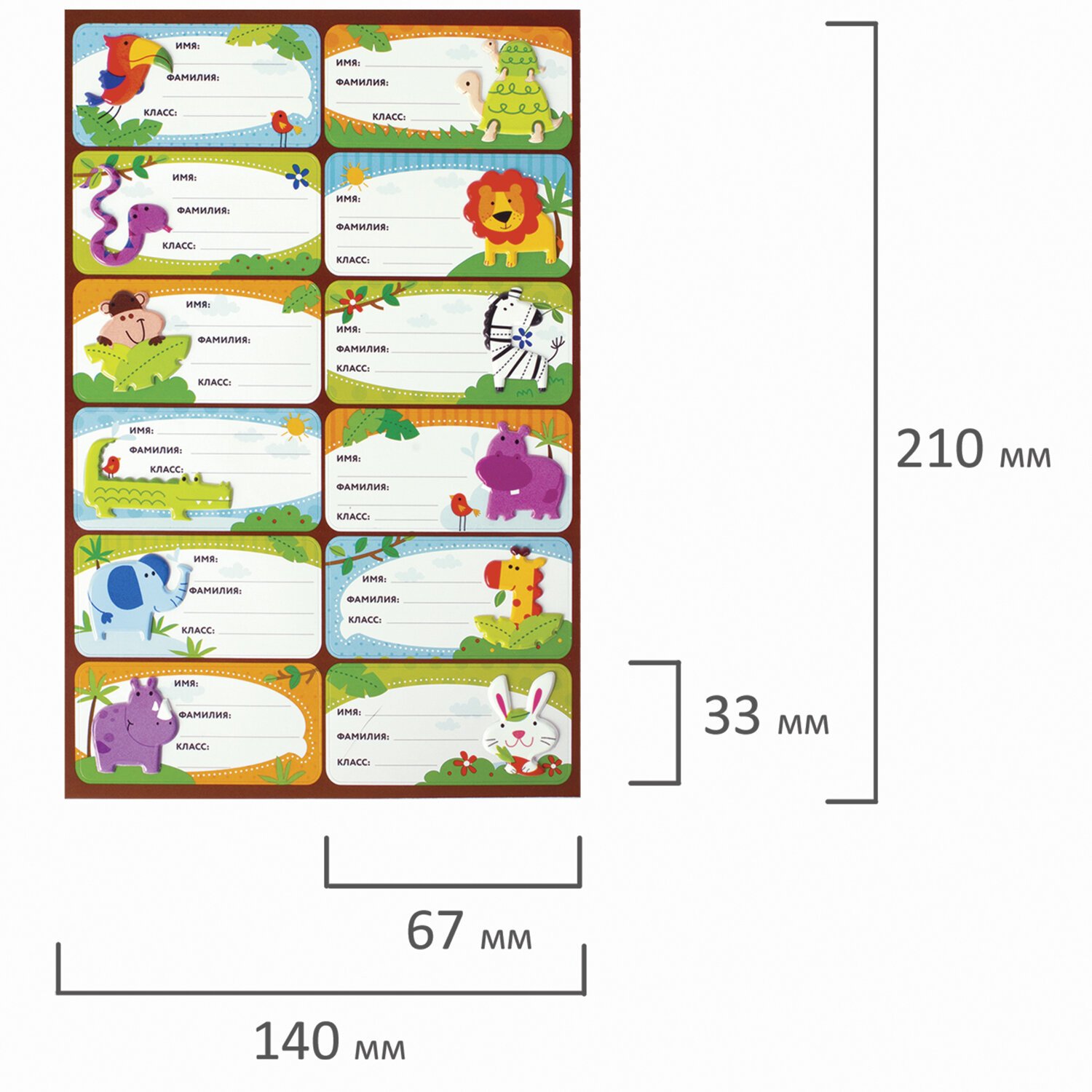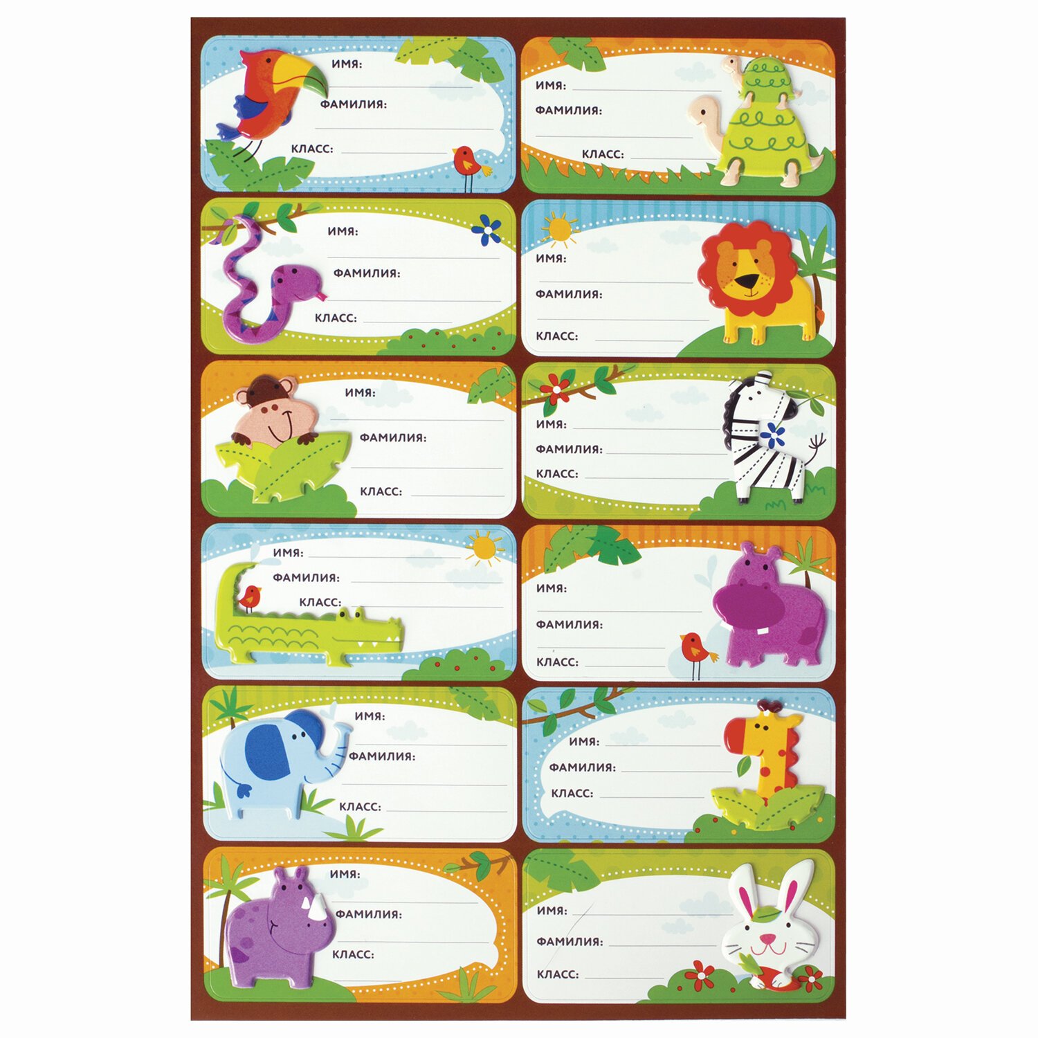 Наклейки для маркировки школьных принадлежностей "Зверушки", 12 штук, 14х21 см, ЮНЛАНДИЯ, 662708