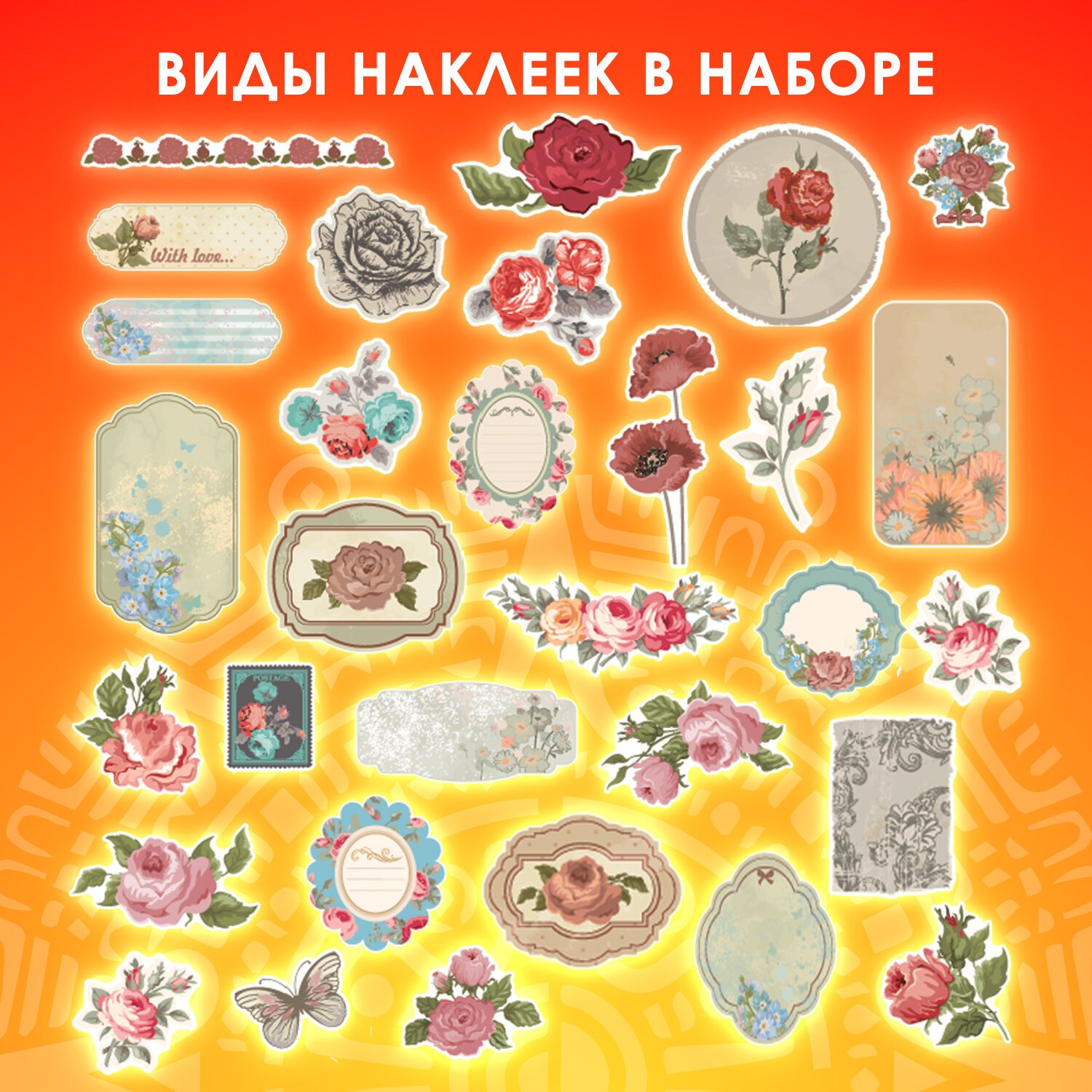 Наклейки в данном наборе объединены единой тематикой "Розы" – это разнообразные цветочные композиции в винтажном стиле. Прекрасно подойдут для использования в скрапбукинге, декупаже и других видах творчества.