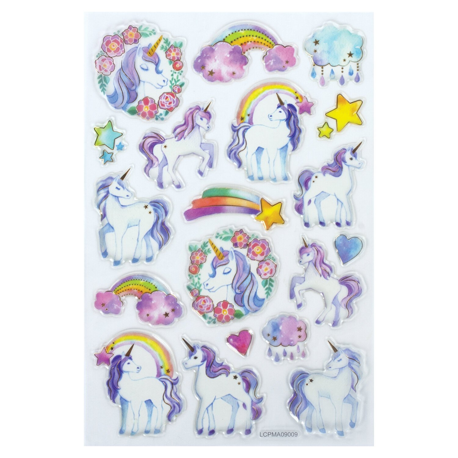 Наклейки гелевые "Единороги", многоразовые, с тиснением фольгой, 10х15 см, ЮНЛАНДИЯ, 661805