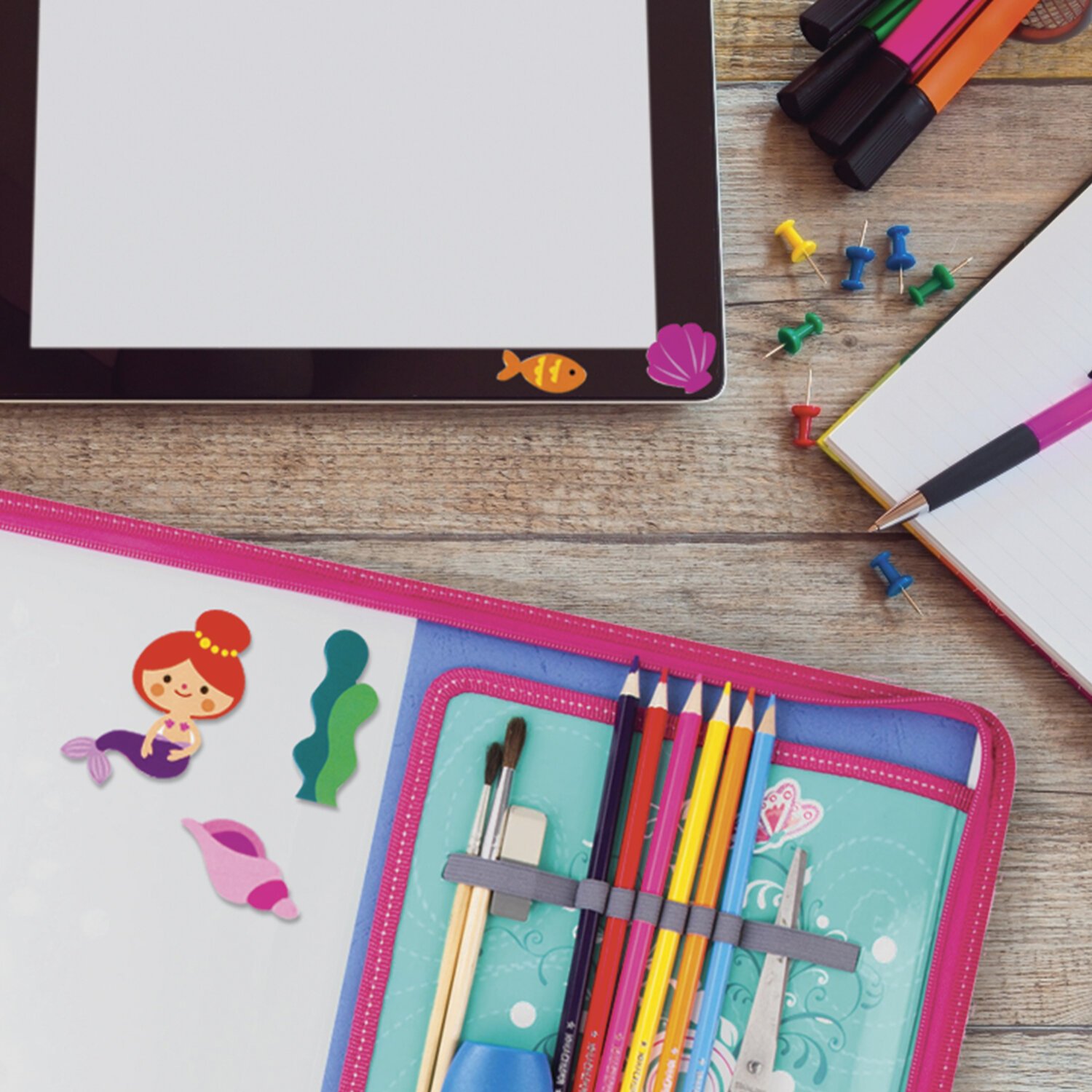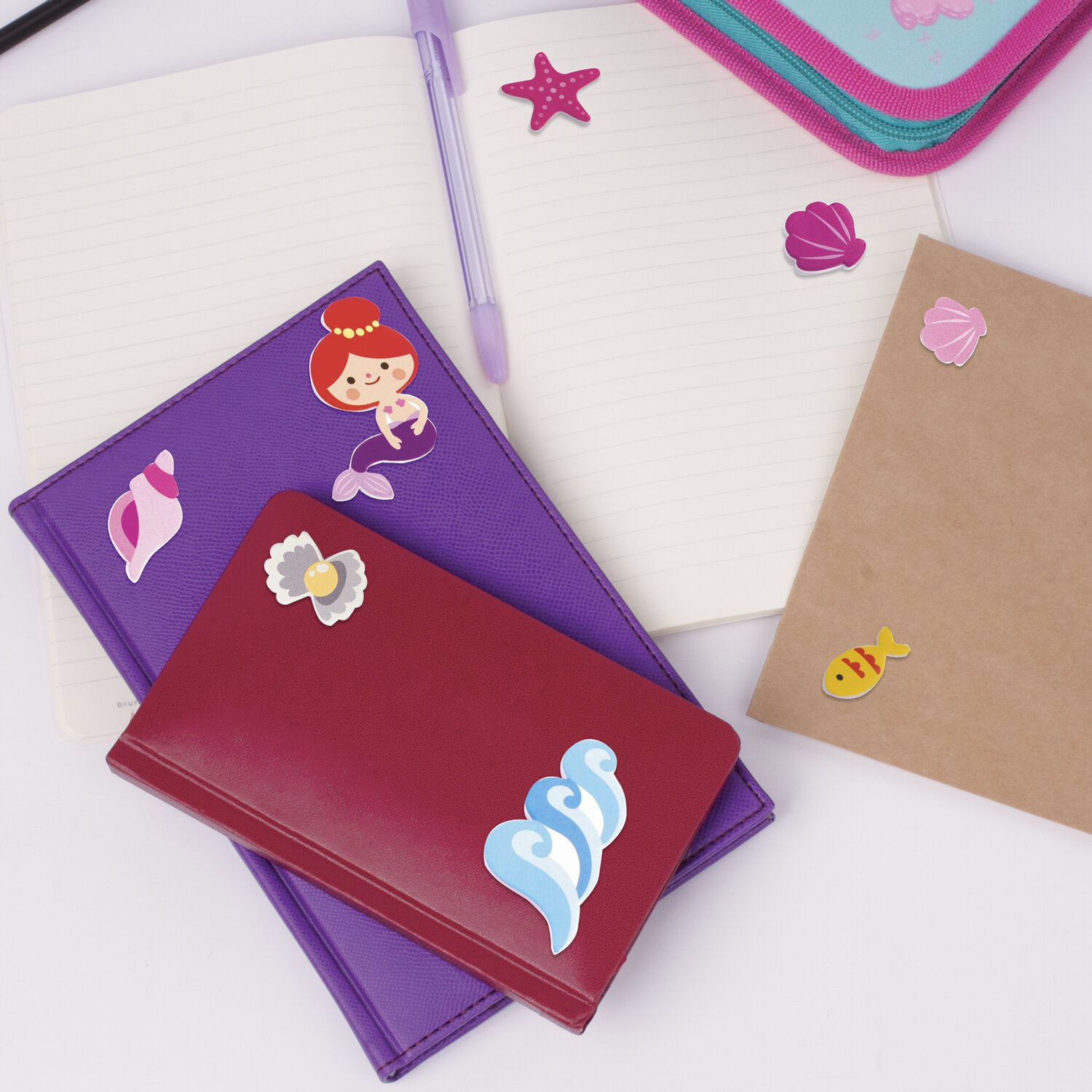 В наборе содержится 15 объёмных наклеек из мягкого пластика (ЭВА) в форме русалки, ракушек и морских растений. Наклейки отличаются высочайшим качеством печати и цветопередачи. Стильные и яркие, они украсят тетрадь, дневник, блокнот с записями о морском путешествии и любые поделки!