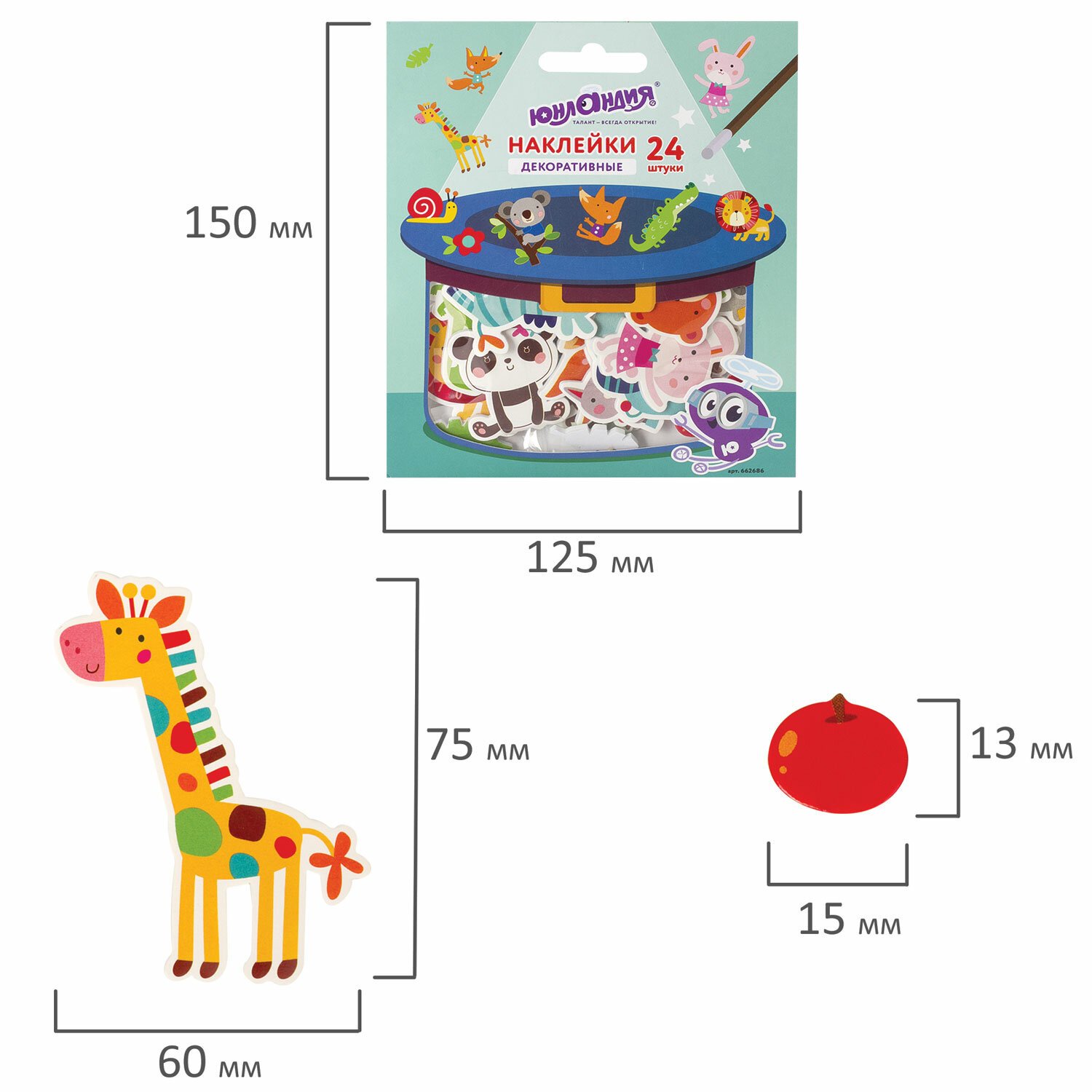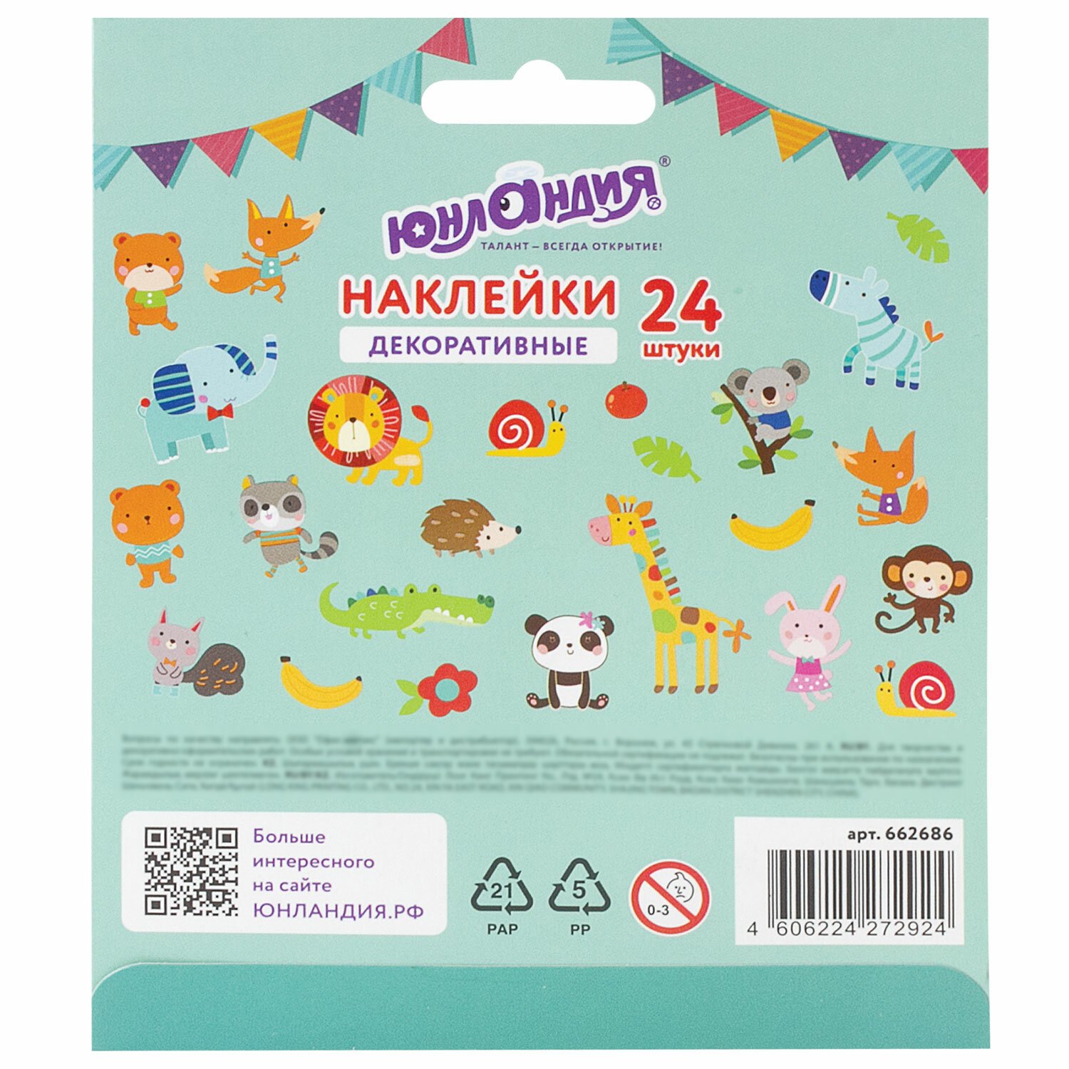 Наклейки из EVA "Зверушки", 24 штуки, ассорти, ЮНЛАНДИЯ, 662686