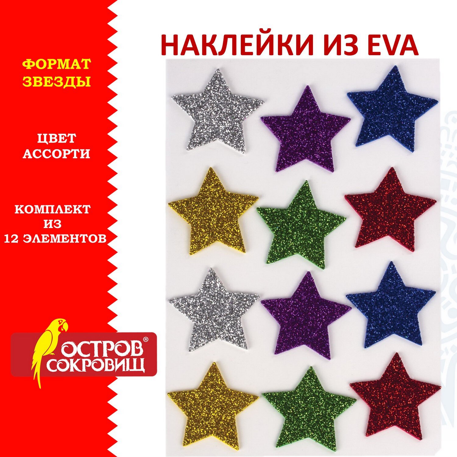 Наклейки из EVA "Звезды", 12 шт., блестящие, ассорти, ОСТРОВ СОКРОВИЩ, 661452