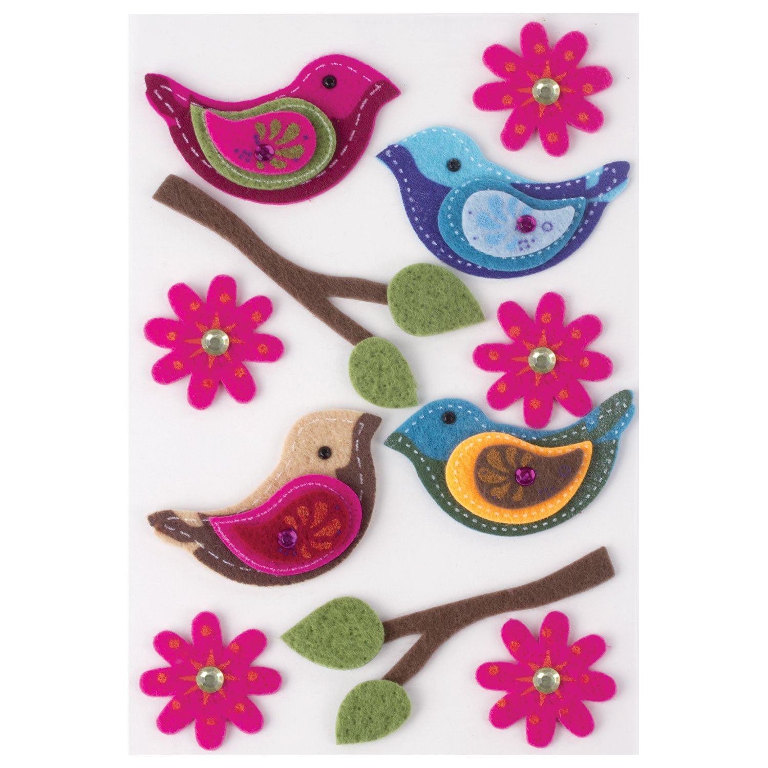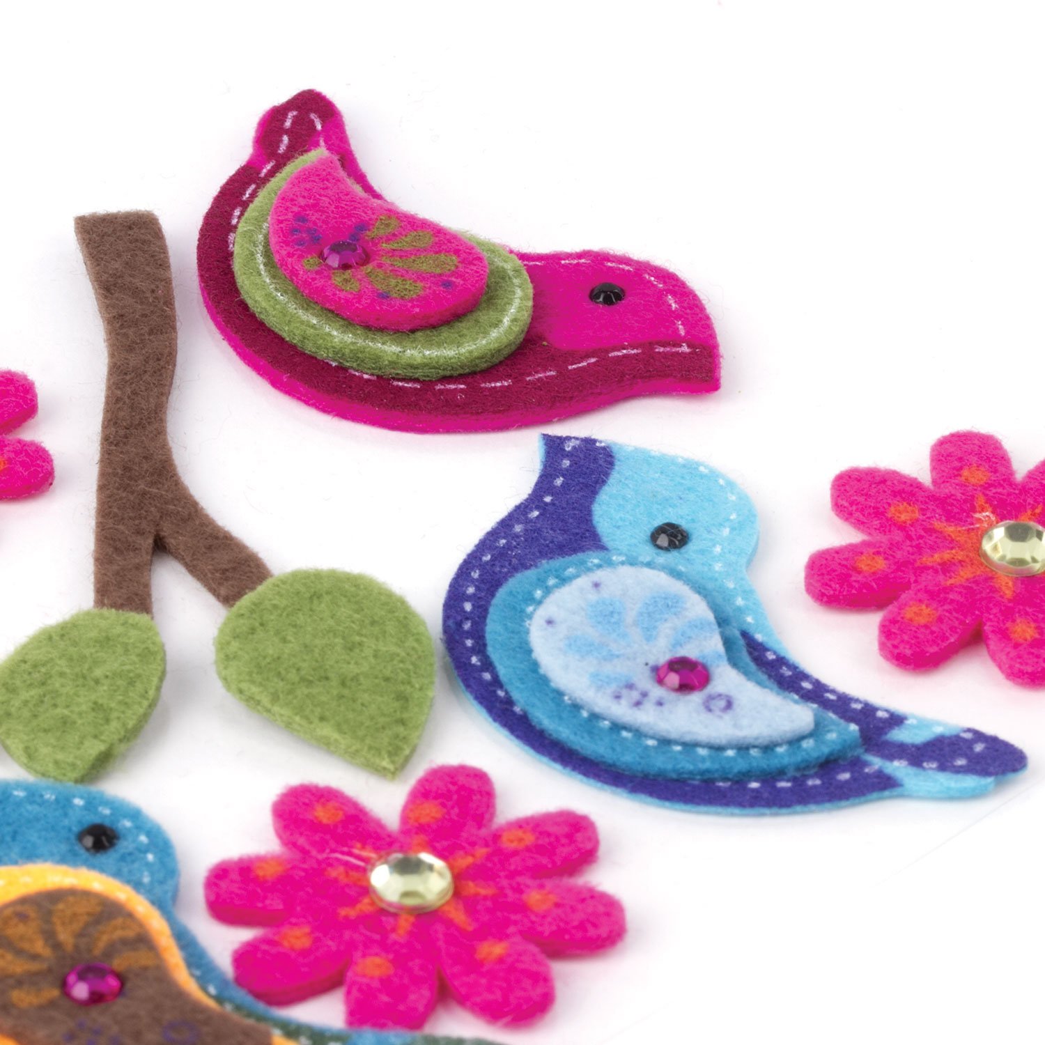 Наклейки из фетра "Птички", 11 шт., ассорти, ОСТРОВ СОКРОВИЩ, 661483