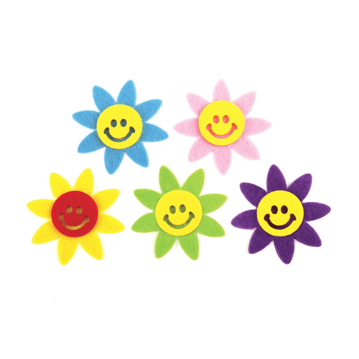 Изготовлены из фетра. В комплекте 5 красочных декоративных элементов в форме солнца. Предназначены для детей от 3 лет. Размер 5х5 см. Поставляются в пакете с европодвесом. Качественный клеевой слой обеспечит надежную фиксацию на любых поверхностях.