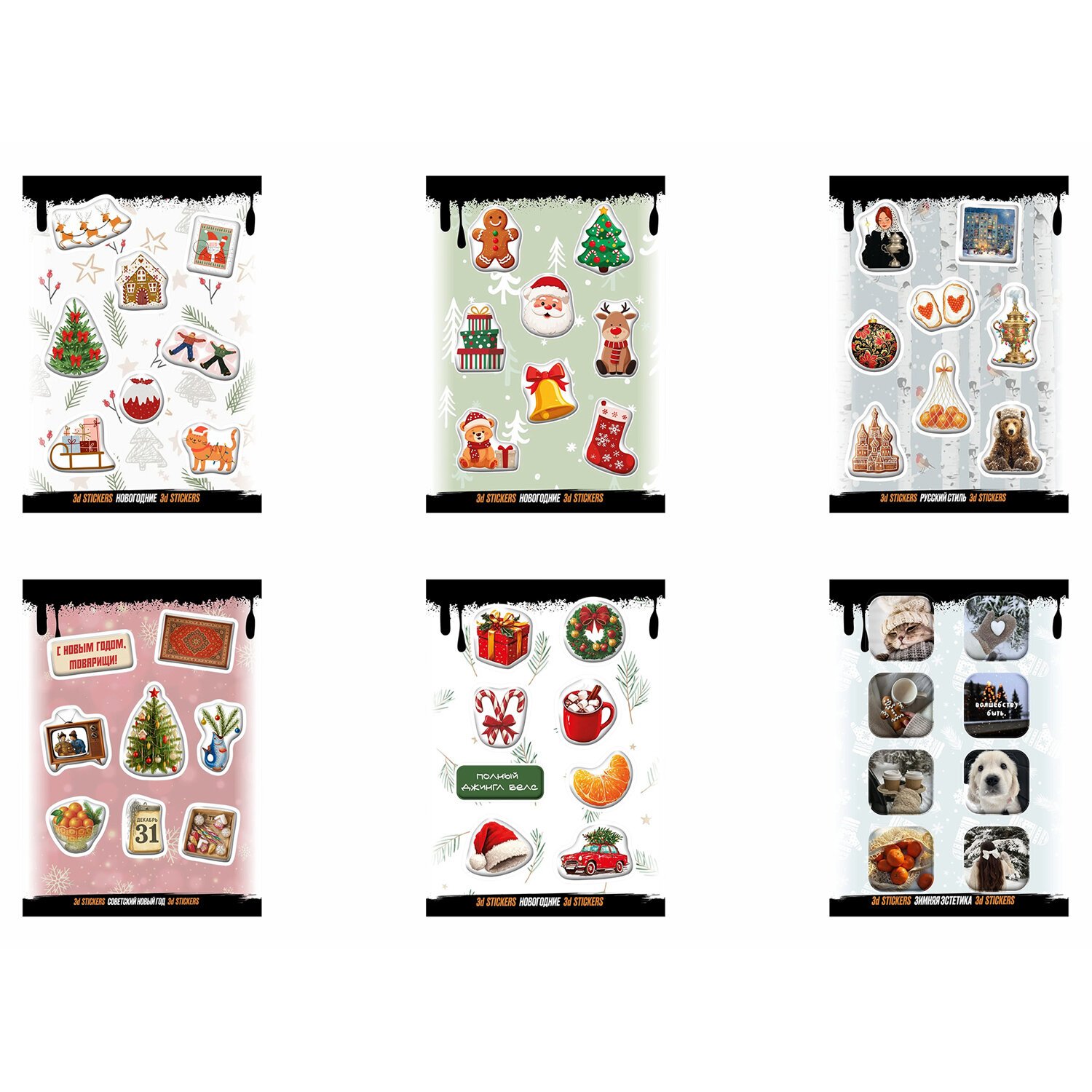 Наклейки объемные эпоксидные на телефон, 6 - 8 шт. на листе, МОДНЫЕ ДИЗАЙНЫ, АССОРТИ, NALEPKING