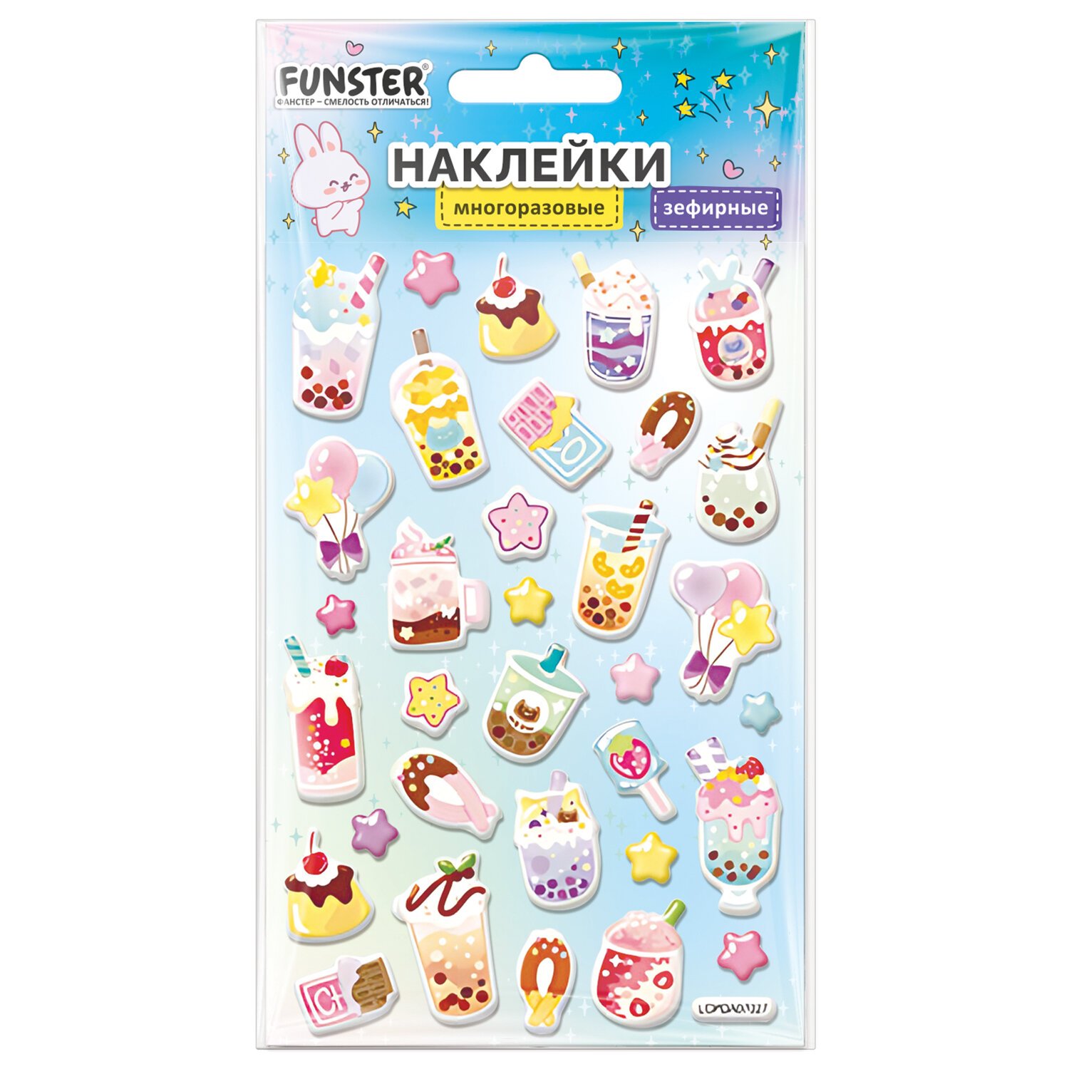 Наклейки объемные зефирные 15х10 см, ассорти 12 видов, FUNSTER (ФАНСТЕР), 666675