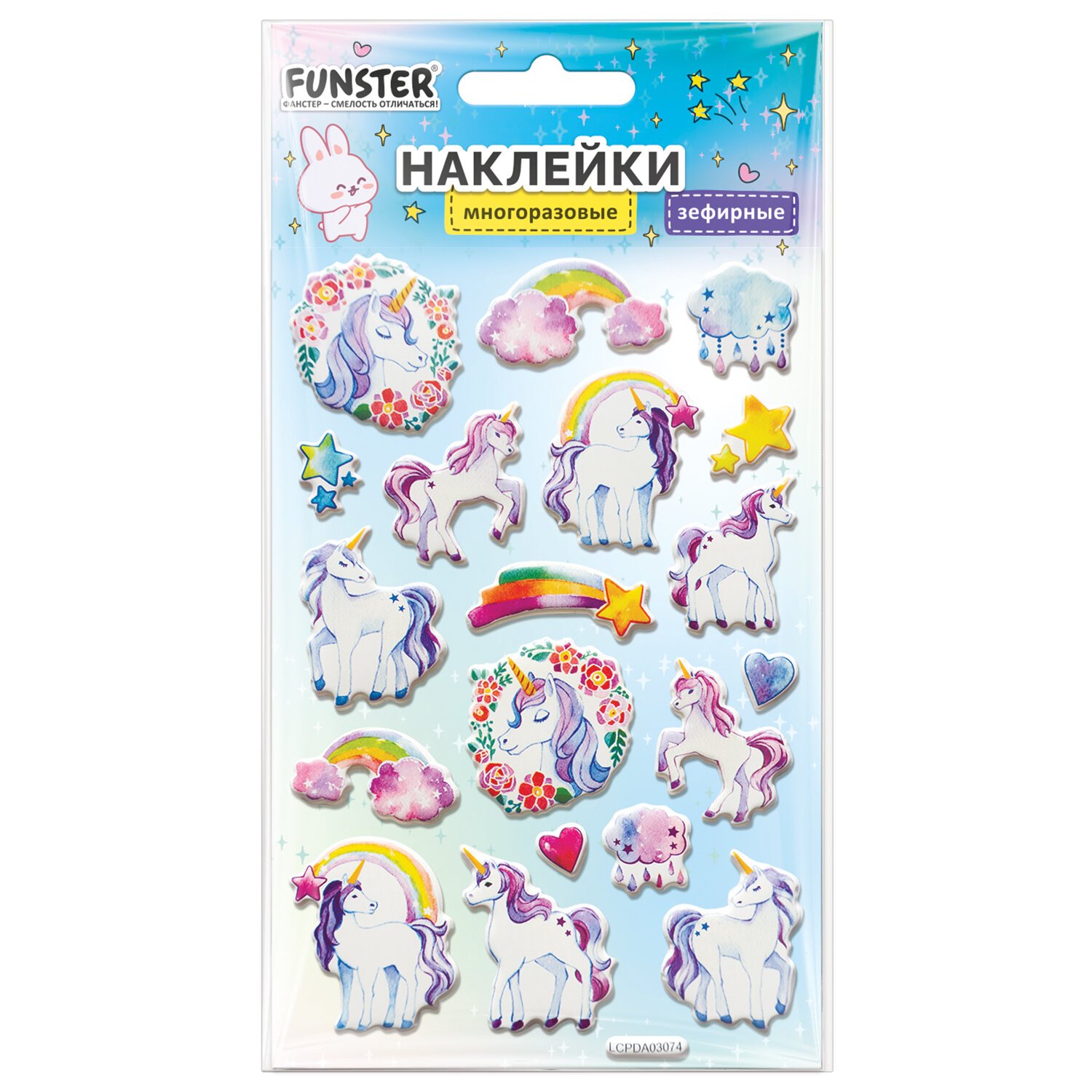 Наклейки зефирные "Единороги", многоразовые, 10х15 см, ЮНЛАНДИЯ, 661785