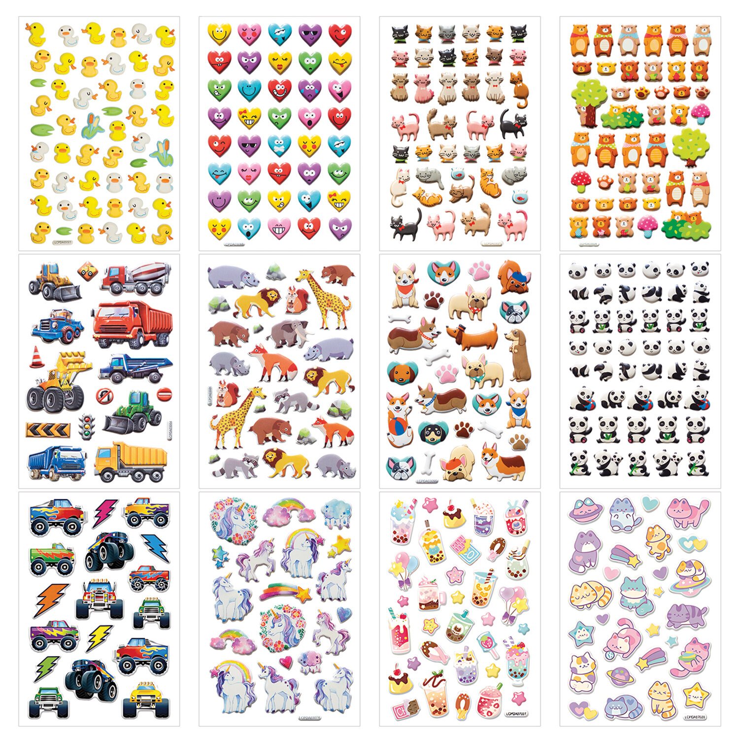 В наборе от 15 до 51 мягких зефирных наклеек с очаровательными дизайнами ассорти - животные, транспорт, еда, сердца, которые никого не оставят равнодушными.
