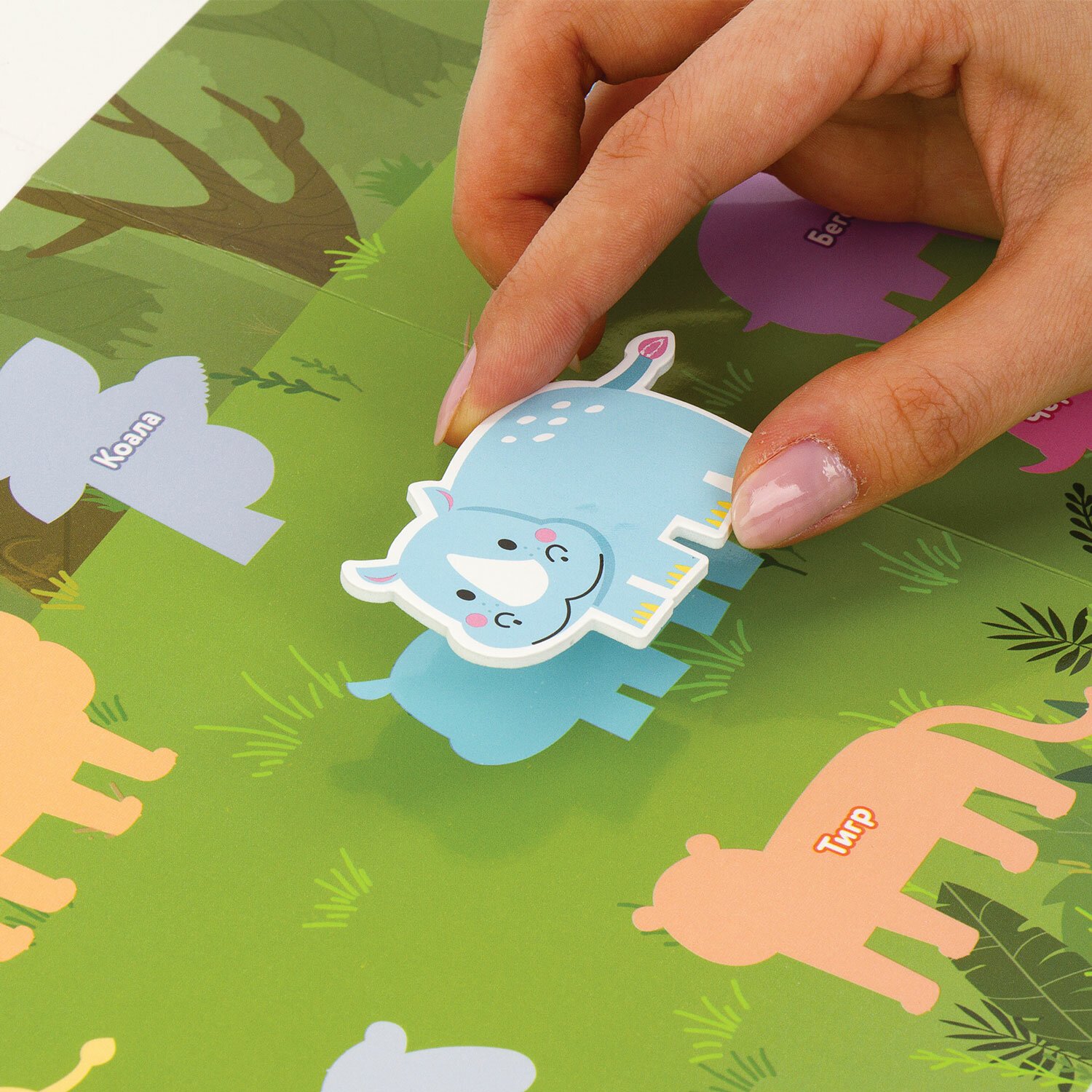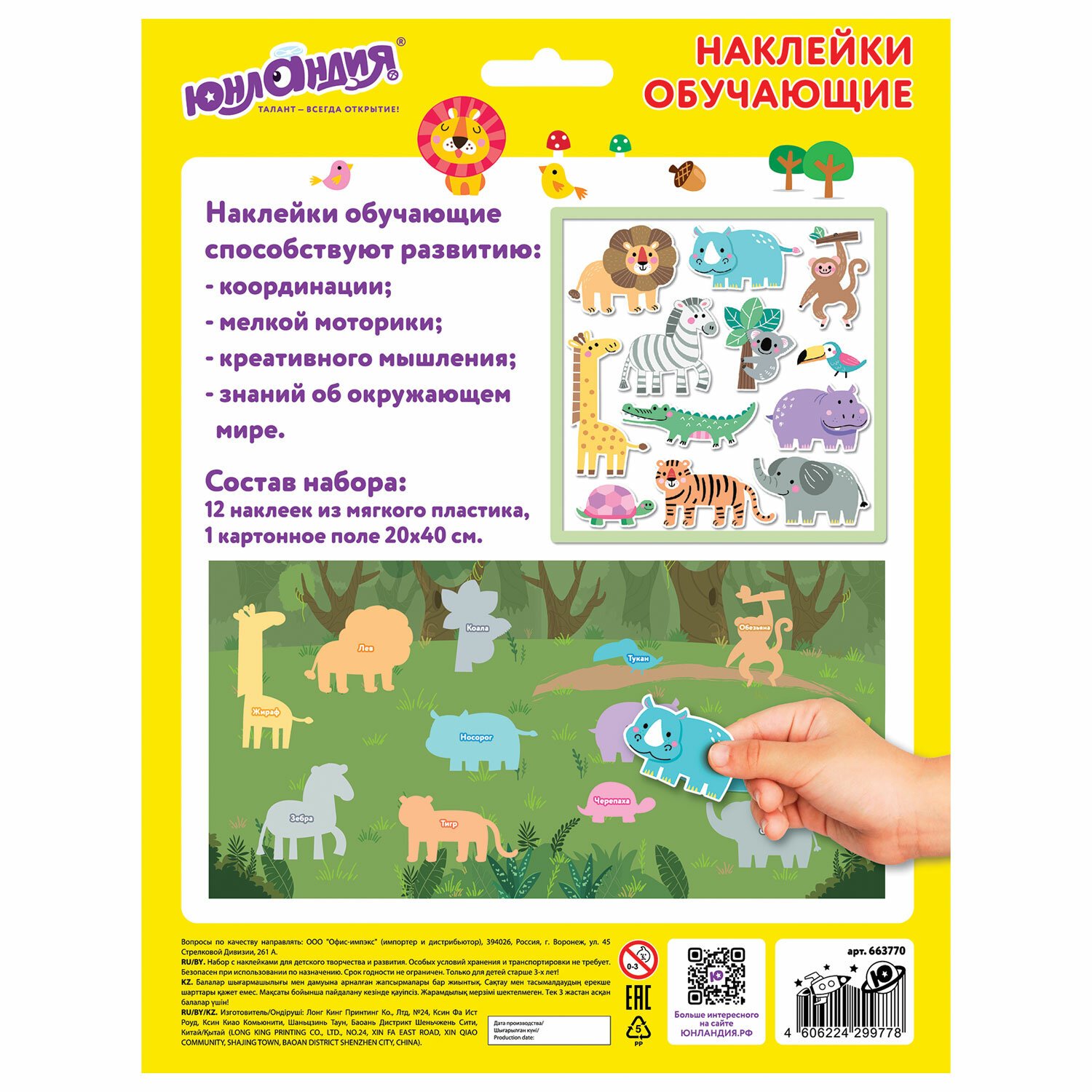 Наклейки обучающие тематические из EVA "Животные Африки", 20х40 см, многоразовые, ЮНЛАНДИЯ, 663770