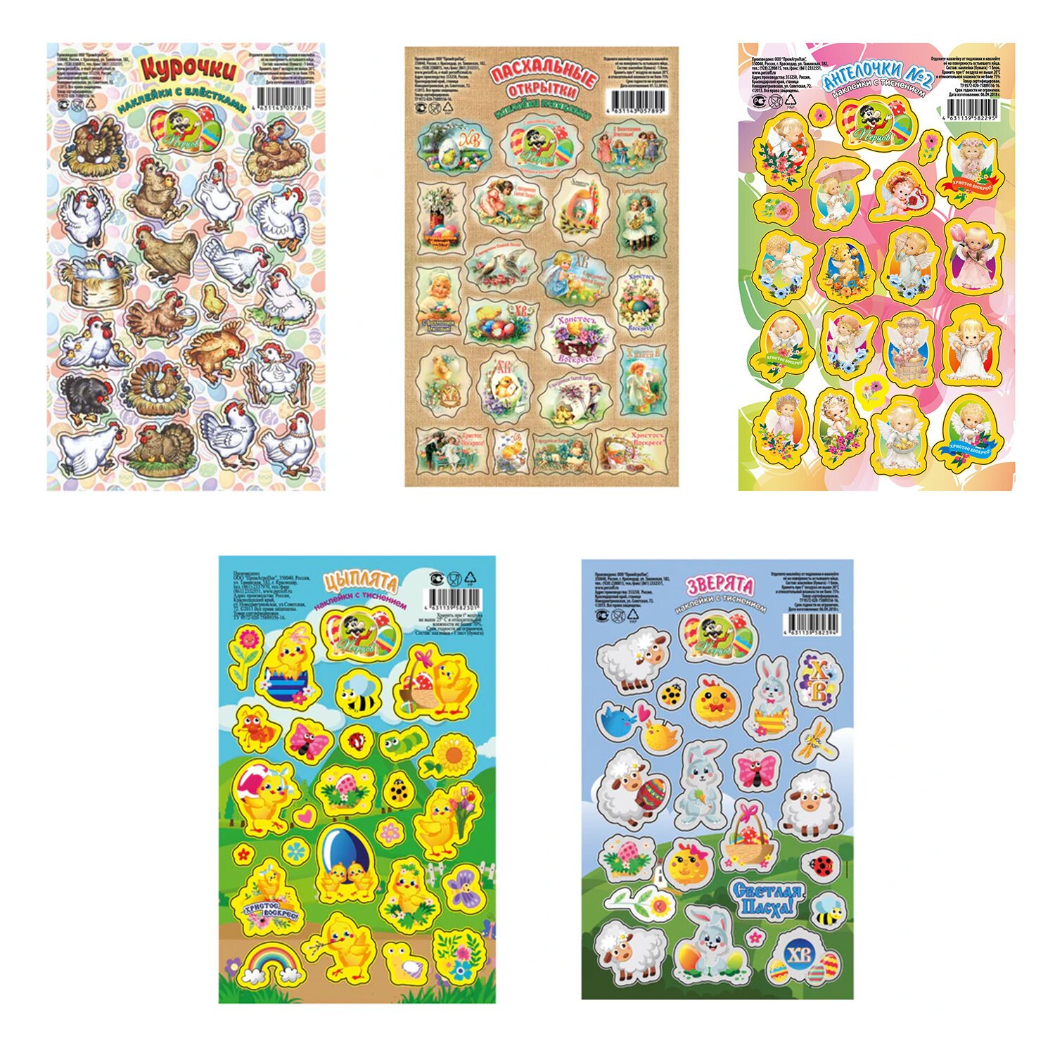 На листе форматом 17х10,5 см расположены наклейки в традиционных пасхальных дизайнах (поставляются в 5 дизайнах ассорти, без возможности выбора). Яркие краски и праздничные мотивы мгновенно создадут атмосферу весны и радости.