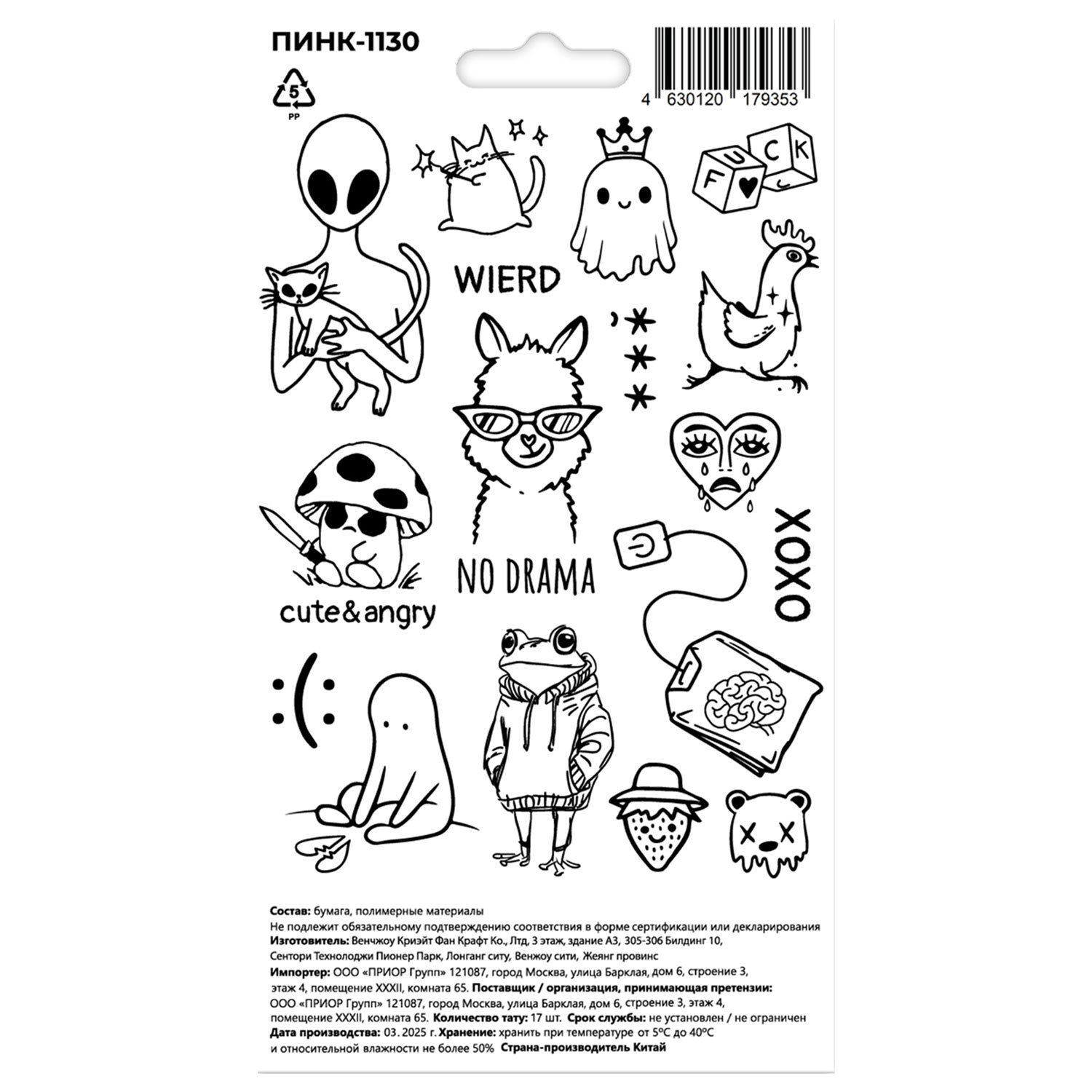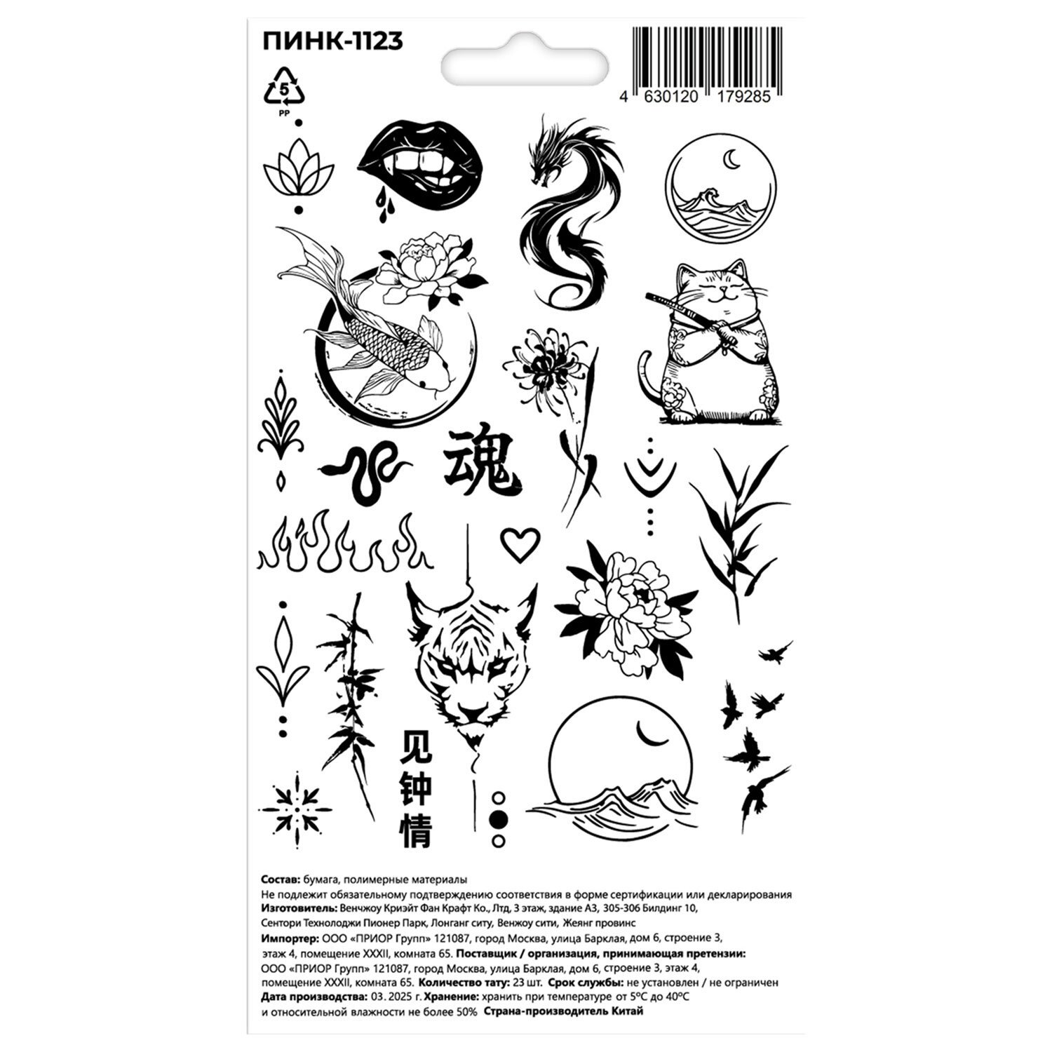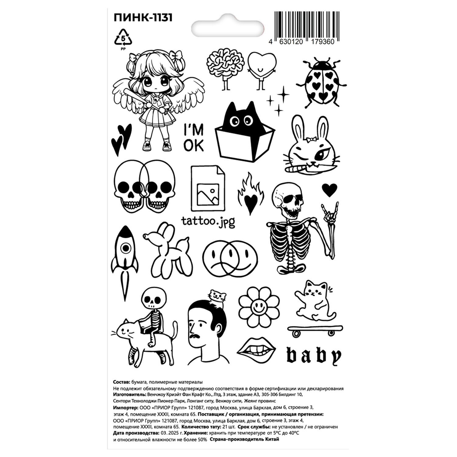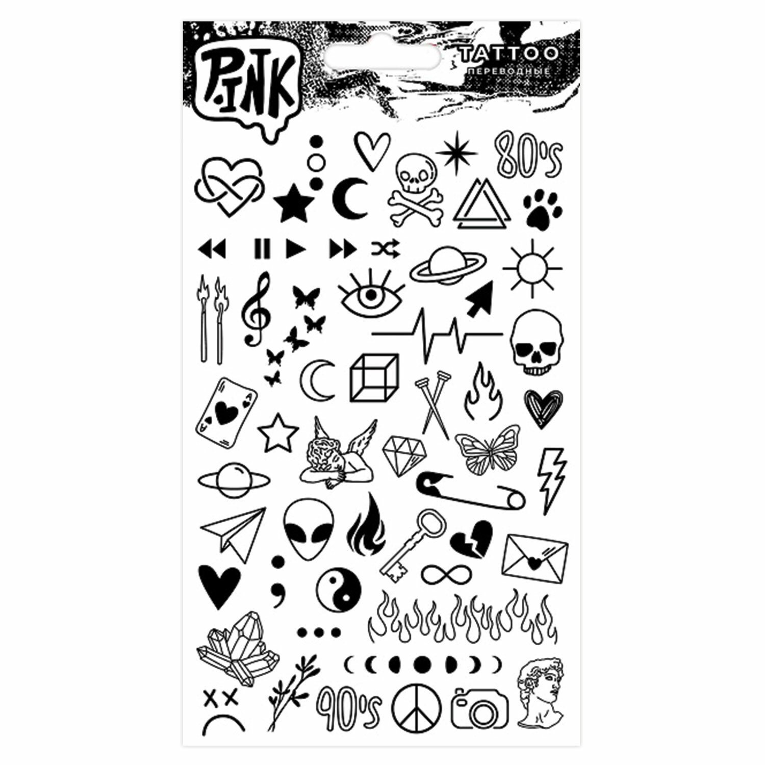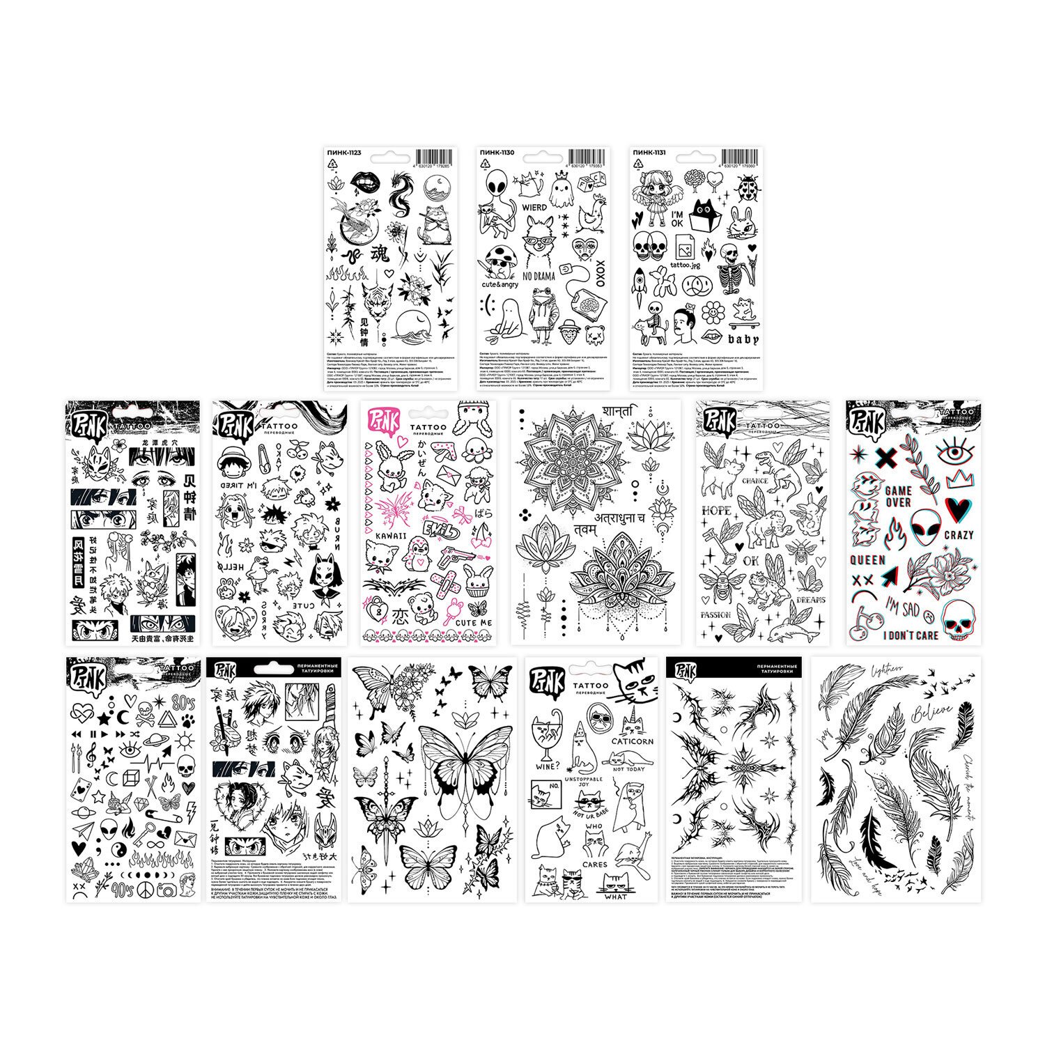 Наклейки-тату переводные АССОРТИ, Ч/Б, 11х20 см, PY