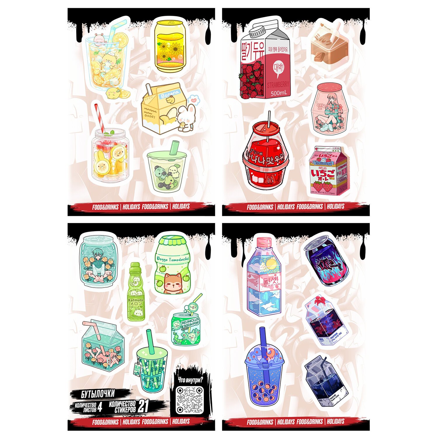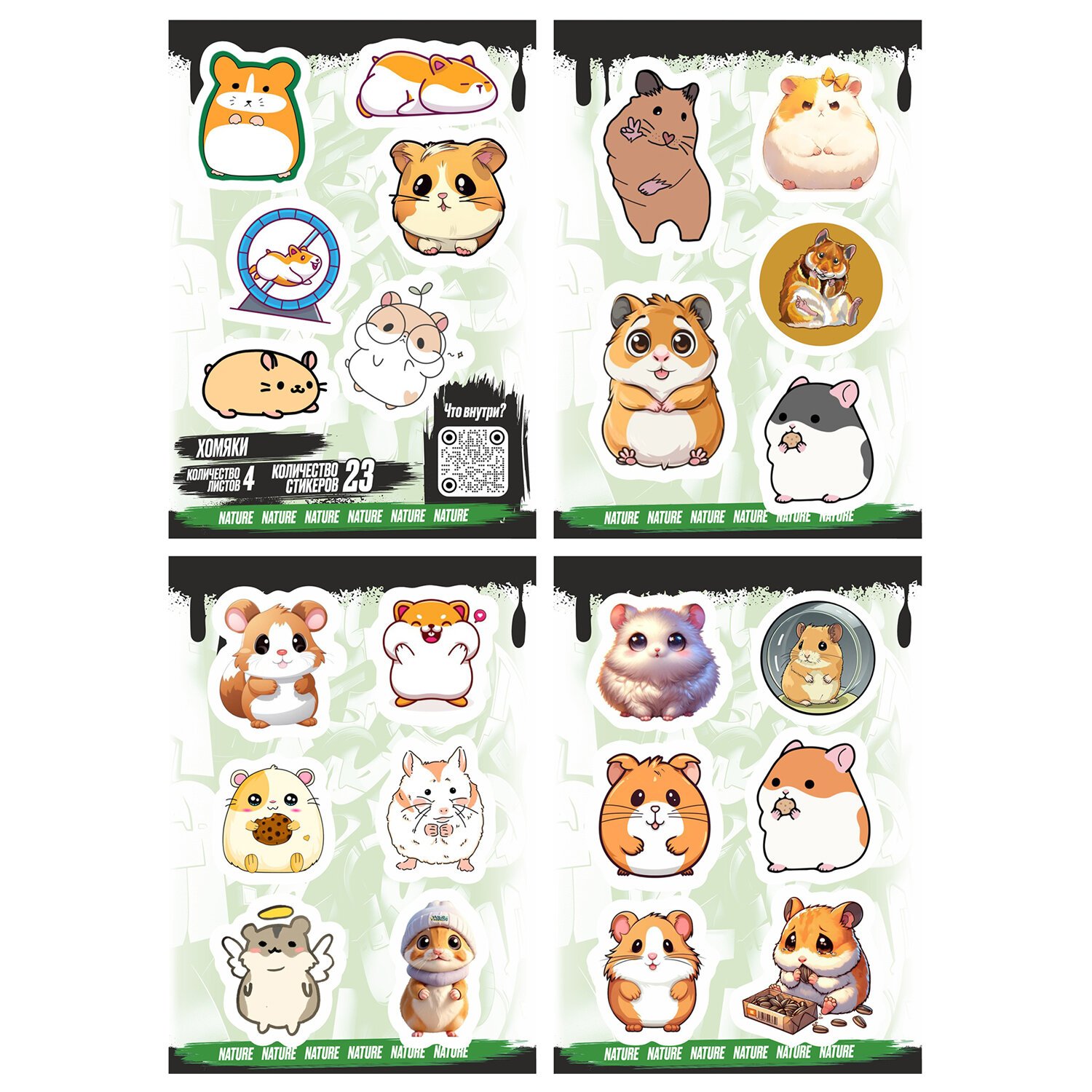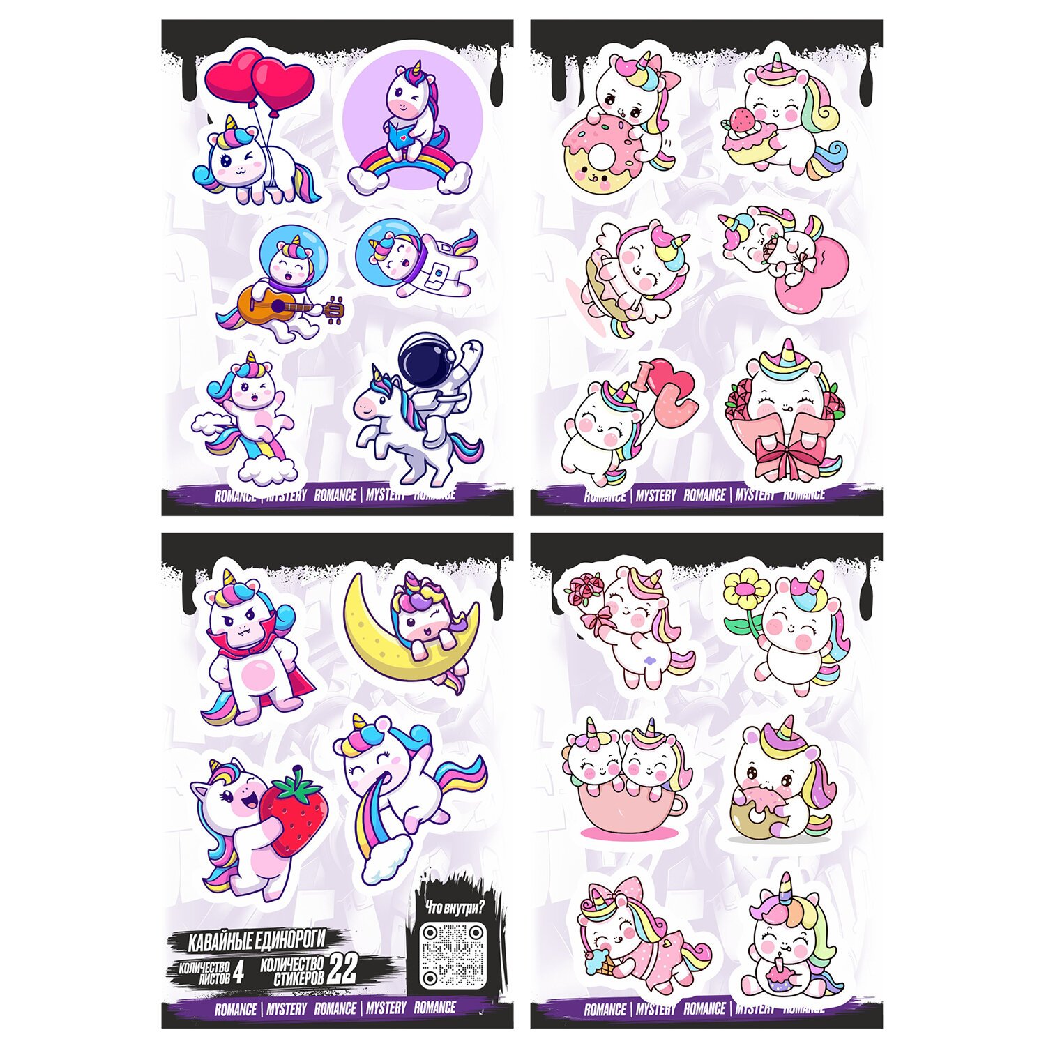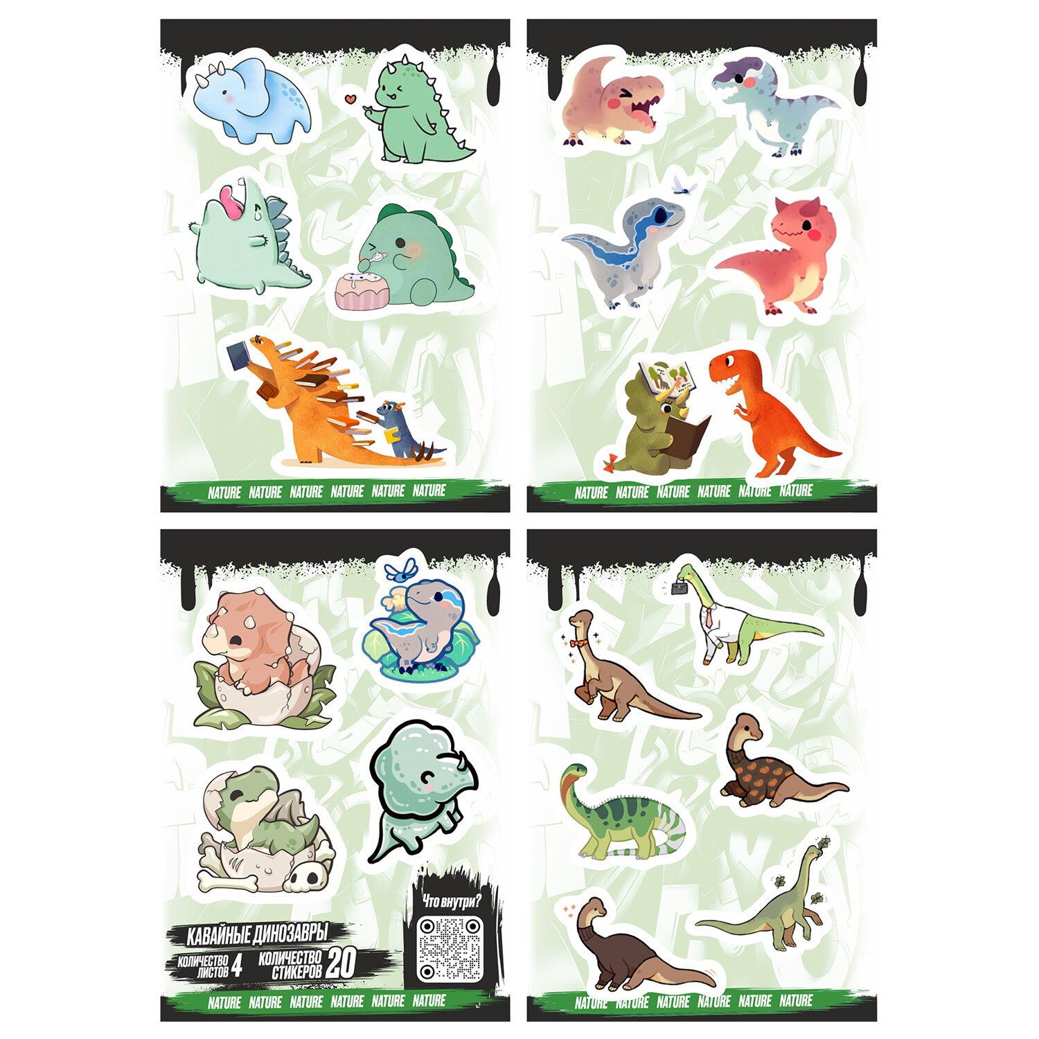 Наклейки виниловые, 20 - 22 шт., 4 листа, А6, КАВАЙНЫЕ ДИЗАЙНЫ, АССОРТИ, NALEPKING