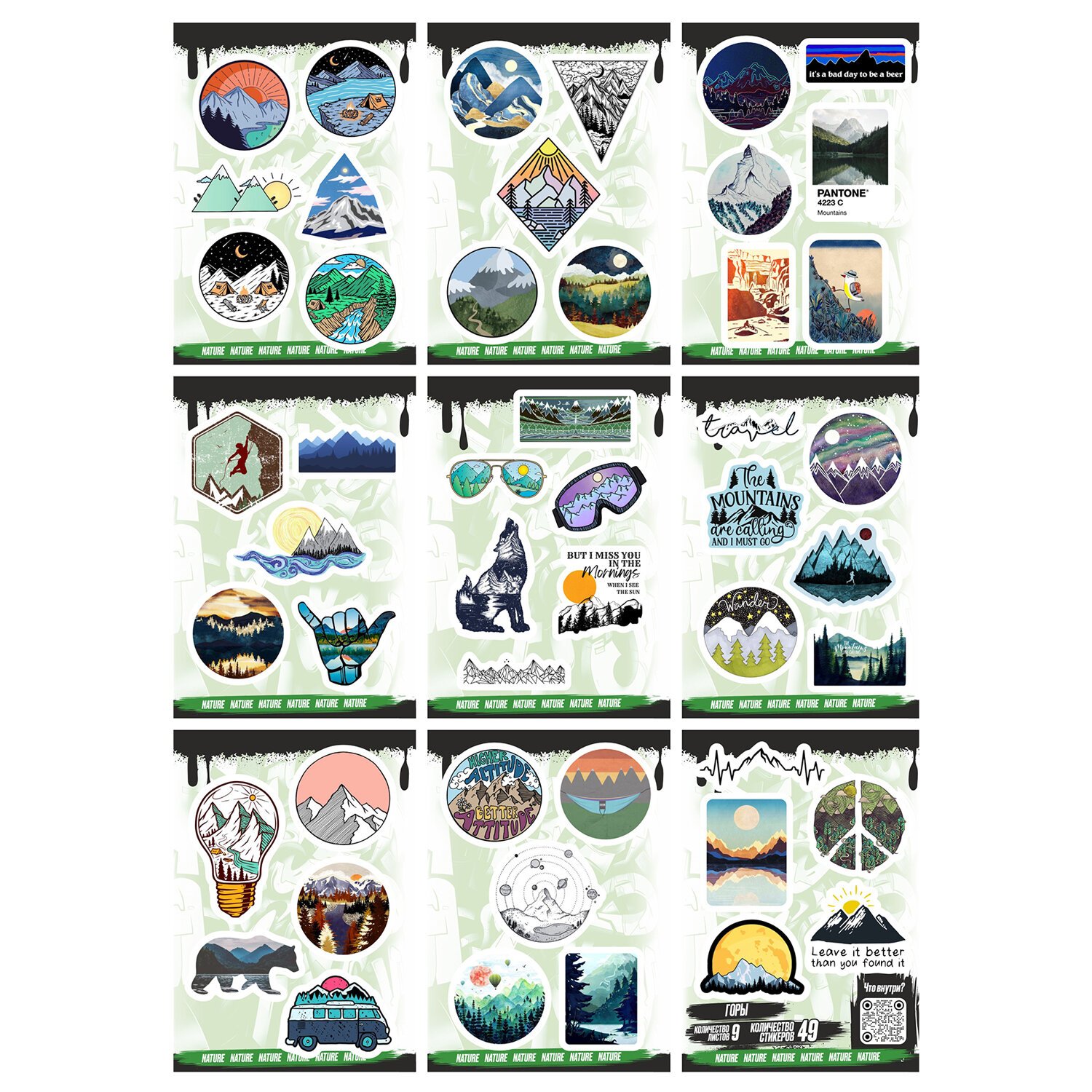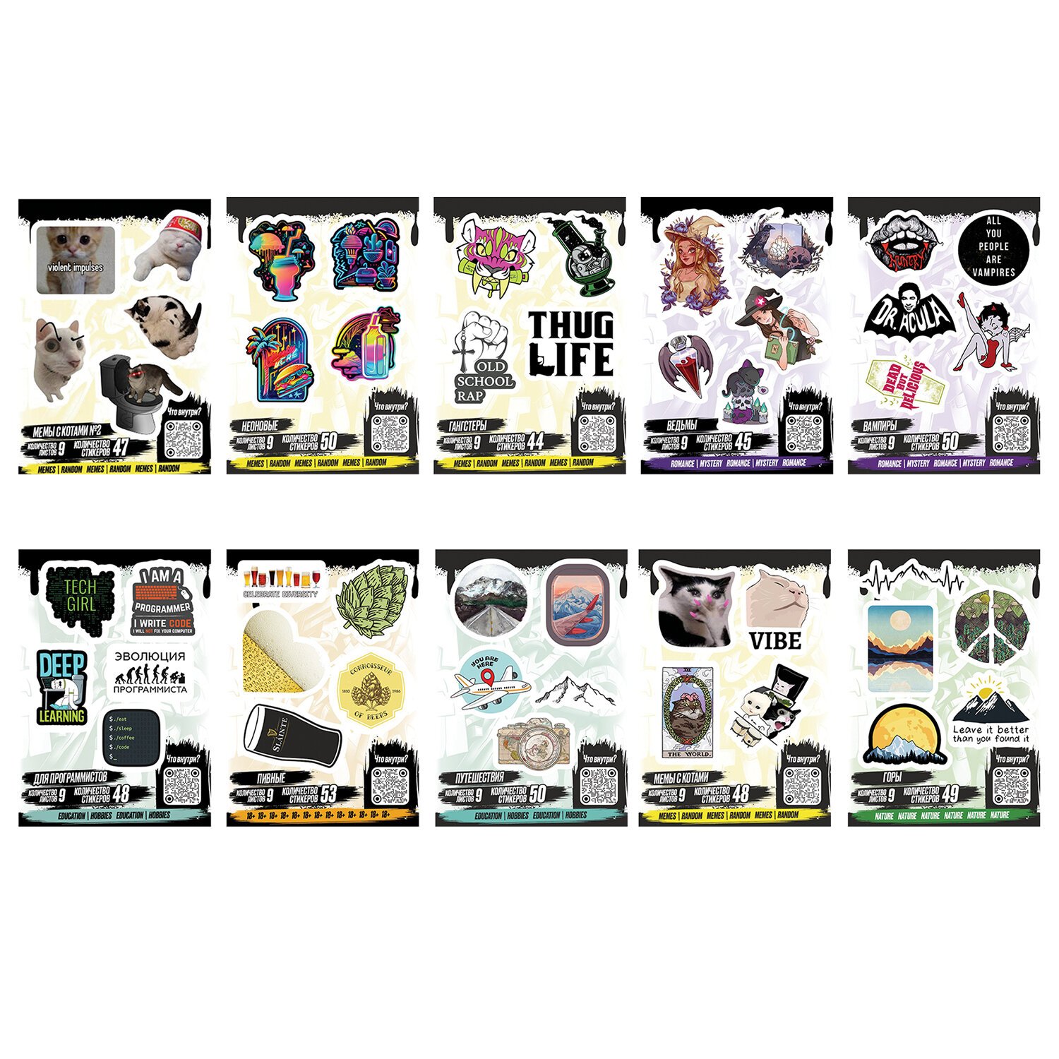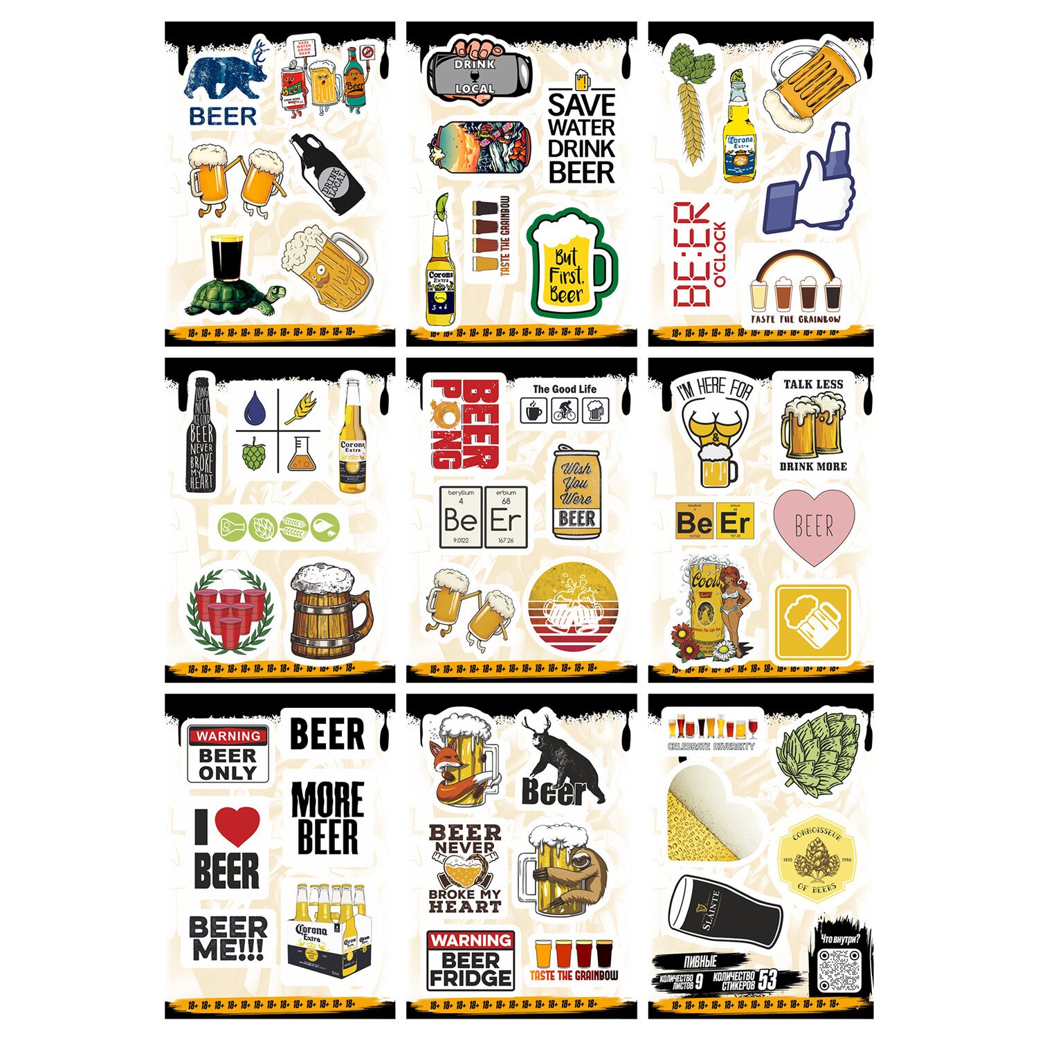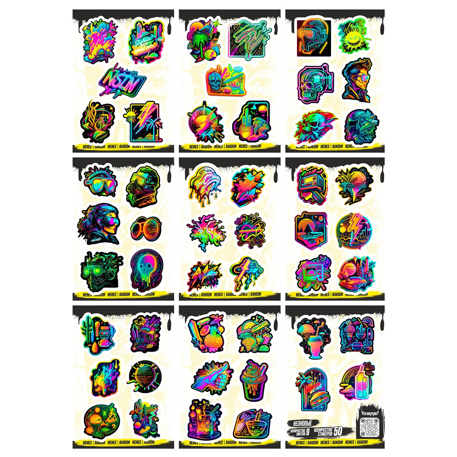 Наклейки виниловые, 49 - 53 шт., 9 листов, А6, ЗАБАВНЫЕ ДИЗАЙНЫ, АССОРТИ, NALEPKING