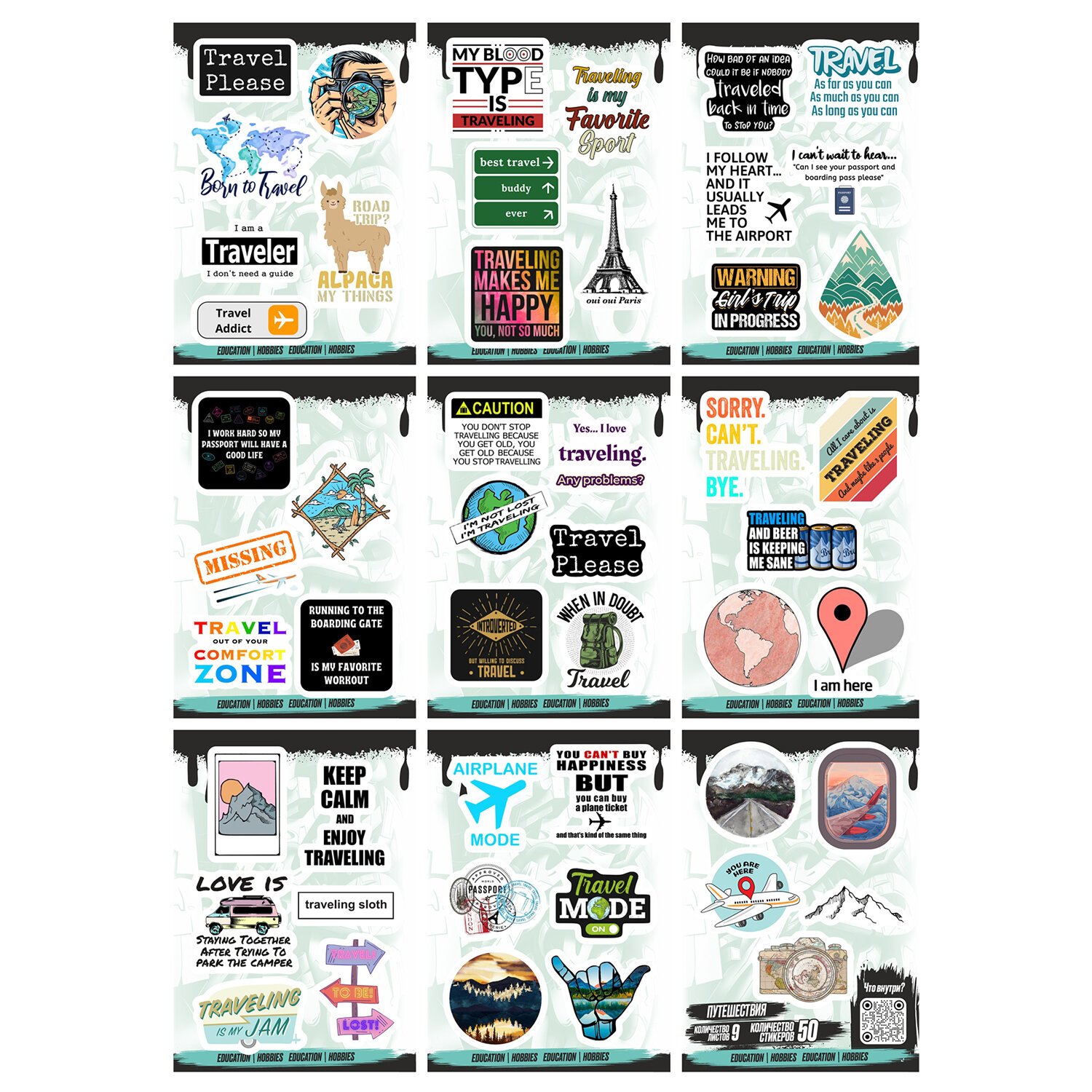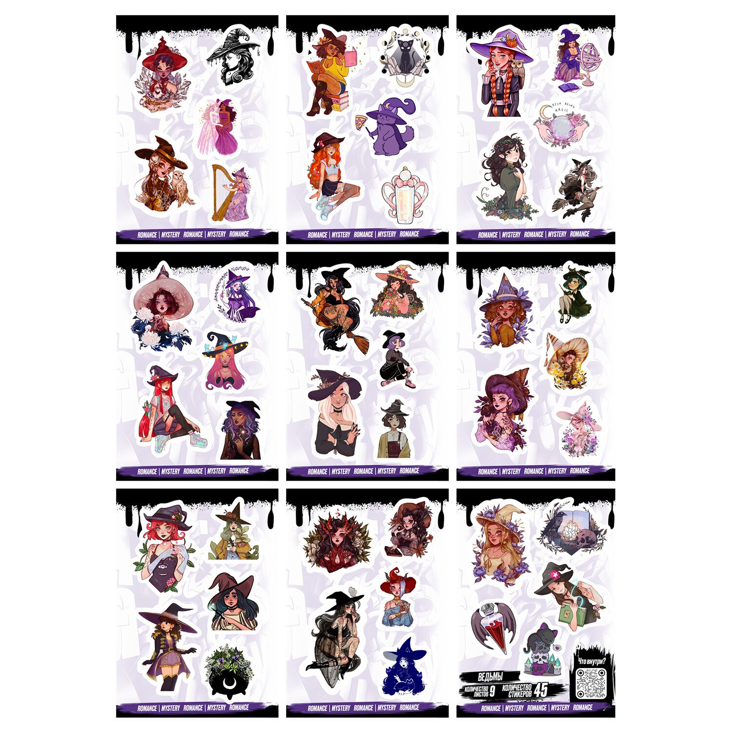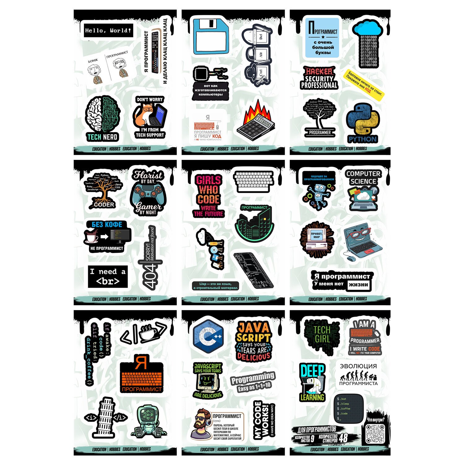Наклейки виниловые, 44 - 50 шт., 9 листов, А6, МОДЕРН, АССОРТИ, NALEPKING