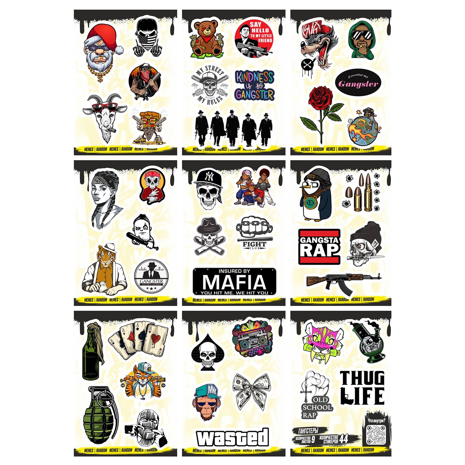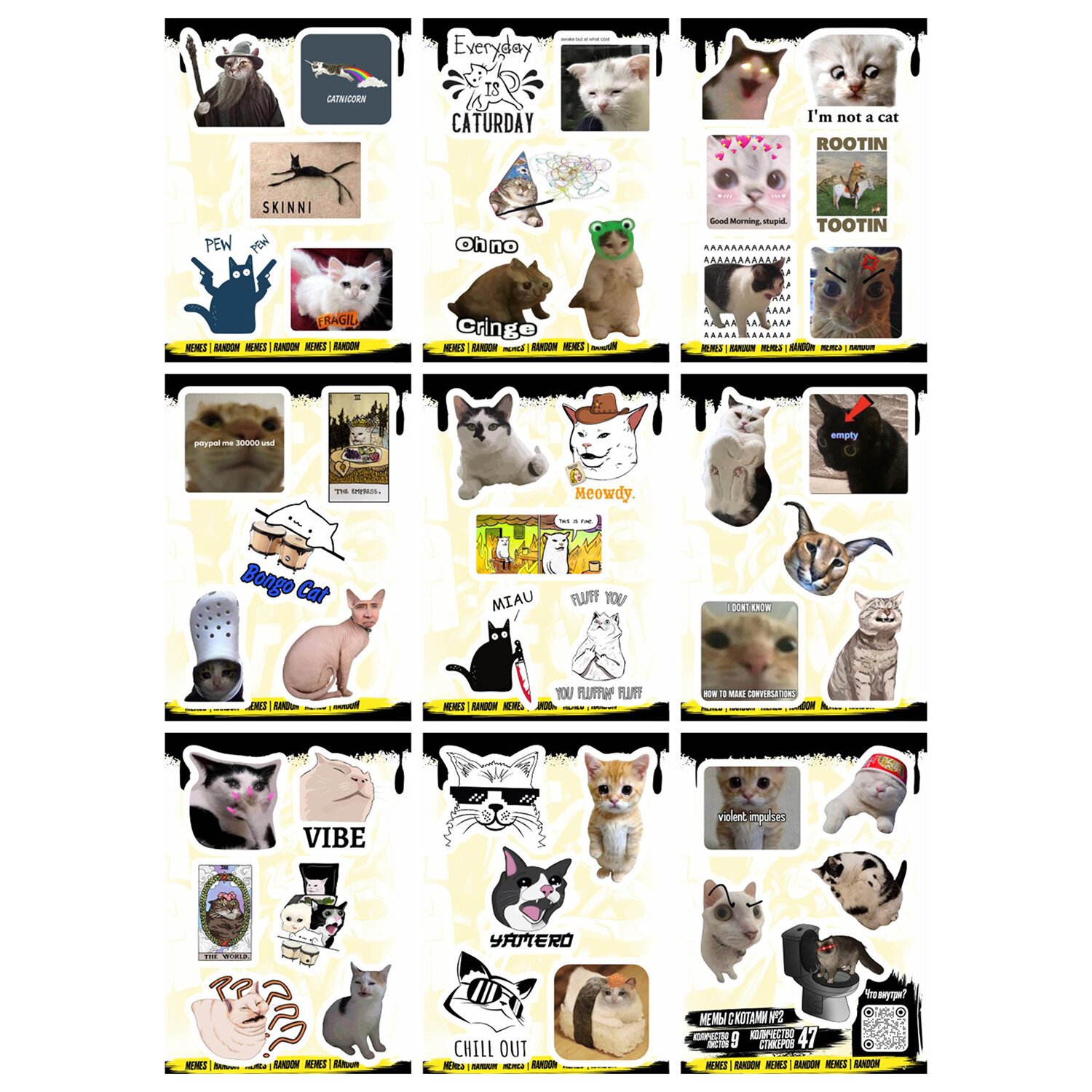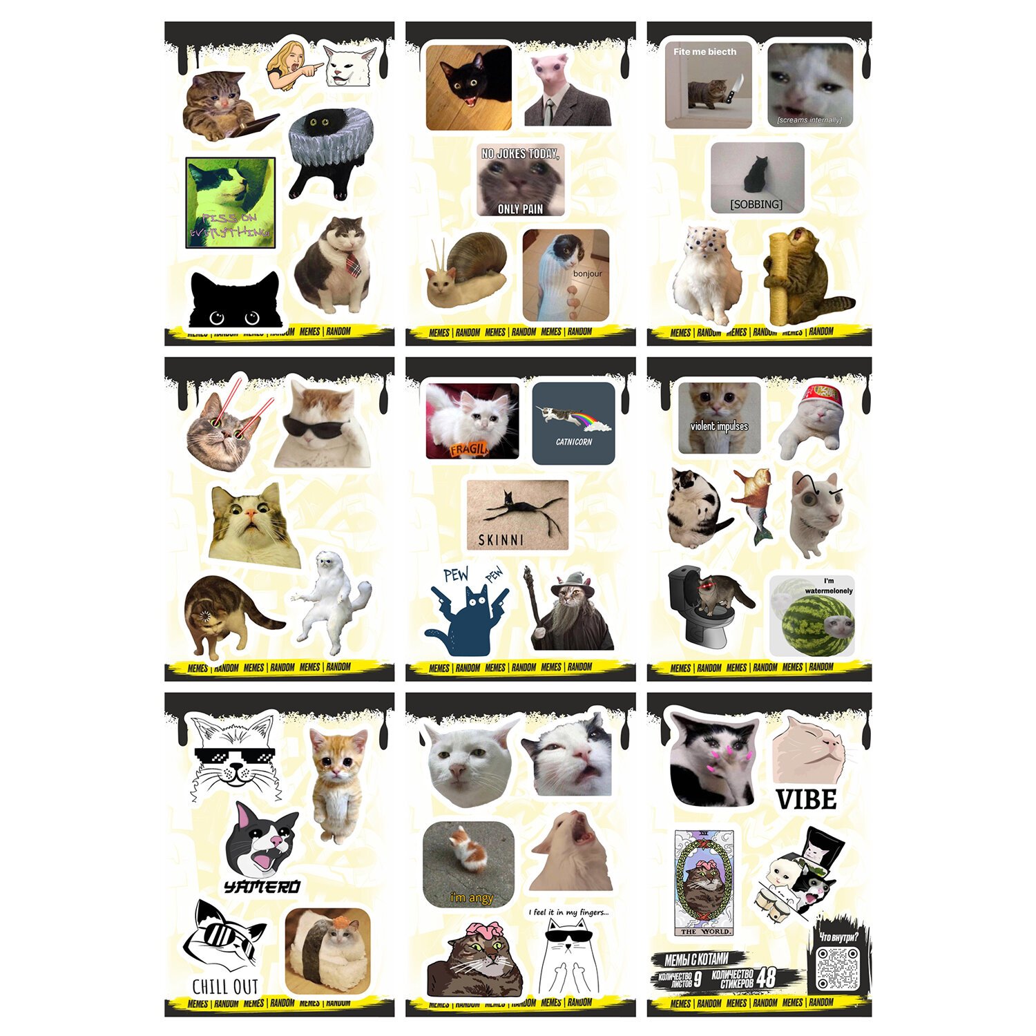 Наклейки виниловые, 21 - 26 шт., 4 листа, А6, МЕМЫ, АССОРТИ, NALEPKING