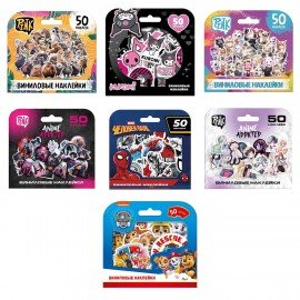 Наклейки виниловые НАБОР 50 штук, ассорти 7 дизайнов, PY, 64854