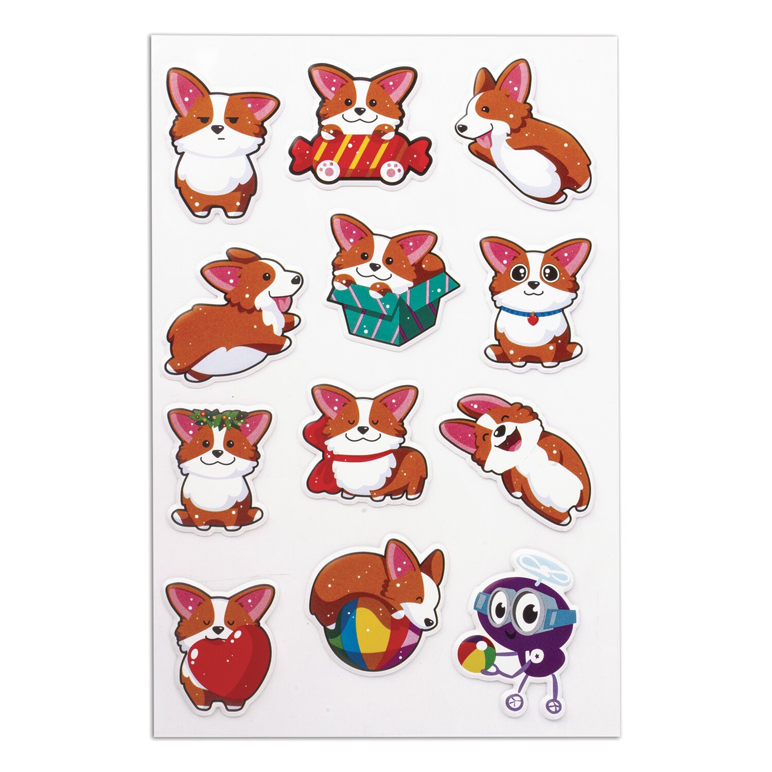 Наклейки зефирные "Корги", многоразовые, 10х15 см, ЮНЛАНДИЯ, 661791