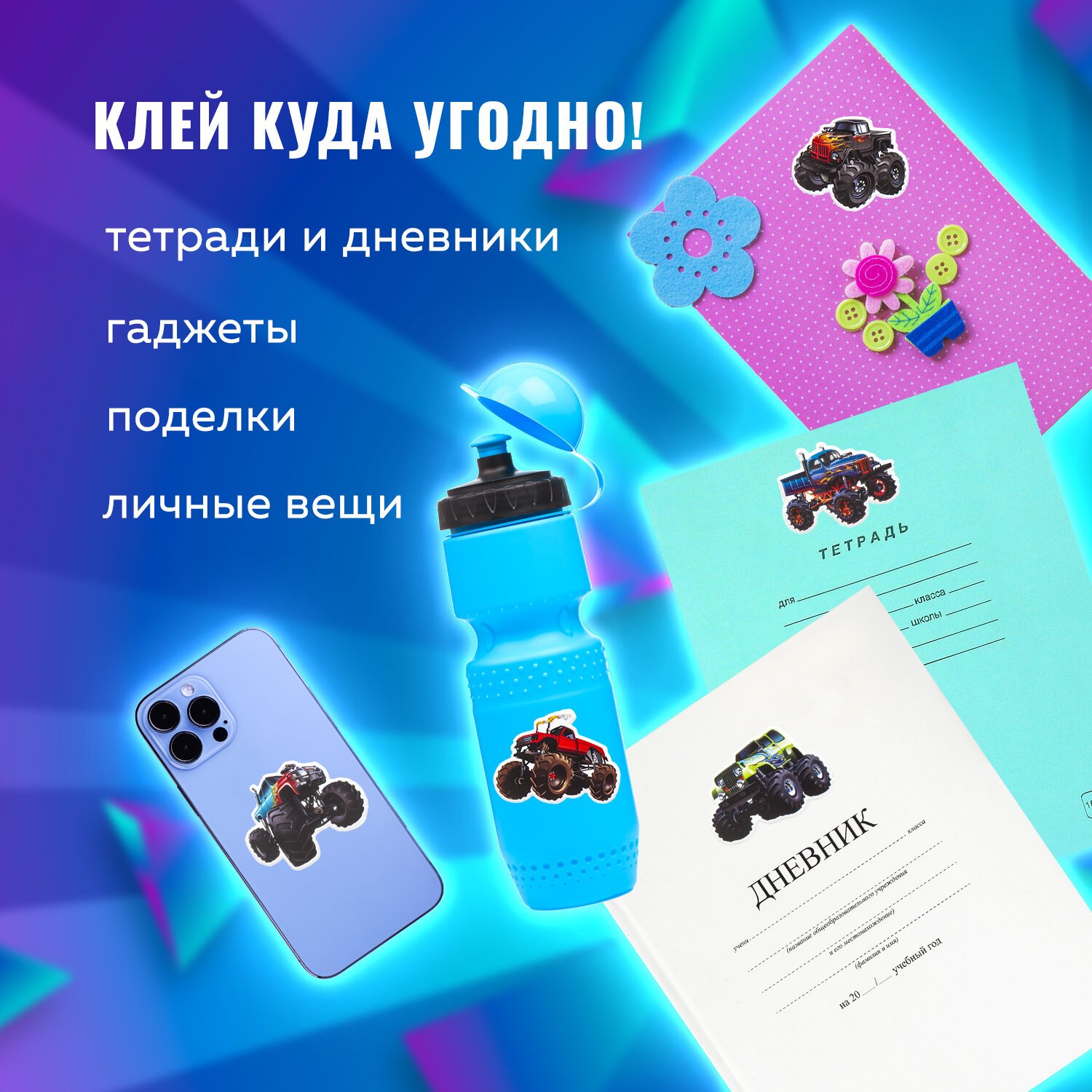 В наборе содержатся мягкие зефирные наклейки с изображением автомобилей в количестве 8 штук. Наклейки отличаются высочайшим качеством печати и цветопередачи. Большие серьёзные вездеходы не оставят равнодушными юных автолюбителей, придадут оригинальности тетрадям, дневникам, гаджетам и здорово украсят поделки.
