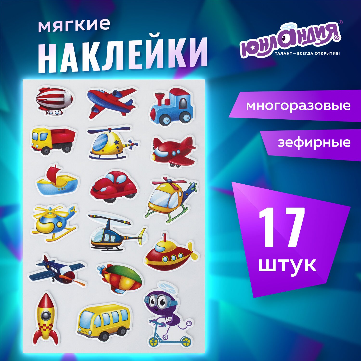 Наклейки зефирные "Транспорт", многоразовые, 10х15 см, ЮНЛАНДИЯ, 661783