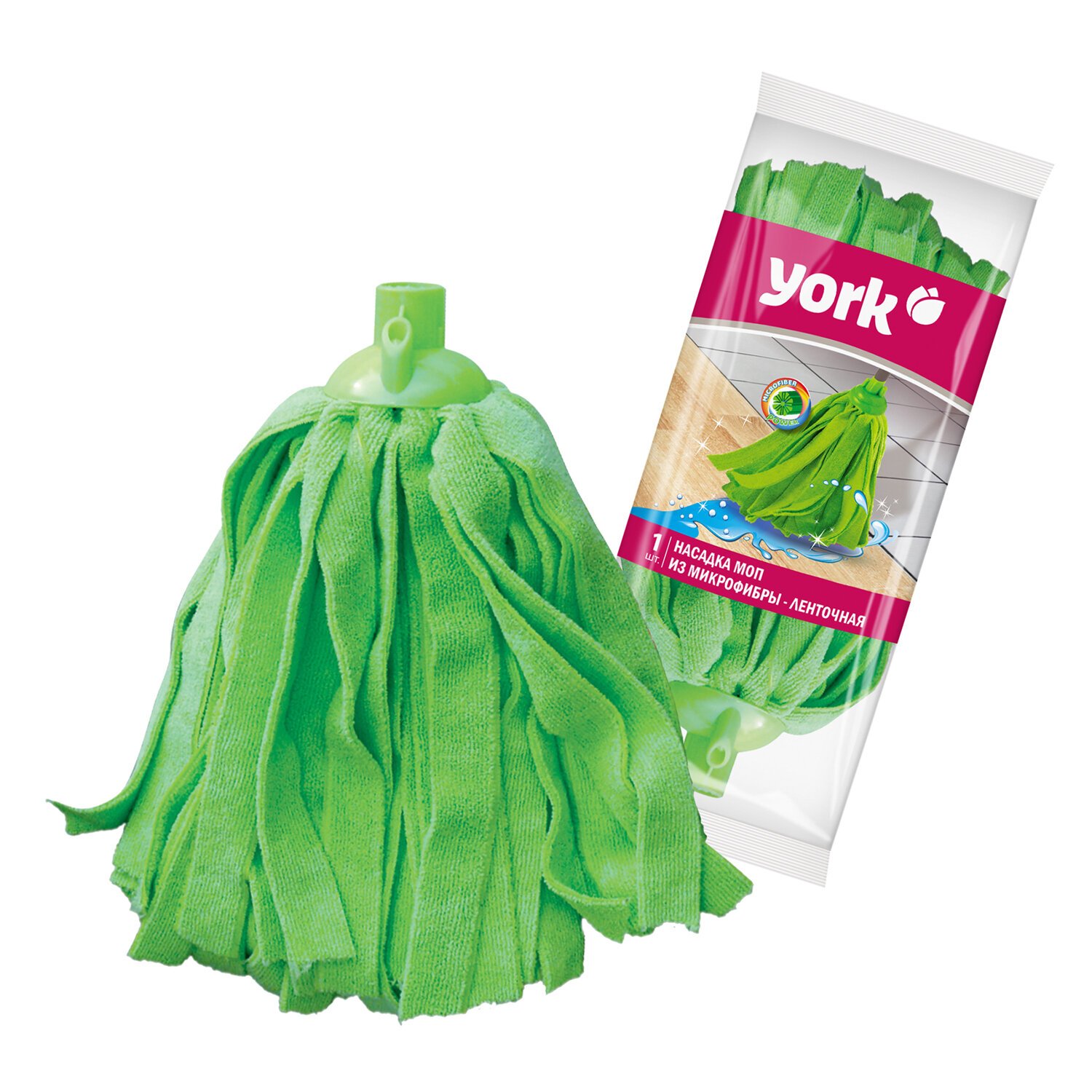 Насадка ленточная YORK для мытья полов из микрофибры подходит к любым рукояткам со стандартной еврорезьбой. Имеет длинные ленты, изготовлена из плотной качественной фибры, подходит для мытья любых напольных покрытий.