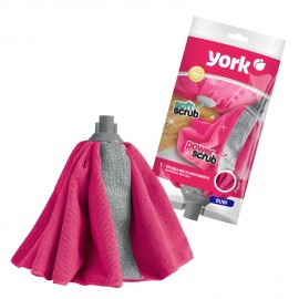 Насадка для мытья полов YORK по типу юбки RUBI подходит к любым рукояткам со стандартной еврорезьбой. Имеет абразивную вставку для удаления загрязнений, резиновую щёточку и прорезиненный анти-вандальный ободок.