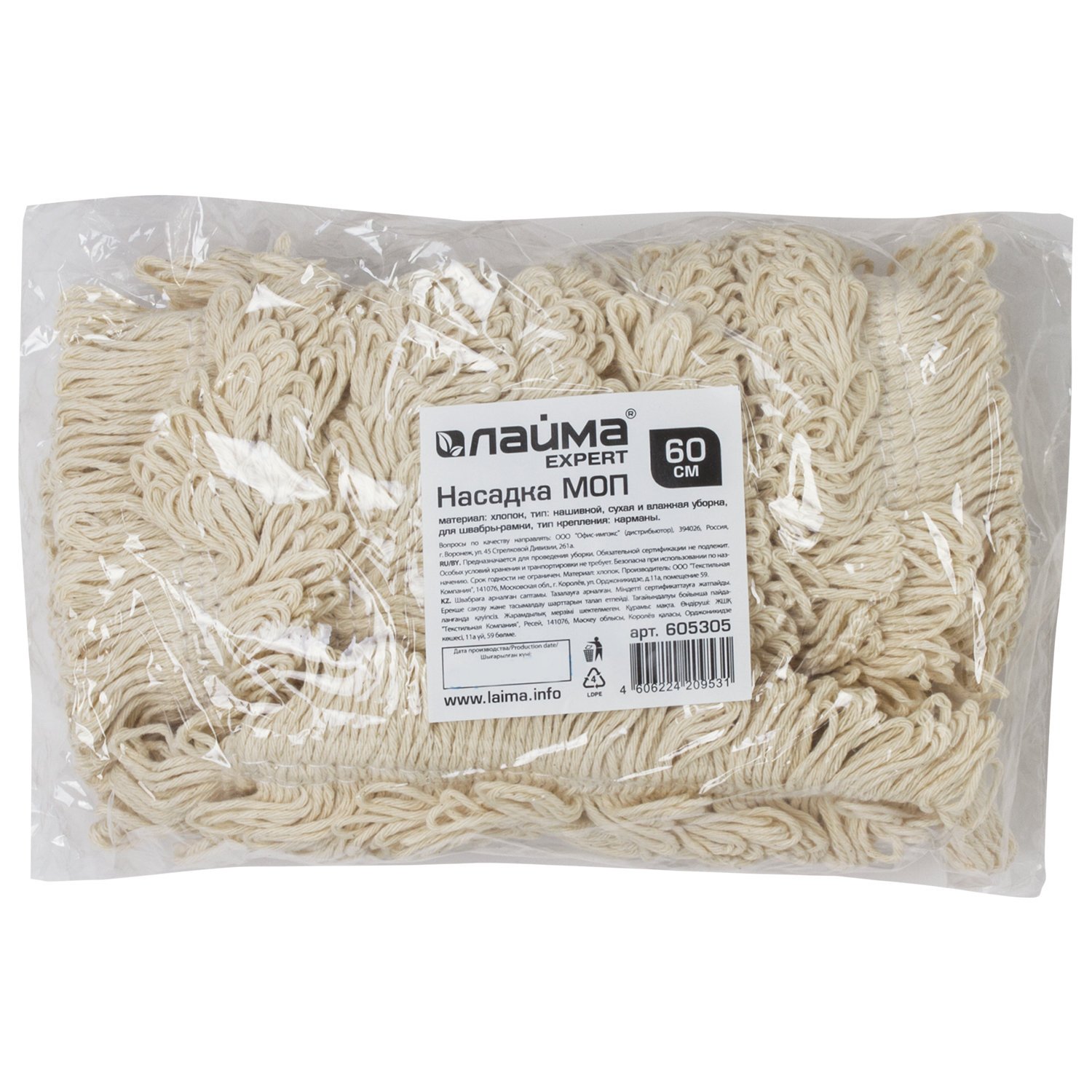 Насадка МОП плоская 60 см для швабры-рамки, карманы, нашивной хлопок, LAIMA EXPERT, 605305