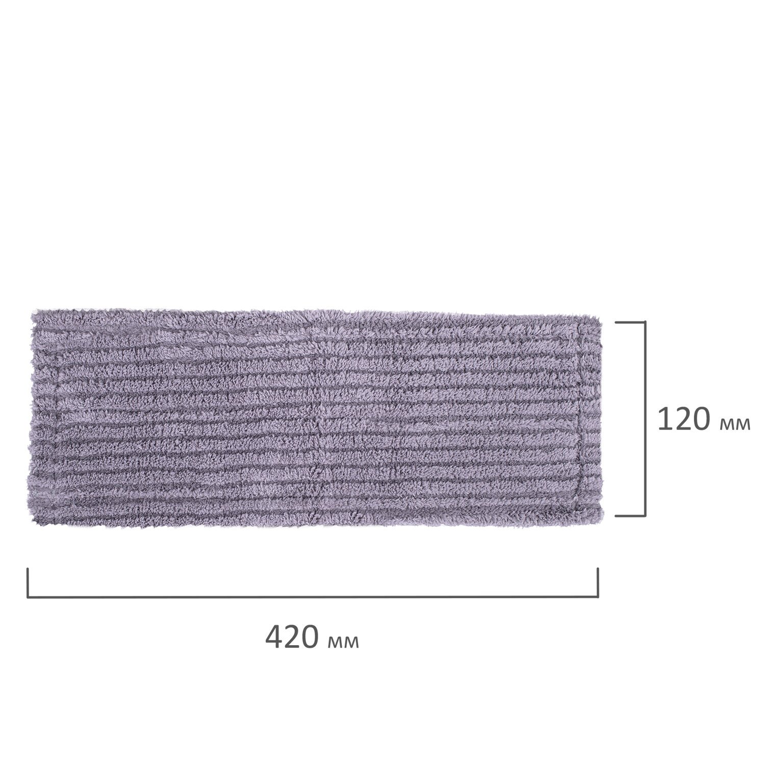 Моп имеет форму плоского прямоугольника. Такая форма и чистящая поверхность из ворса длиной 0,8 см позволяют удобно собрать грязь по углам и охватить большую площадь убираемой поверхности. Это сокращает временные затраты на уборку больших площадей. Насадка устойчива к износу, что обеспечивает долгий срок службы. Выполнена из микрофибры, имеет размер 42х12 см. Максимальный объем впитывания - 200 мл. Используется в комплекте со шваброй, крепится к держателю с помощью карманов.