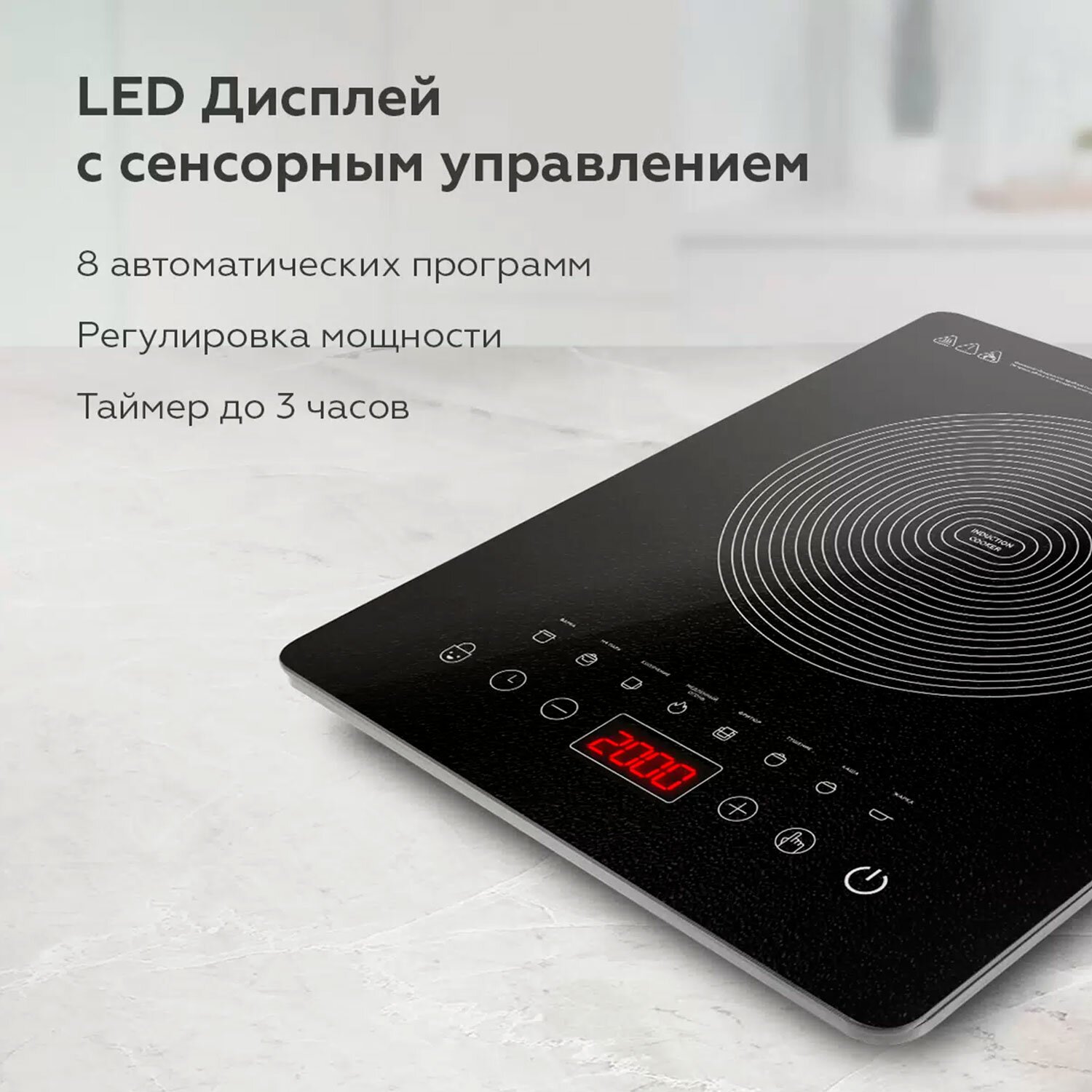 Настольная индукционная плита BQ (БИ-КЬЮ) HP106B, 2000 Вт, 8 программ, электронное управление, черная, 86202117